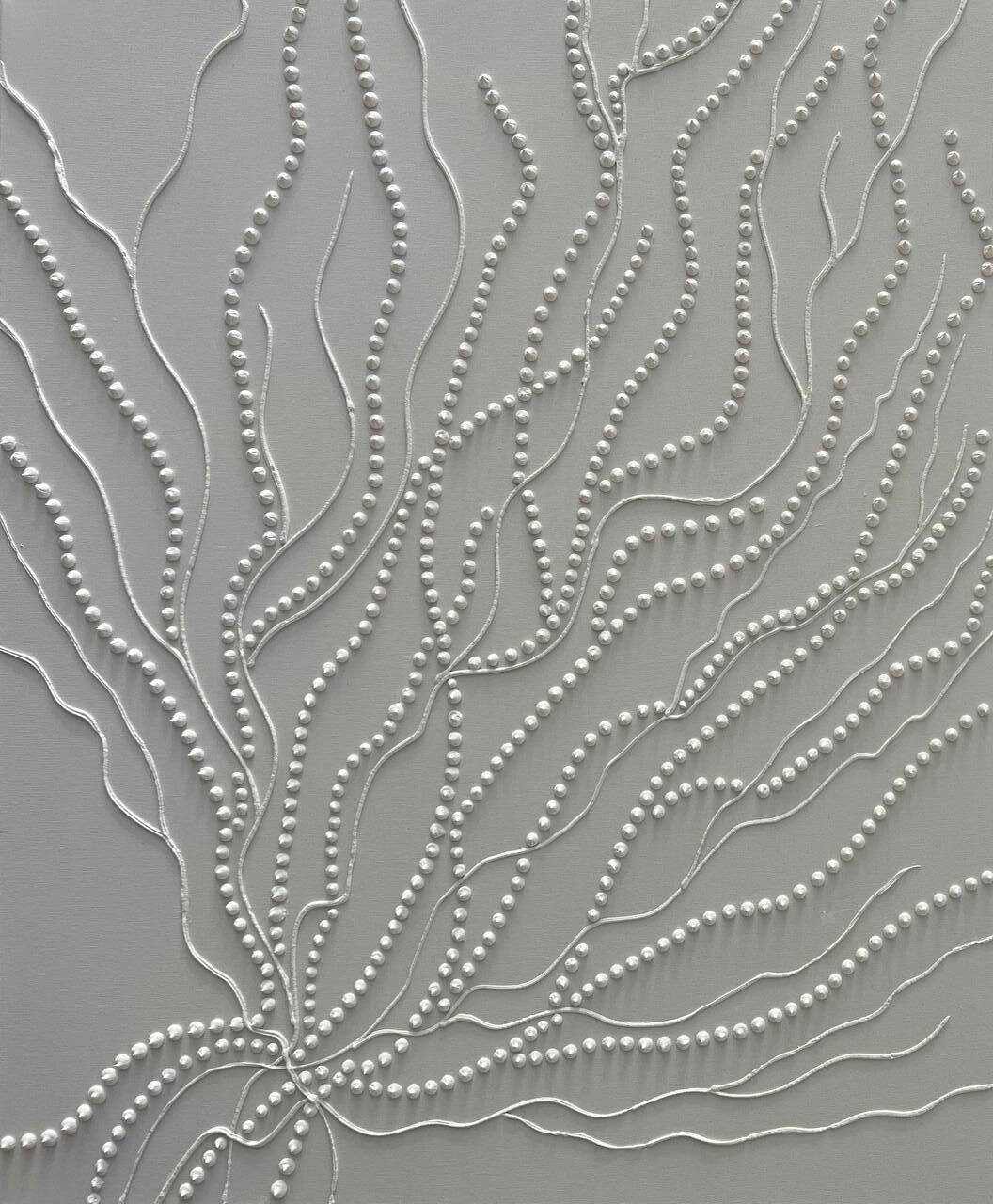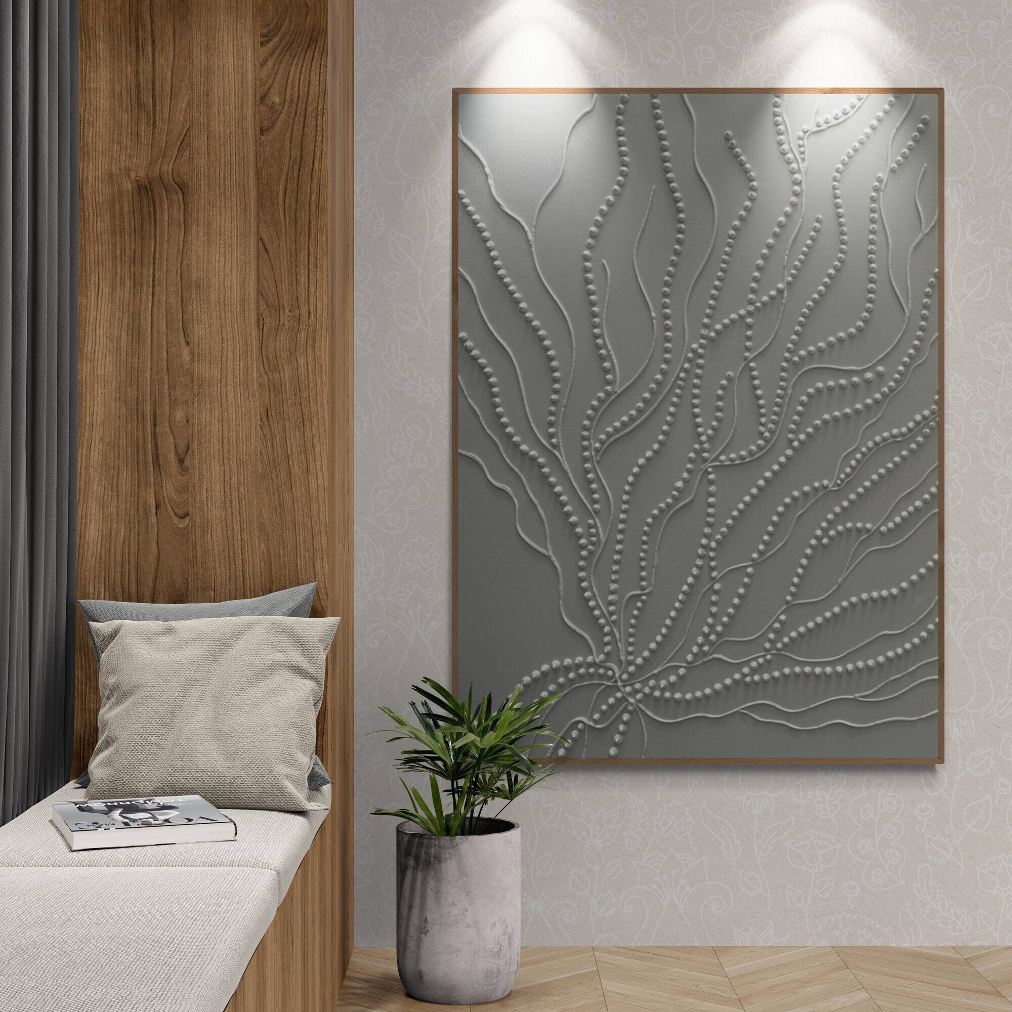 Soft neutral tones and organic flowing 3D dot patterns bring depth, calm, and modern elegance to any interior.