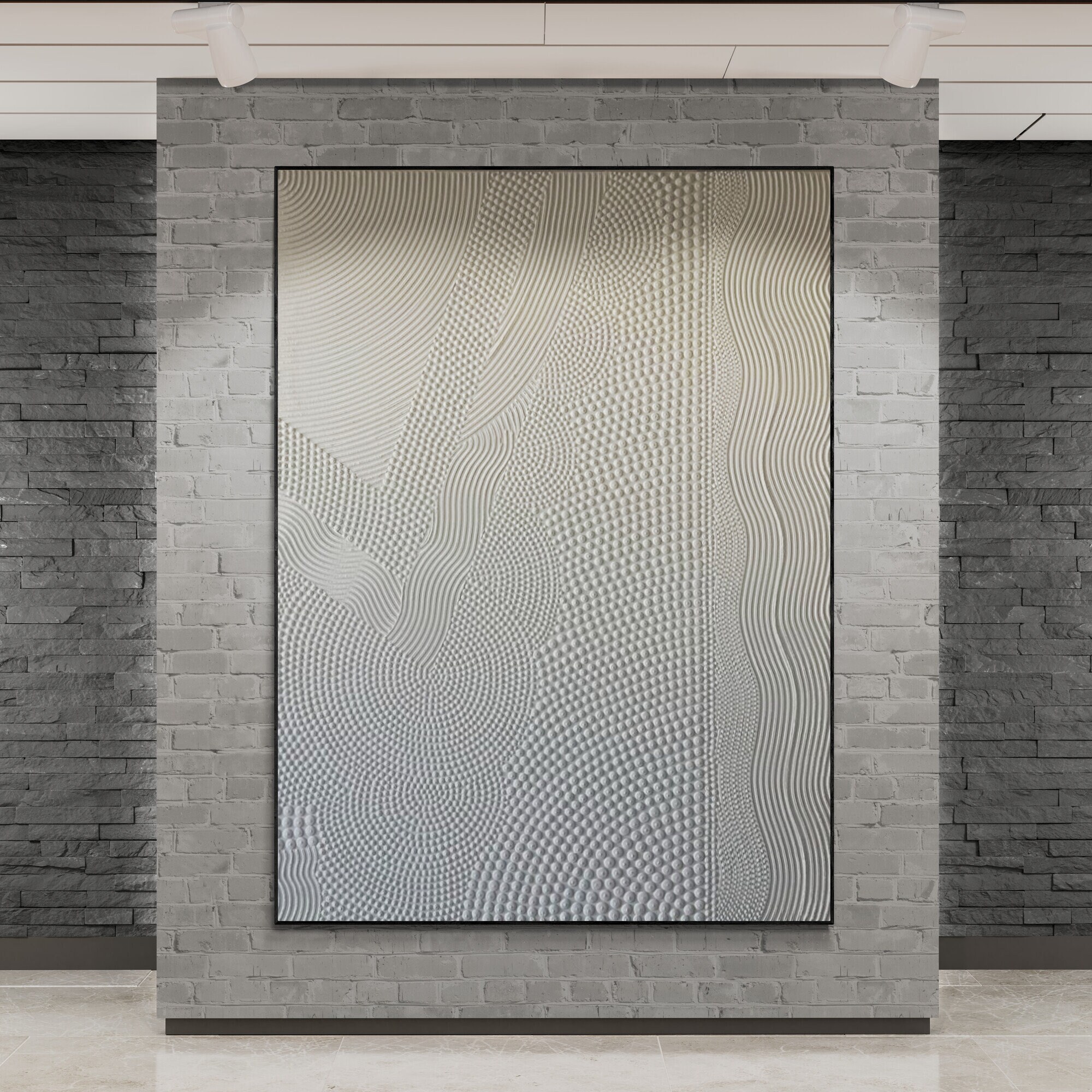 The matte white-neutral palette brings serenity, balance and minimalist clarity, making this artwork ideal for interiors where texture speaks louder than color. The flowing lines evoke sand patterns, ocean movement, zen gardens and organic landscapes, bringing a soothing grounding presence into any room.