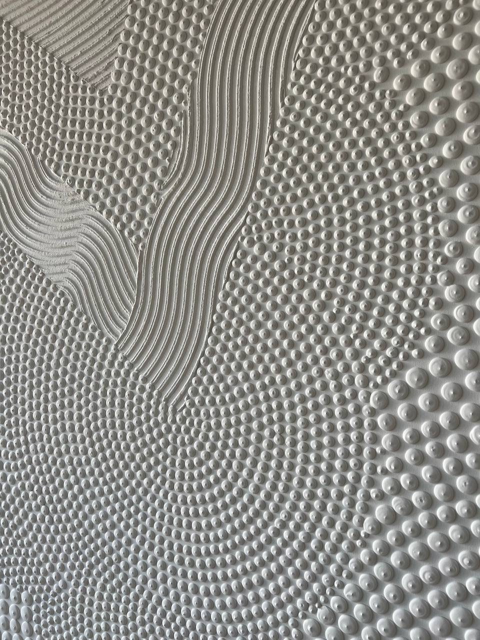 Oversized White 3D Textured Abstract Painting: Modern Pointillism Wall Art