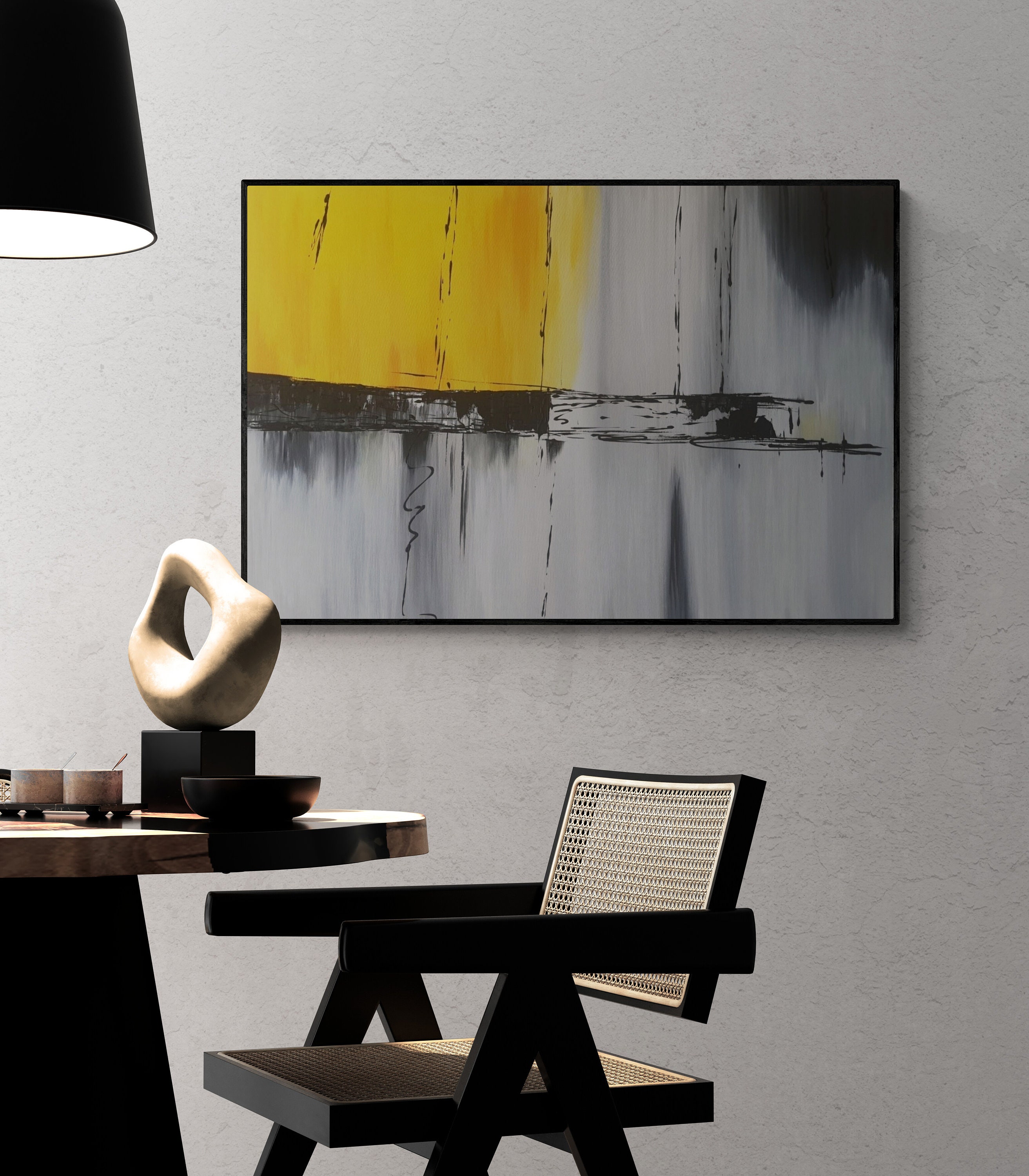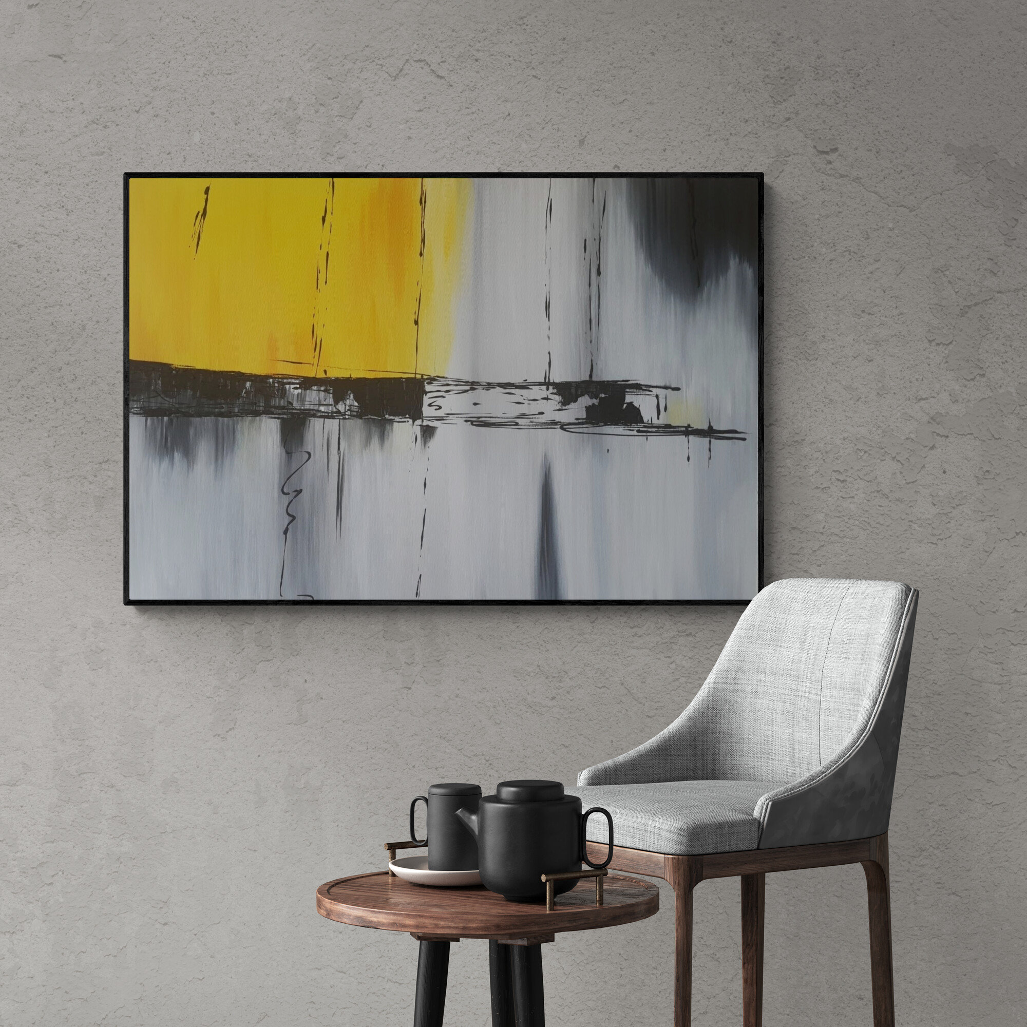 Original Abstract Painting: Yellow, Gray, and Black Wall Art (24"x36")
