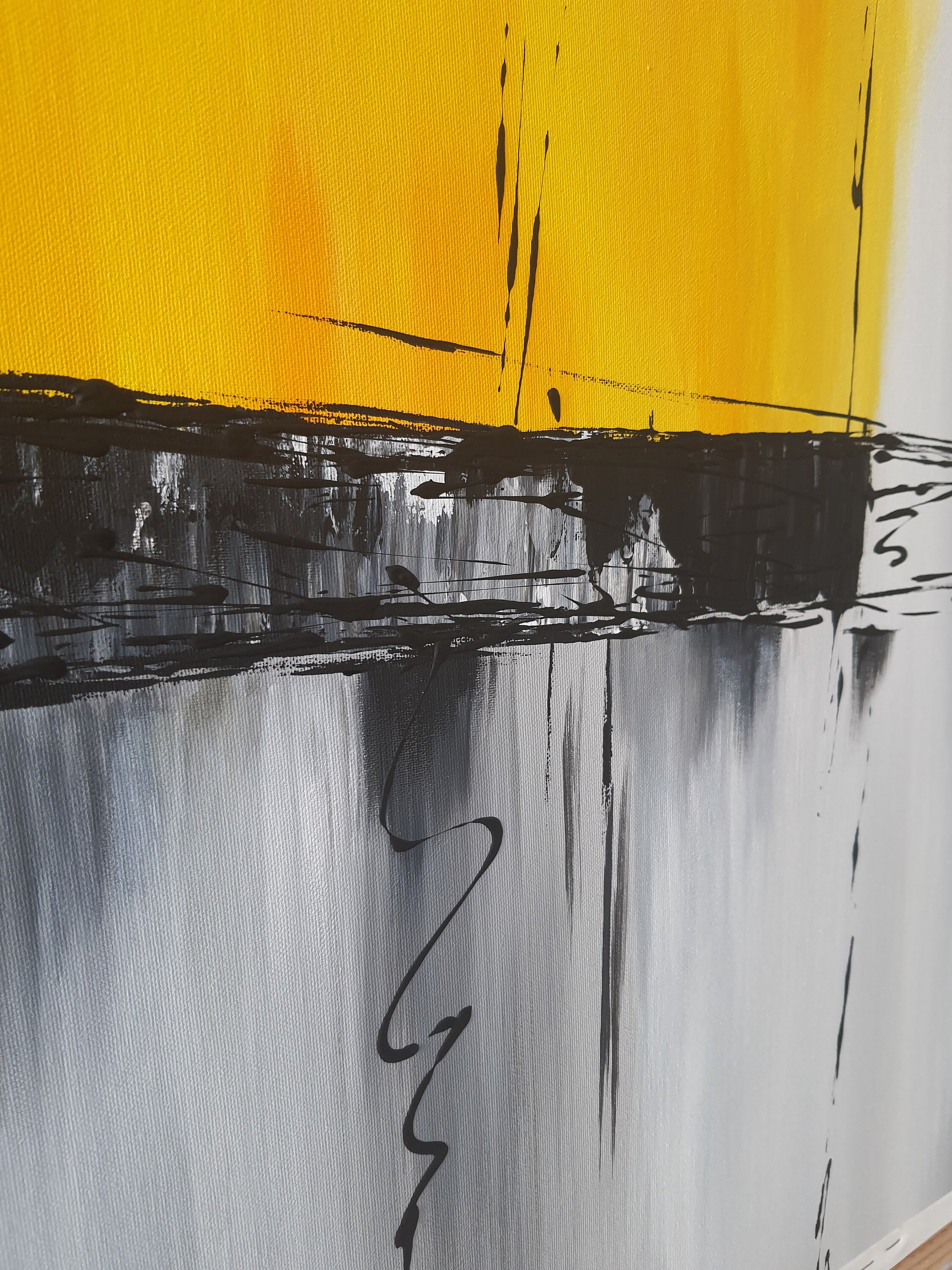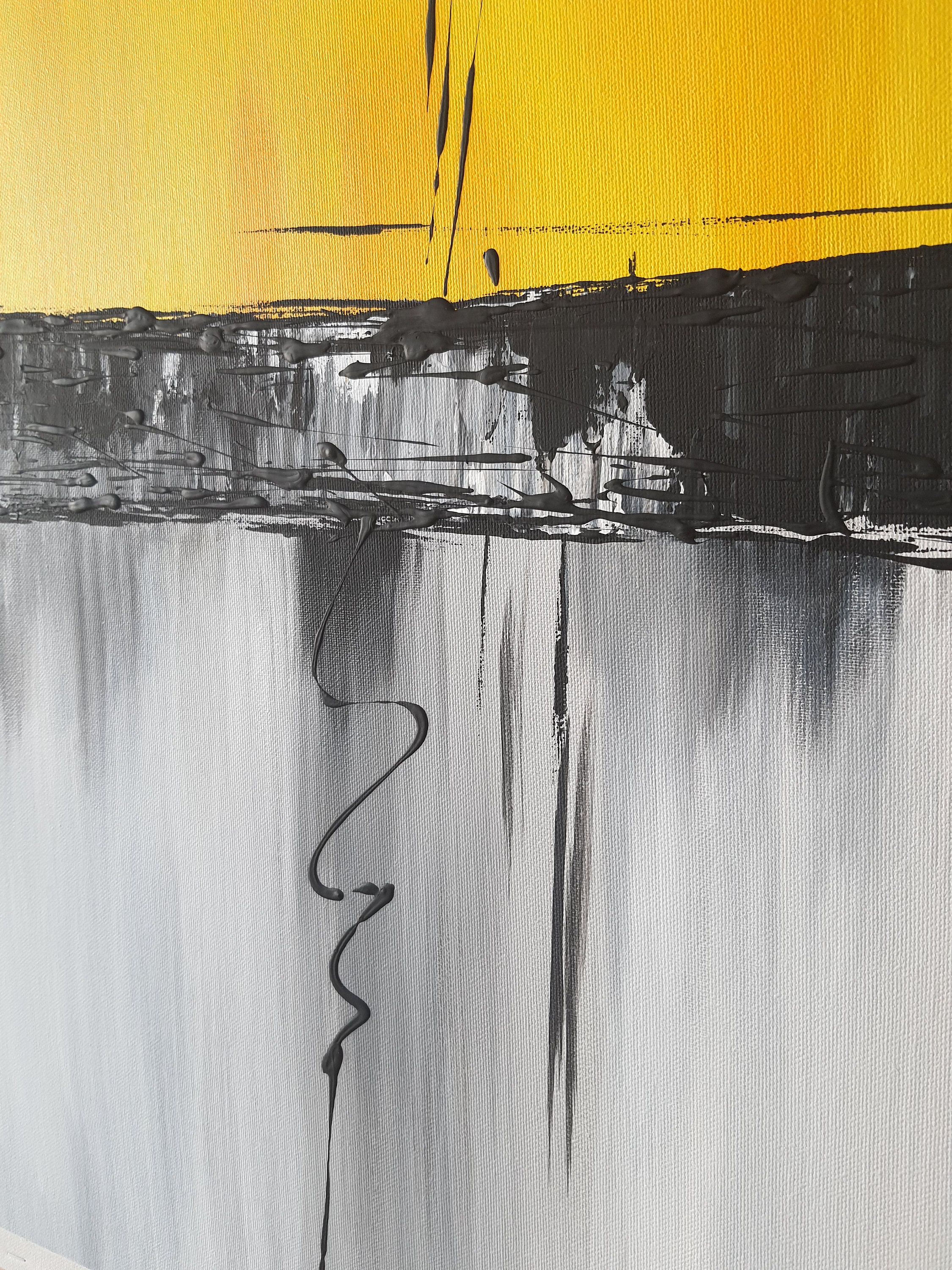 Original abstract painting yellow, white, gray, black wall art 24"×36"/ 61cm x 91cm painting ready to ship, abstract art for hallway, living room, office