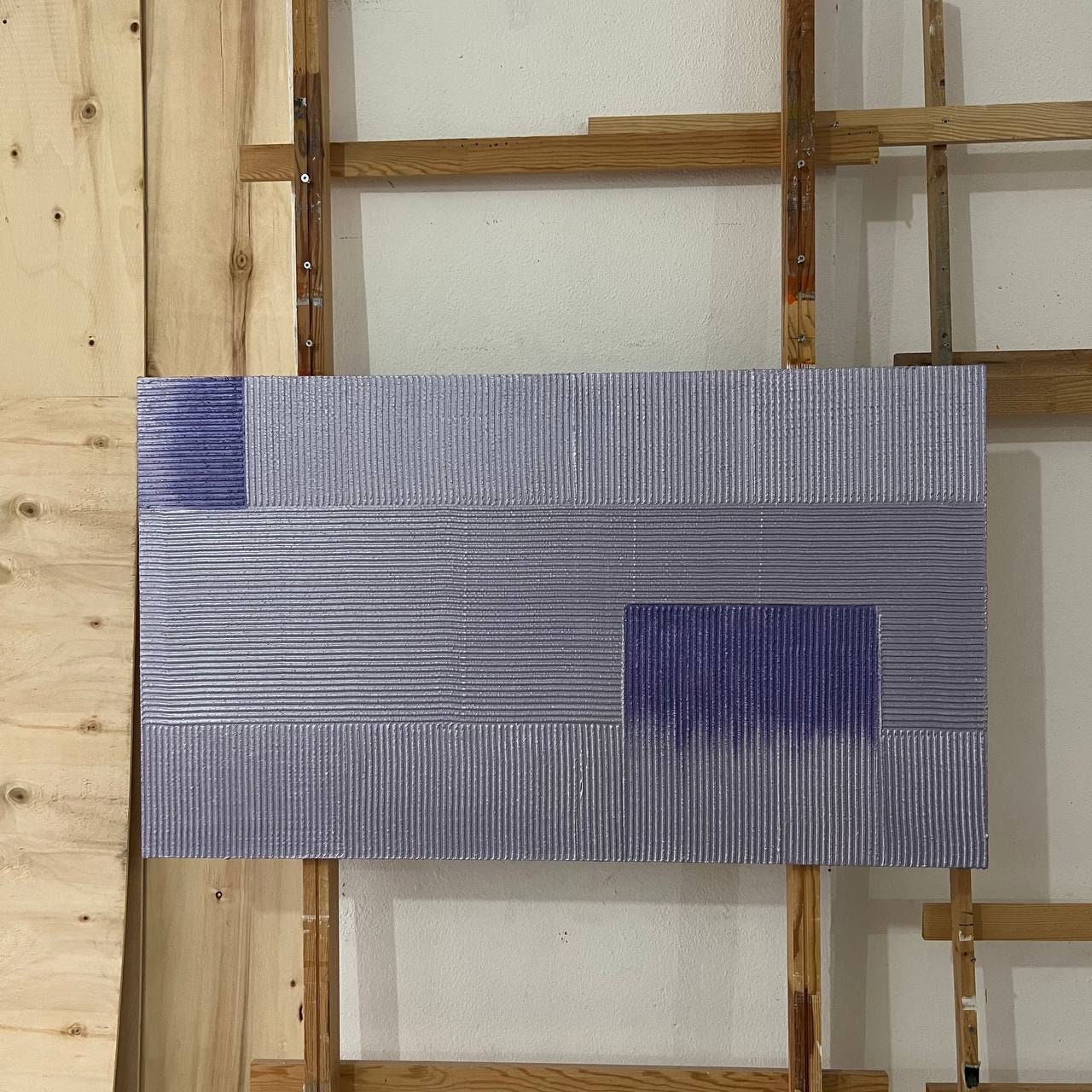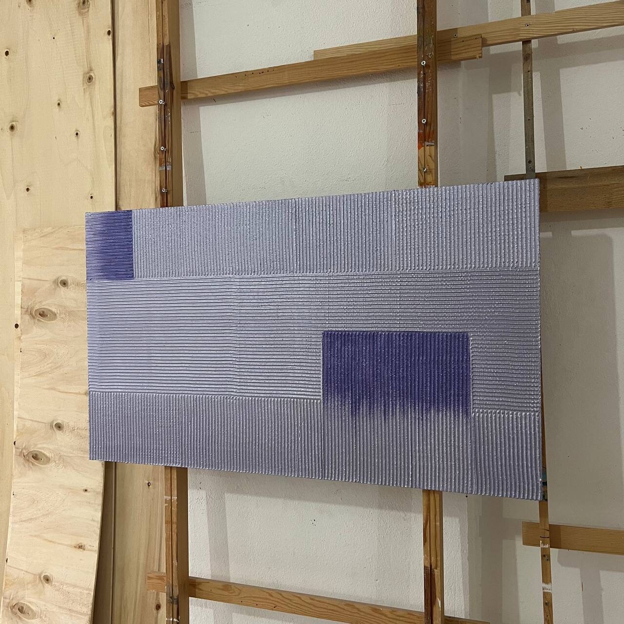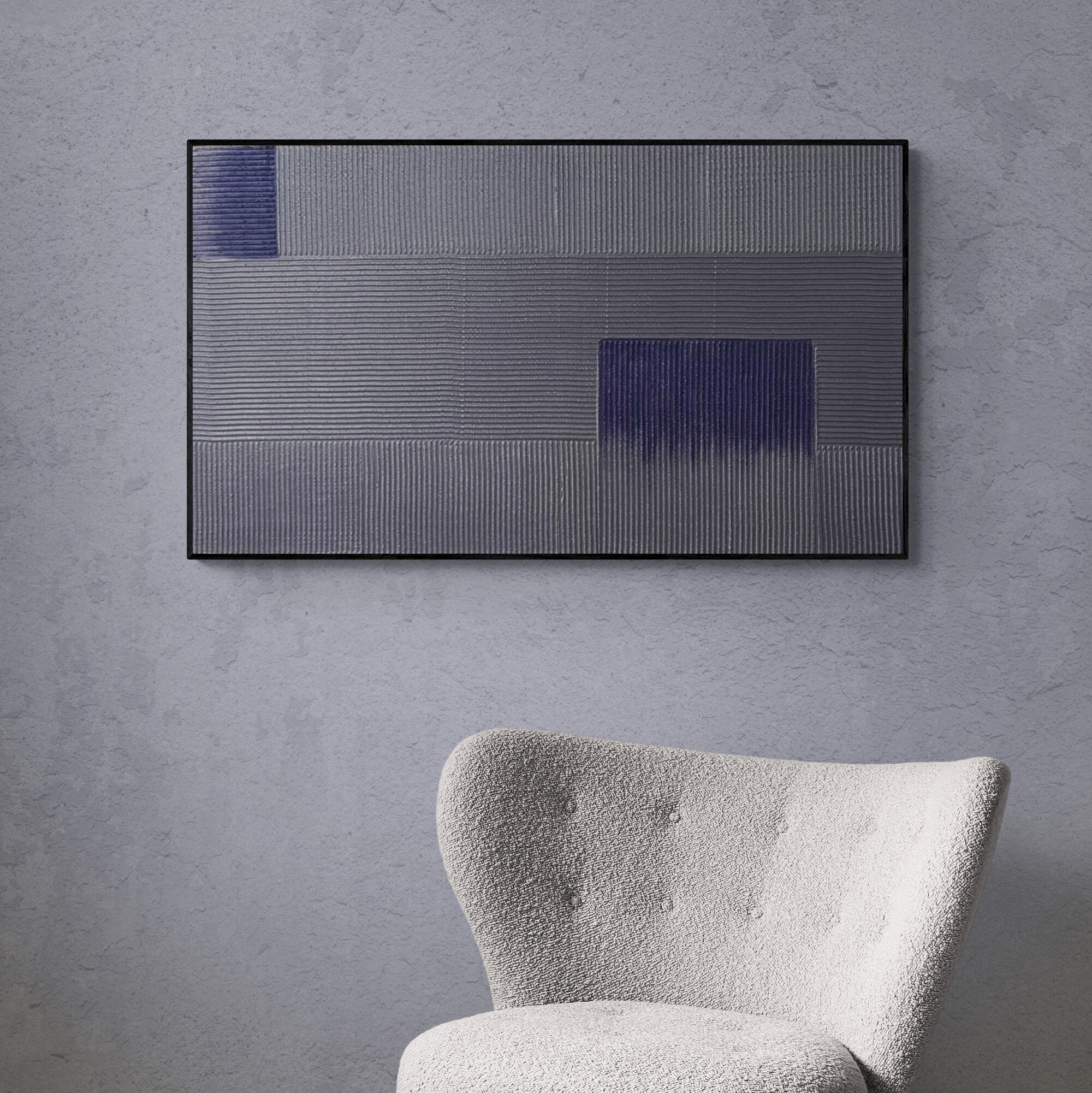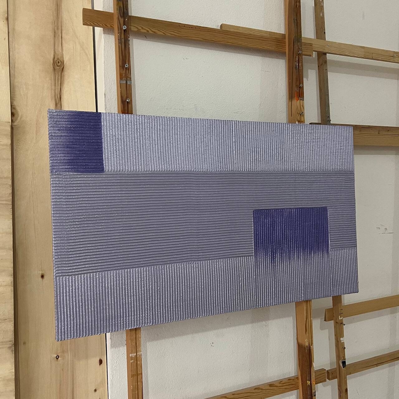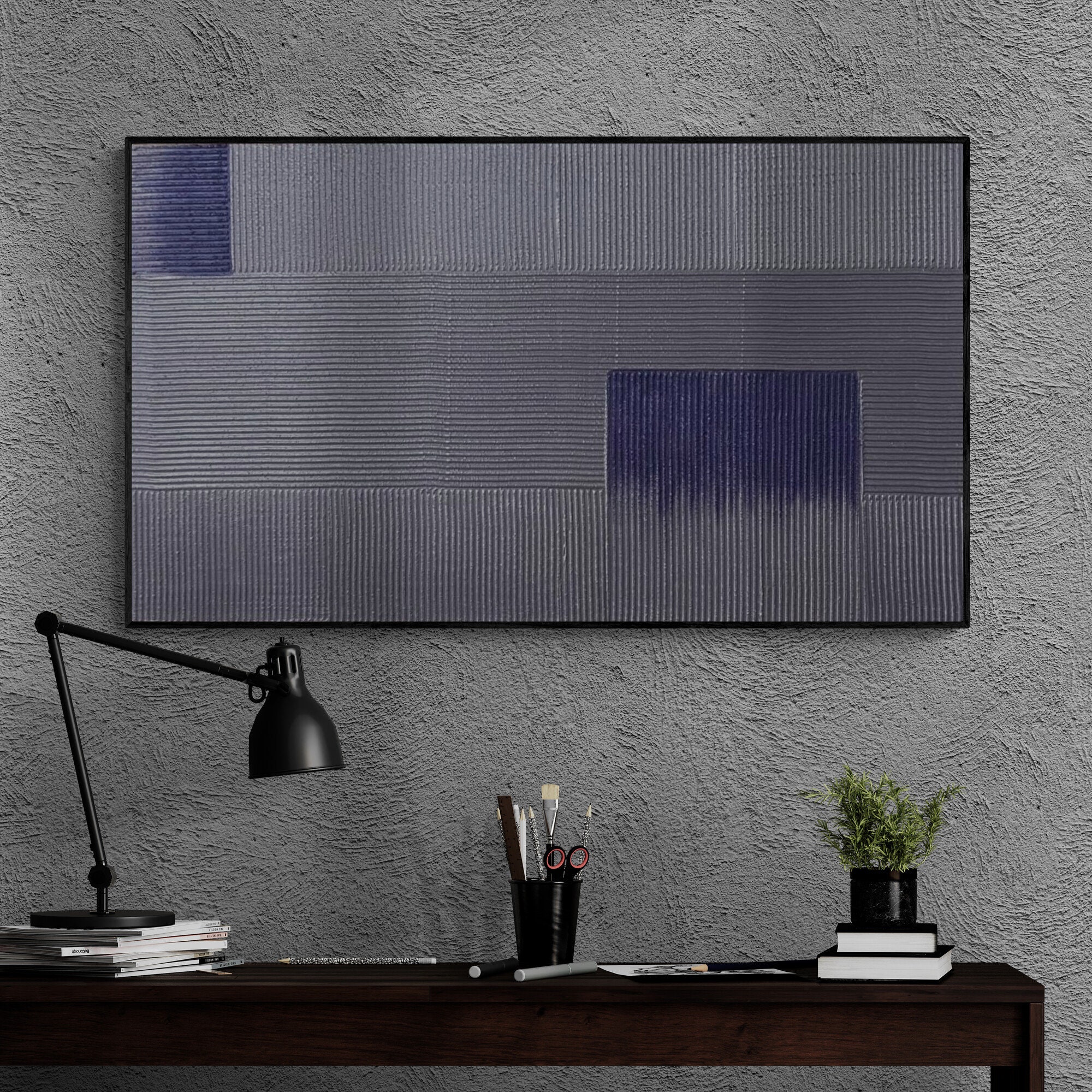 Large 3D Abstract Painting: Purple Metallic Textured Wall Art, Modern Plaster Handmade Canvas
