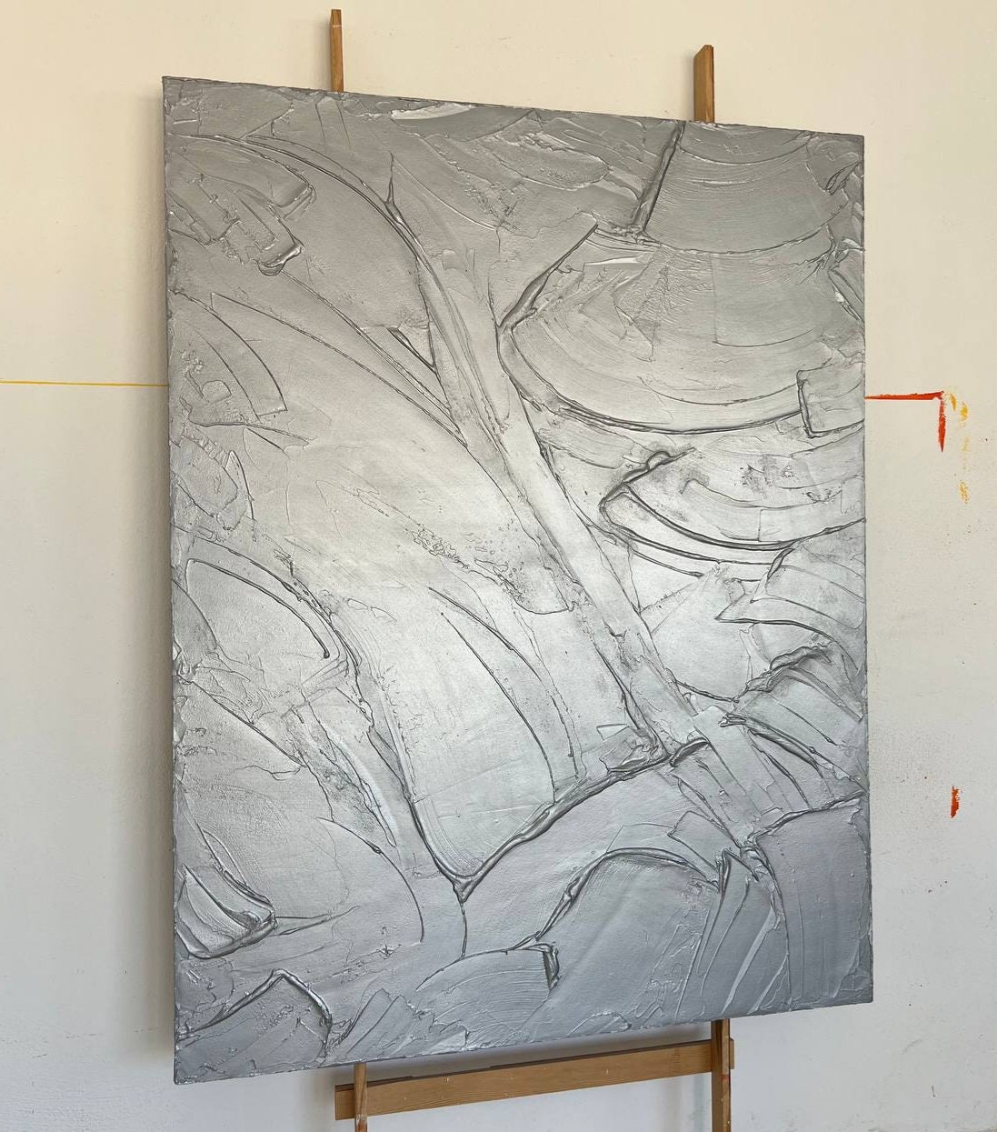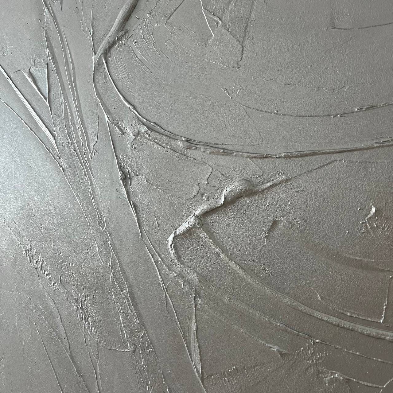 Oversized Silver Metallic Abstract Painting: 3D Textured Wall Art