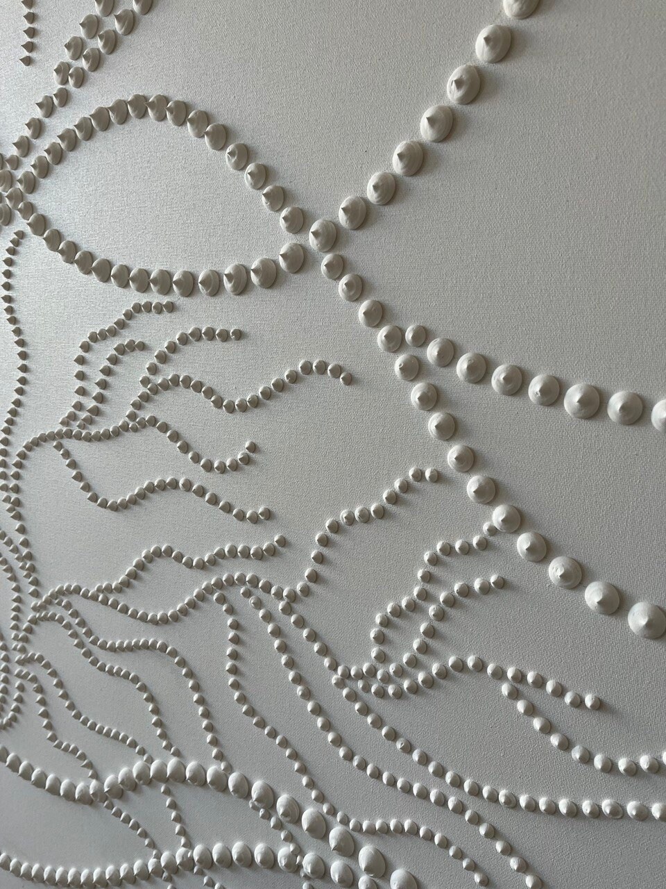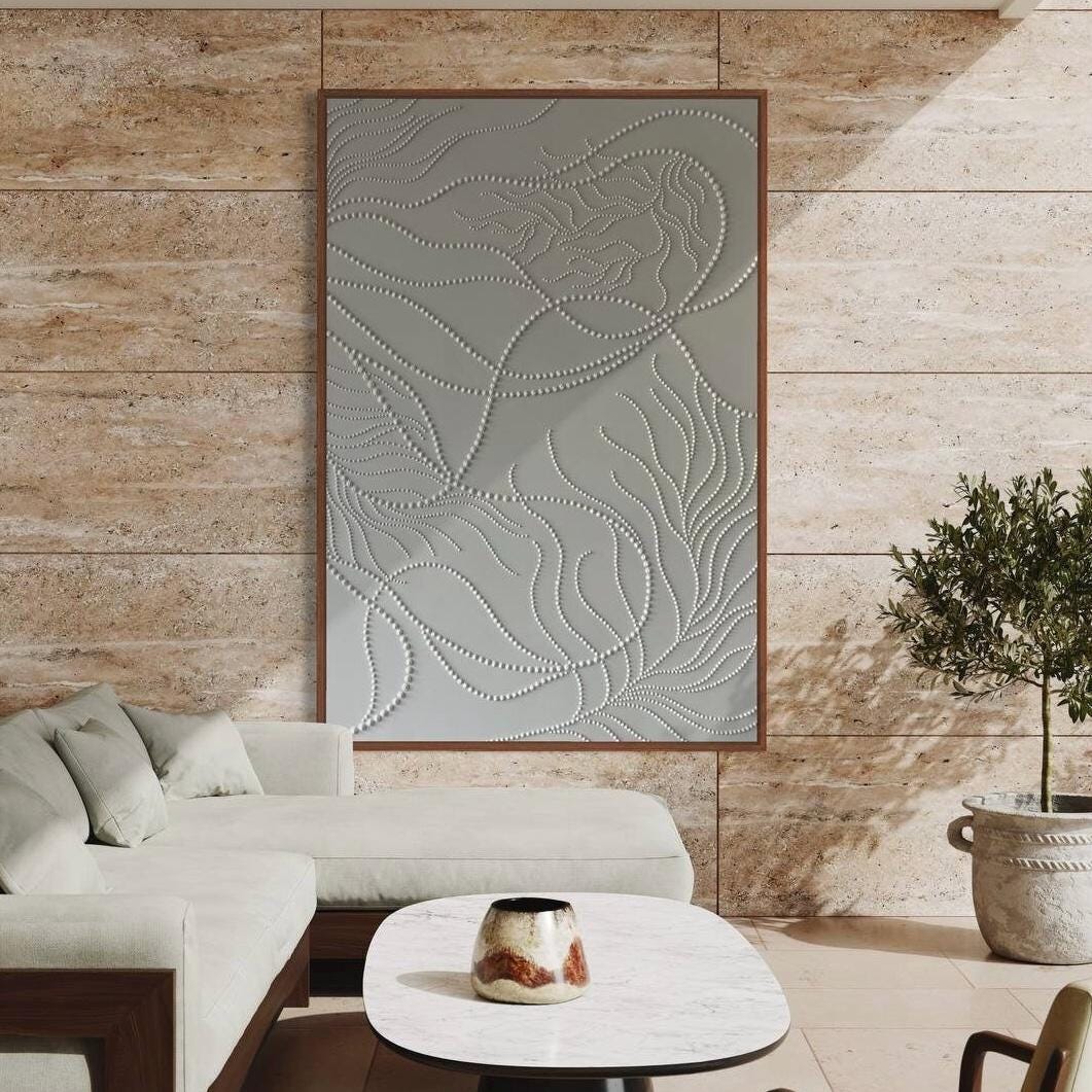 Soft neutral tones and organic flowing 3D dot patterns bring depth, calm, and modern elegance to any interior.