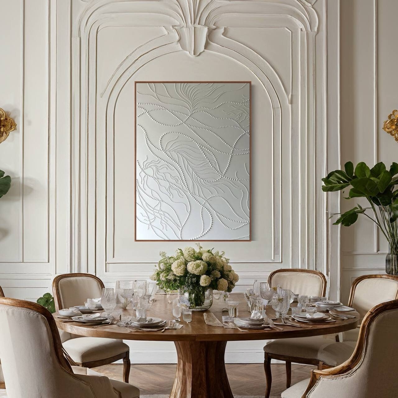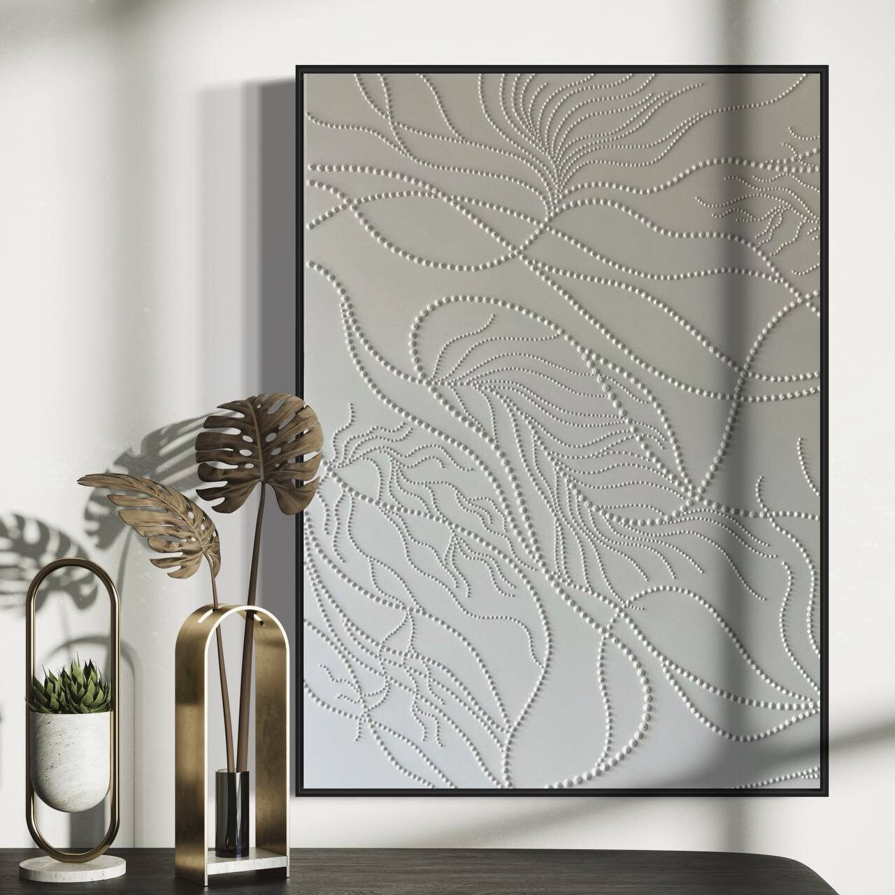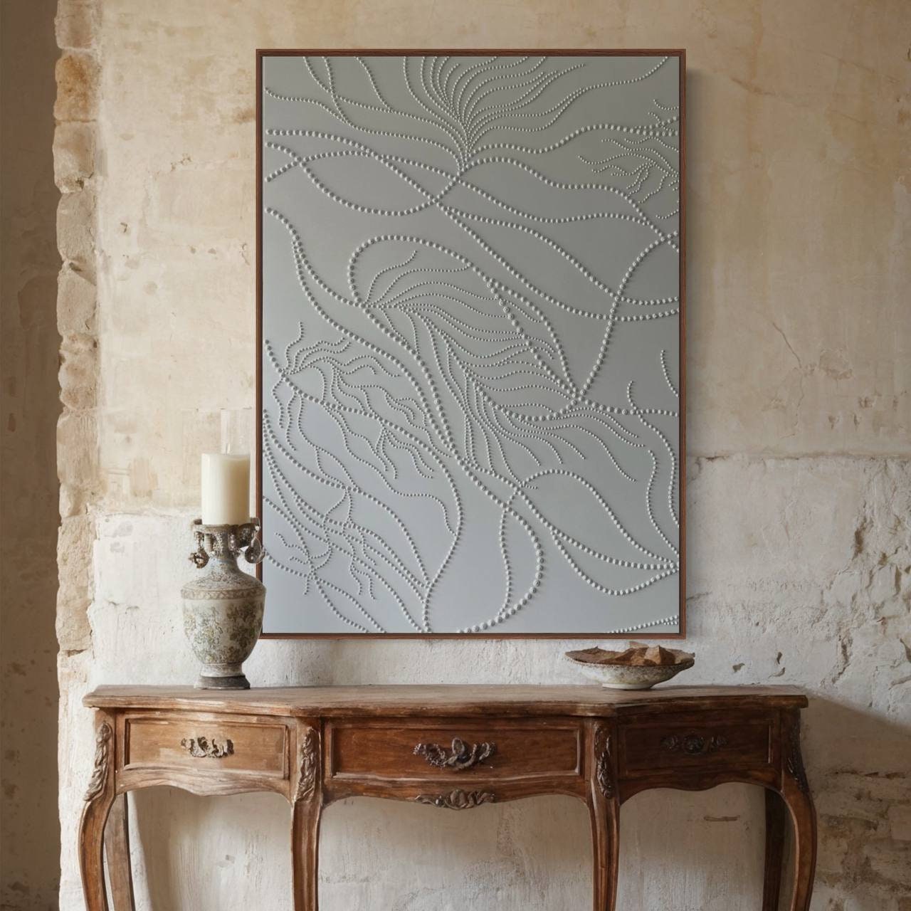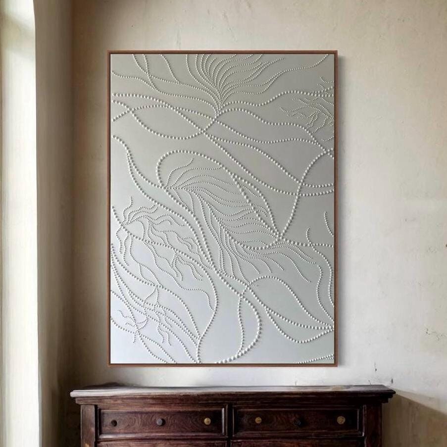 Soft neutral tones and organic flowing 3D dot patterns bring depth, calm, and modern elegance to any interior.