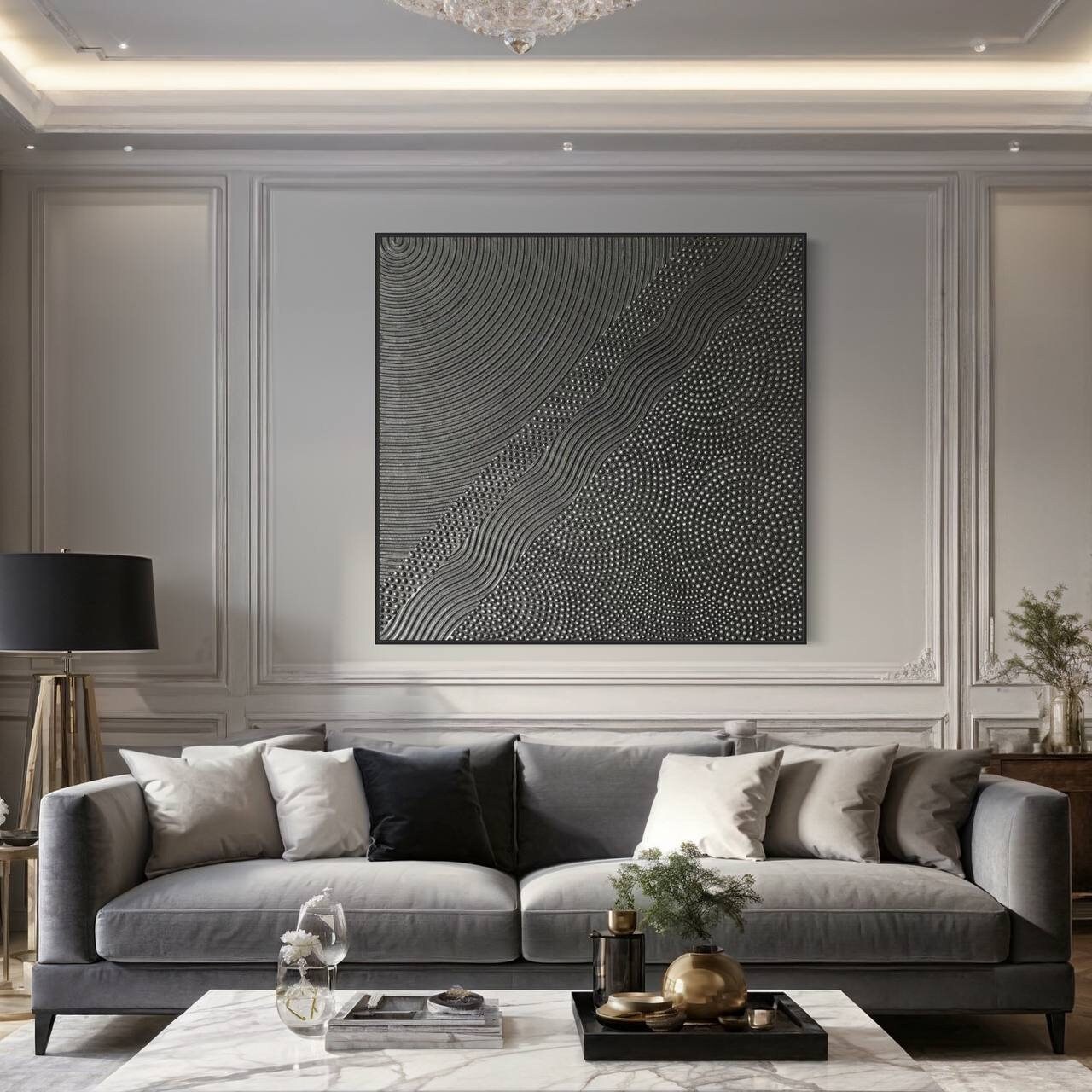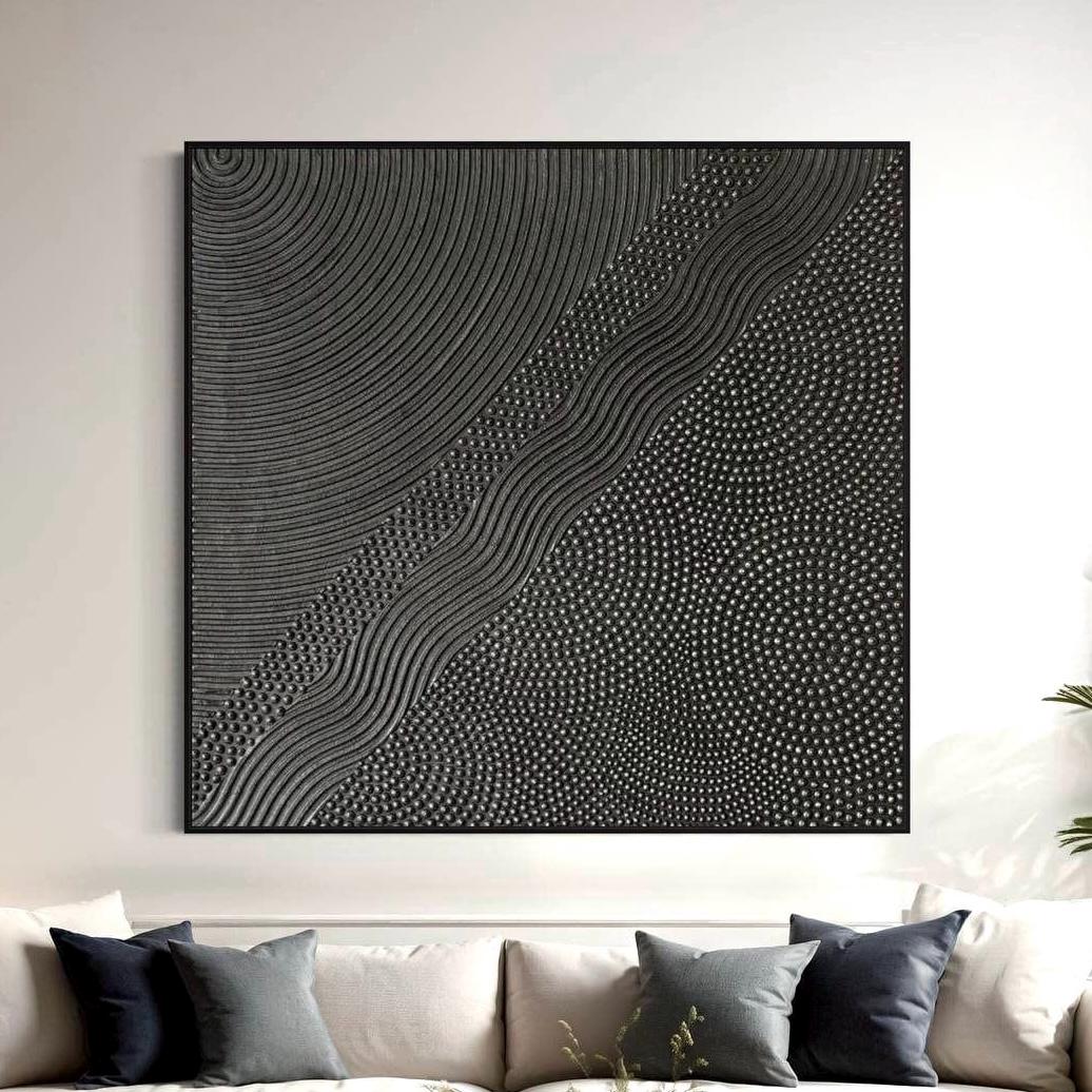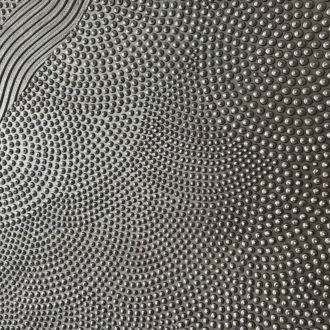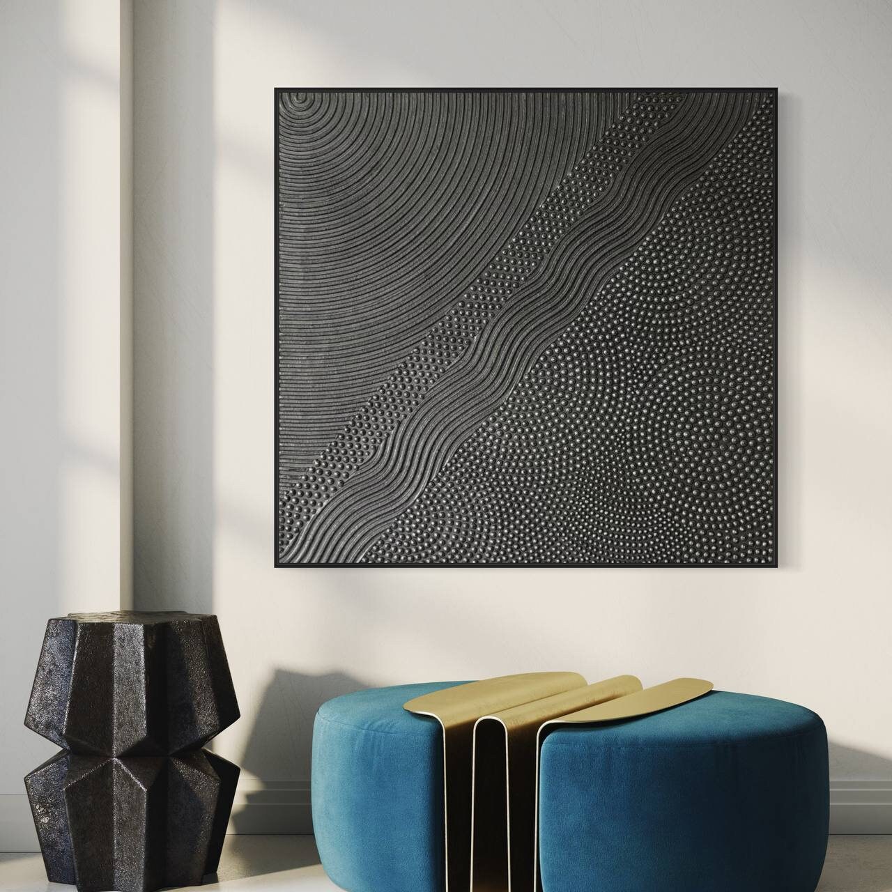 The surface is created with raised 3D dot texture and flowing relief lines, giving the artwork depth, movement, and a refined modern character.