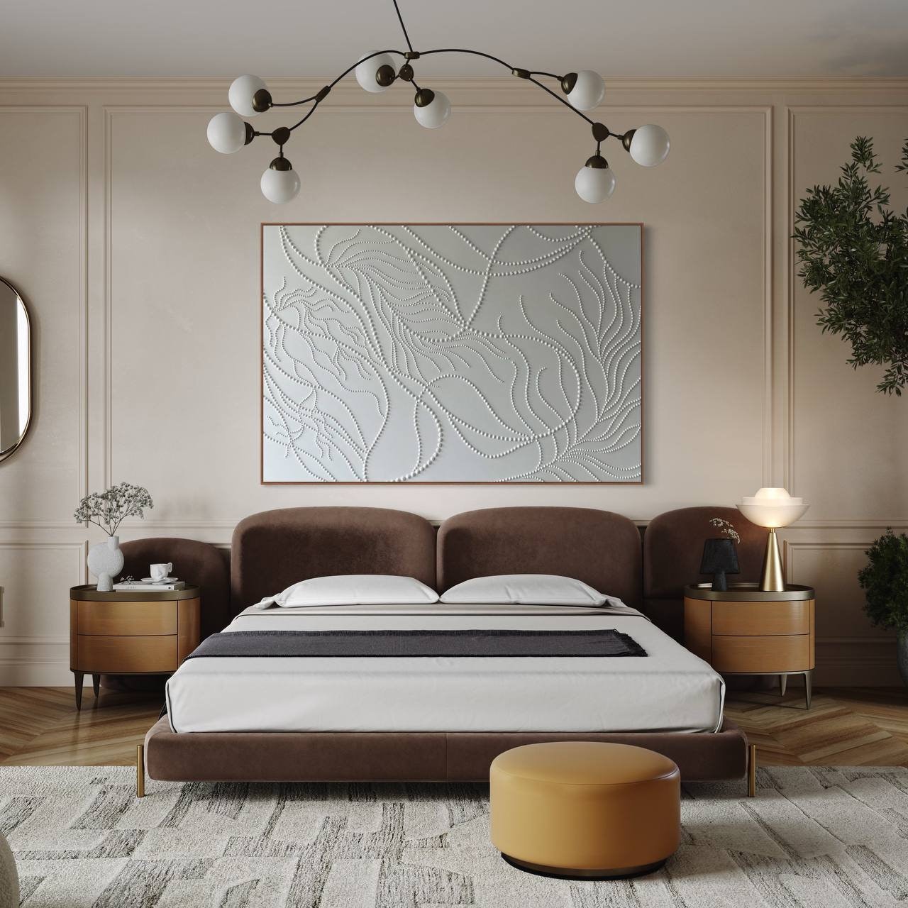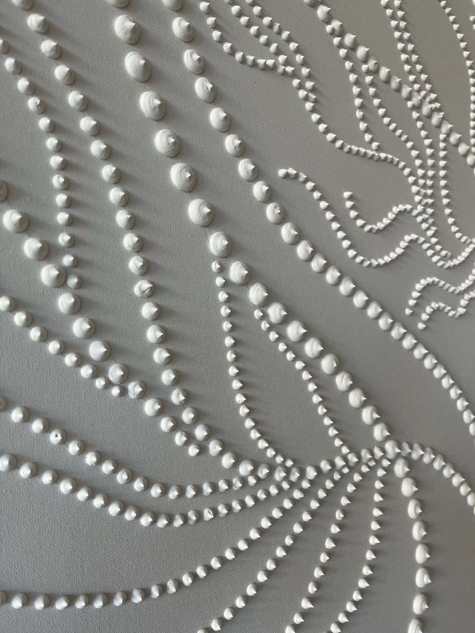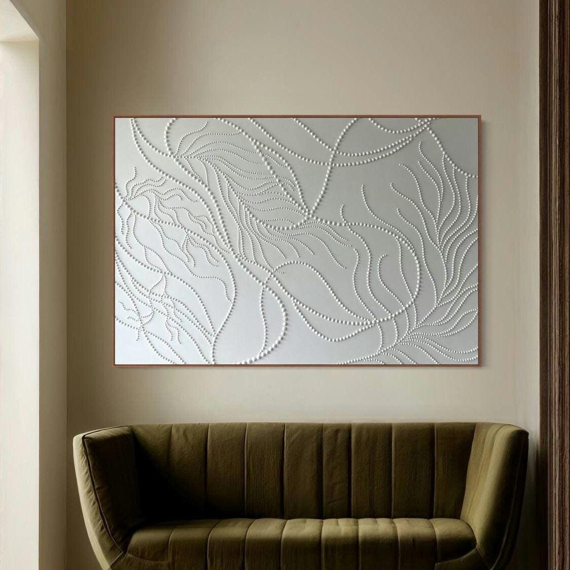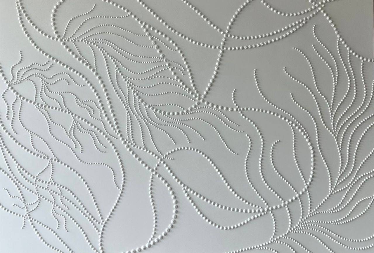 The surface is created with raised 3D dot texture and flowing relief lines, giving the artwork depth, movement, and a refined modern character.