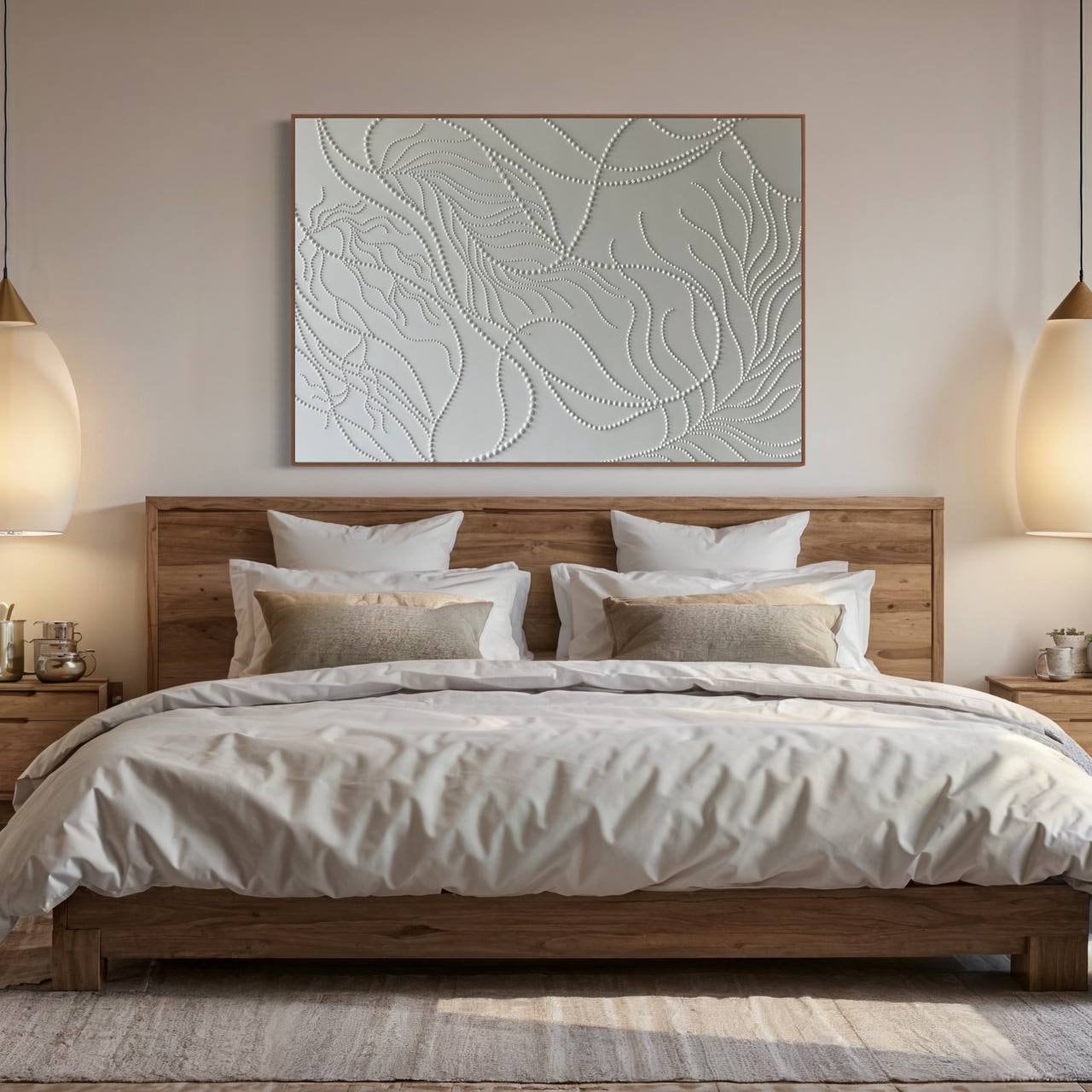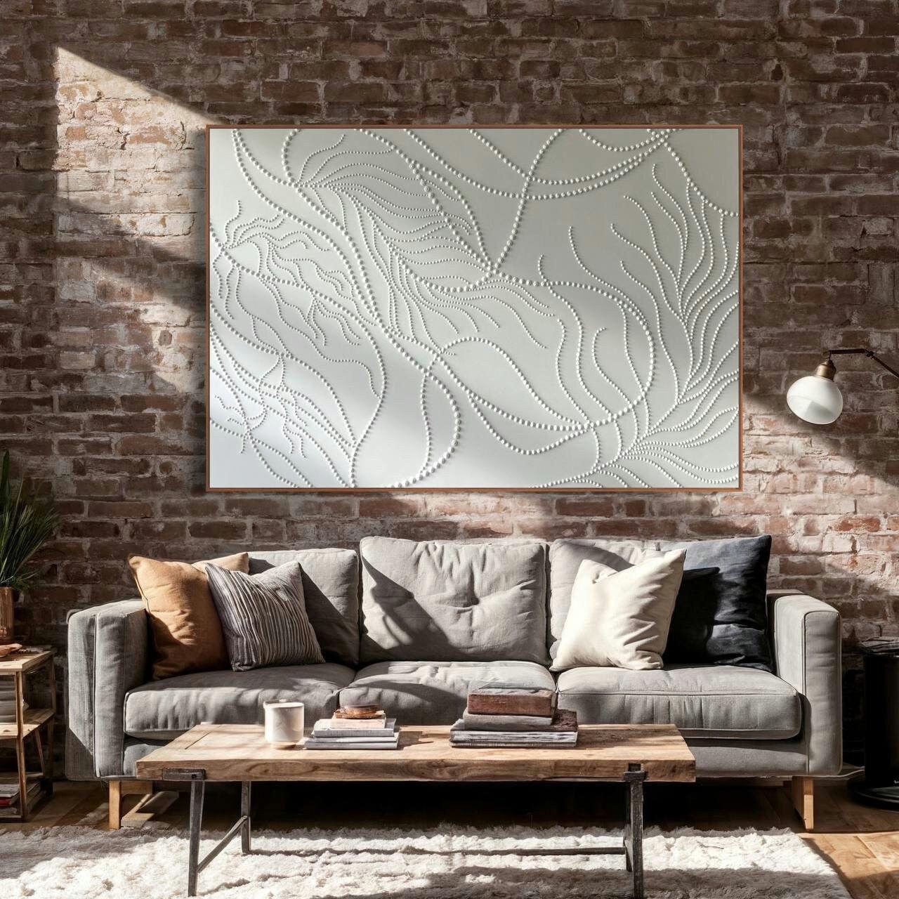 Perfect as a statement piece above a sofa, bed, fireplace, or in a spacious modern interior, this artwork brings calm luxury and architectural texture into your space.