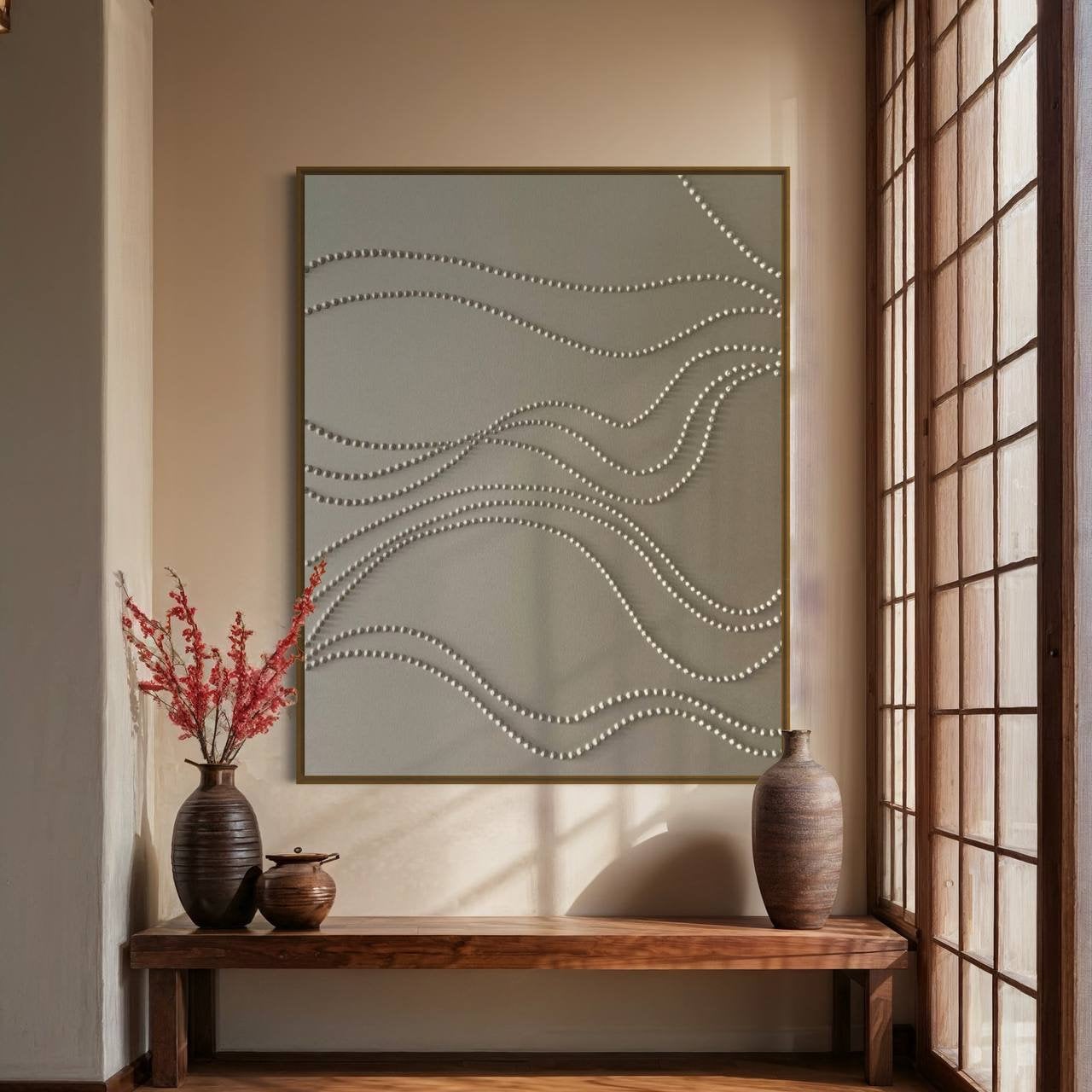 Modern neutral artwork with flowing geometric relief and calming organic movement.