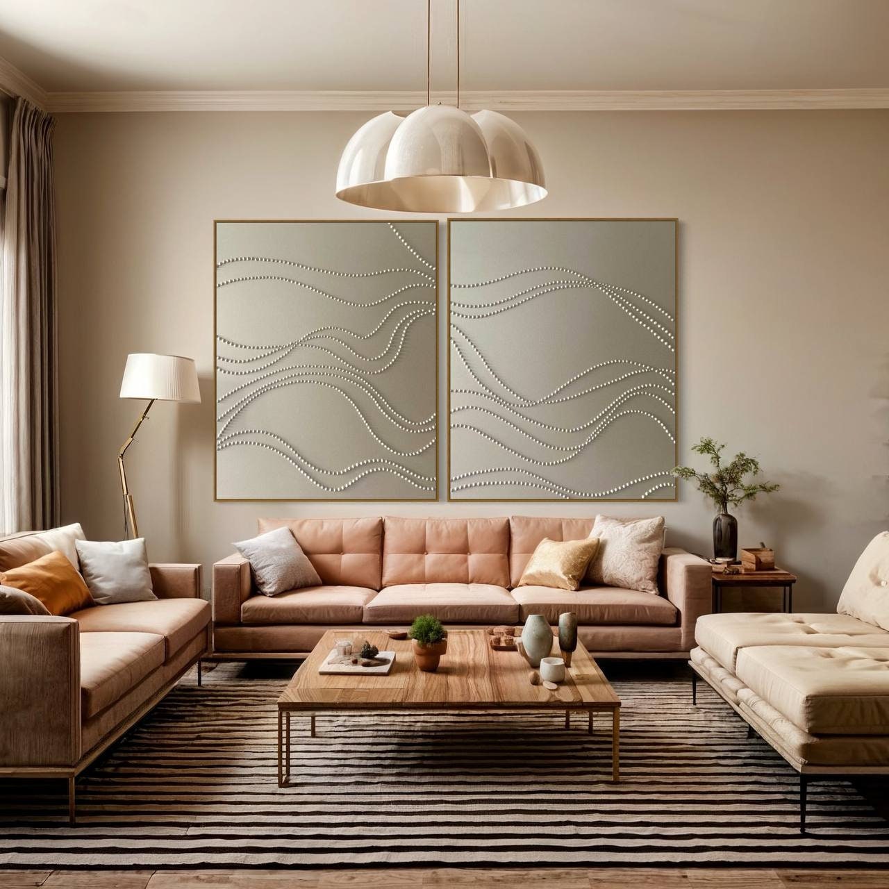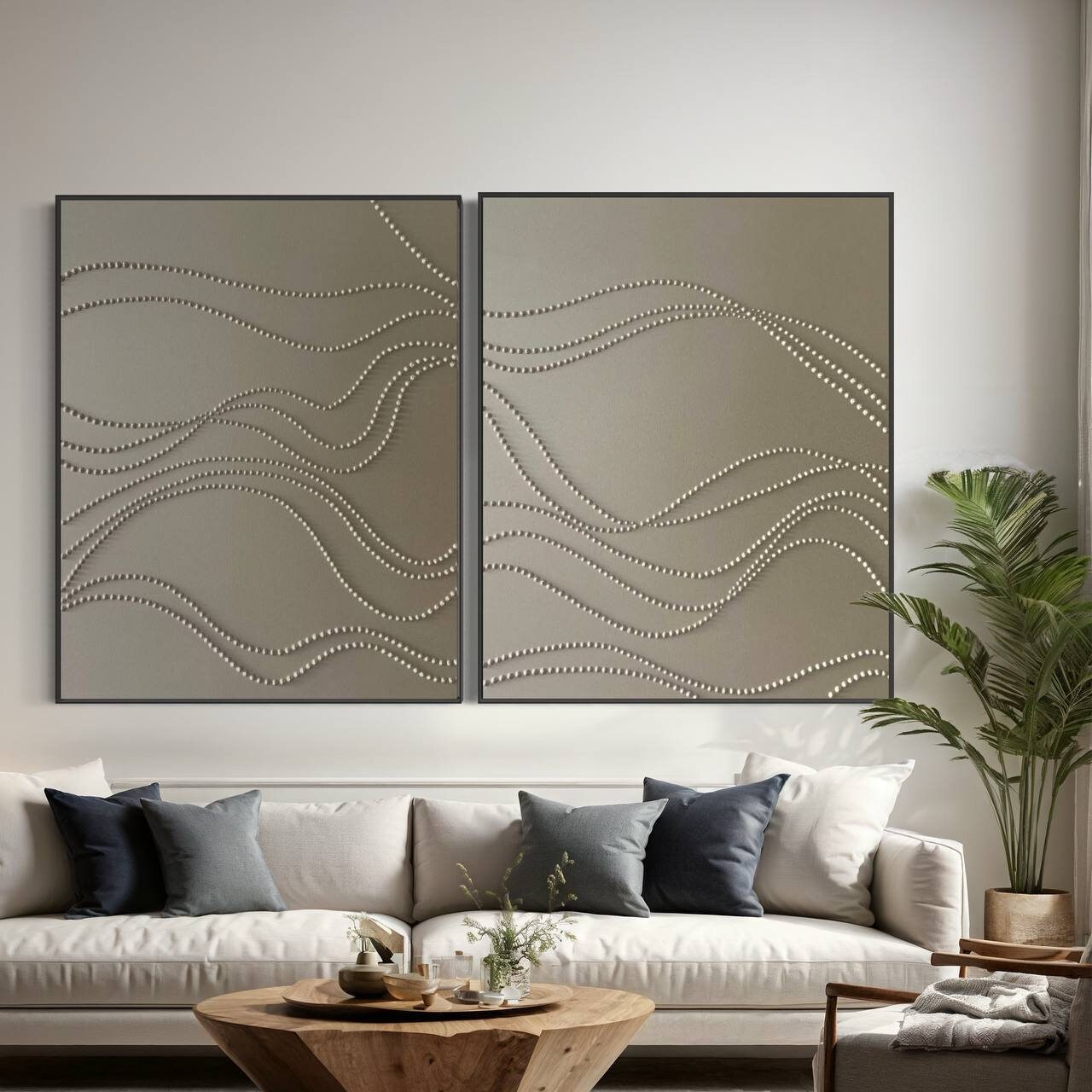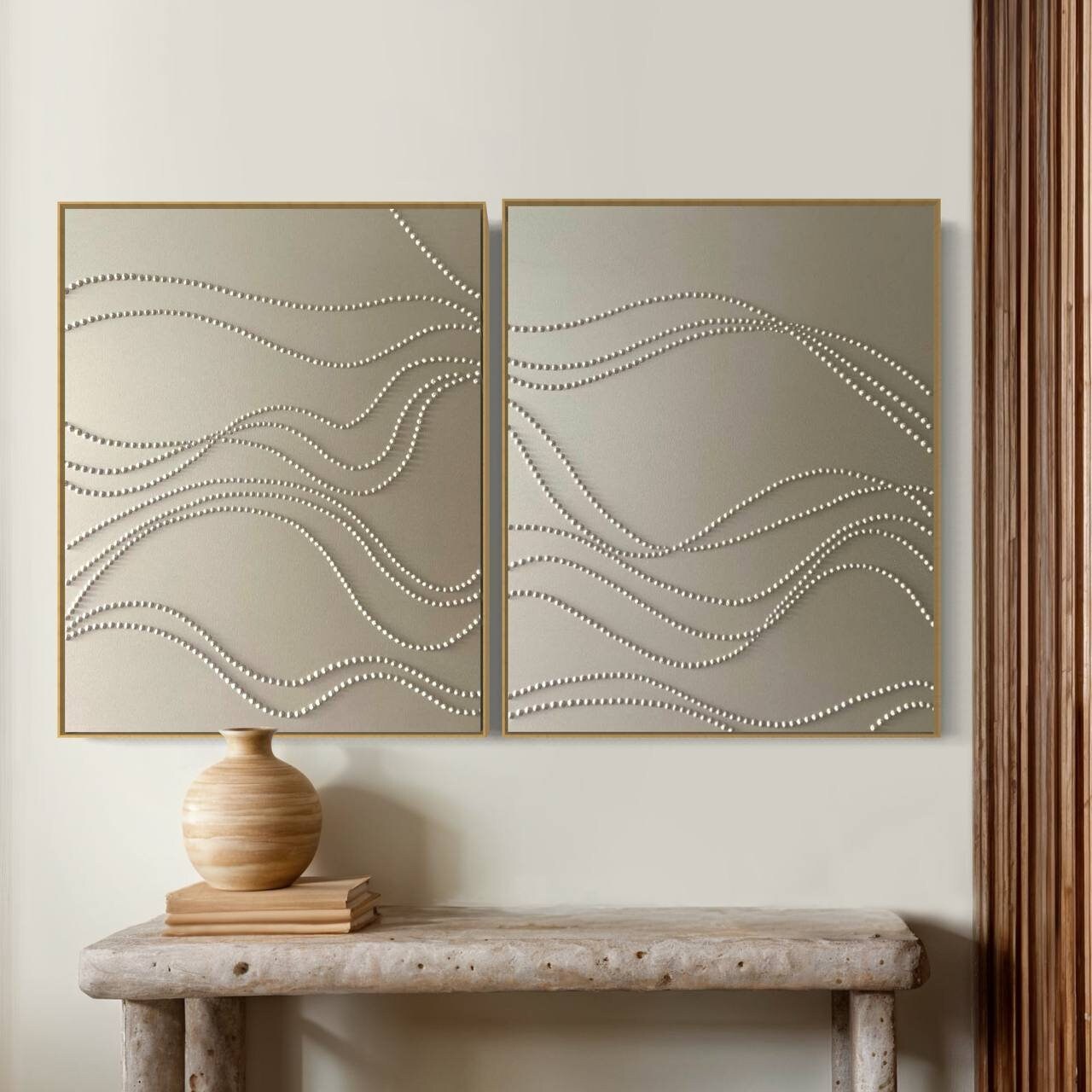 Large Set of 2 Paintings Oversize Abstract Wall Art 3d points texture lines Original Paintings canvas Golden Pearl Metallic color volume art