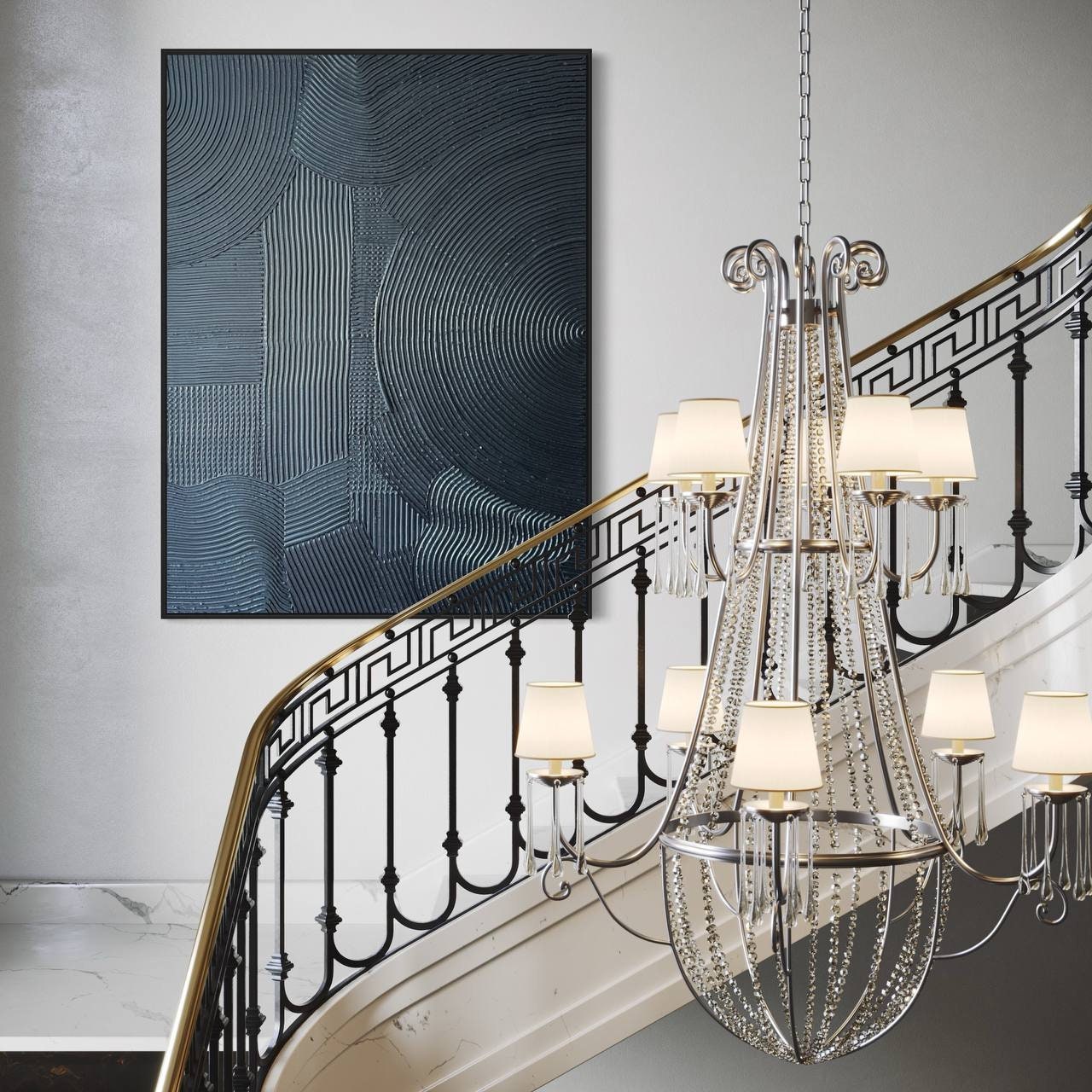 Extra Large Blue Metallic 3D Wall Art: Rich Texture Plaster Painting (64" x 48")