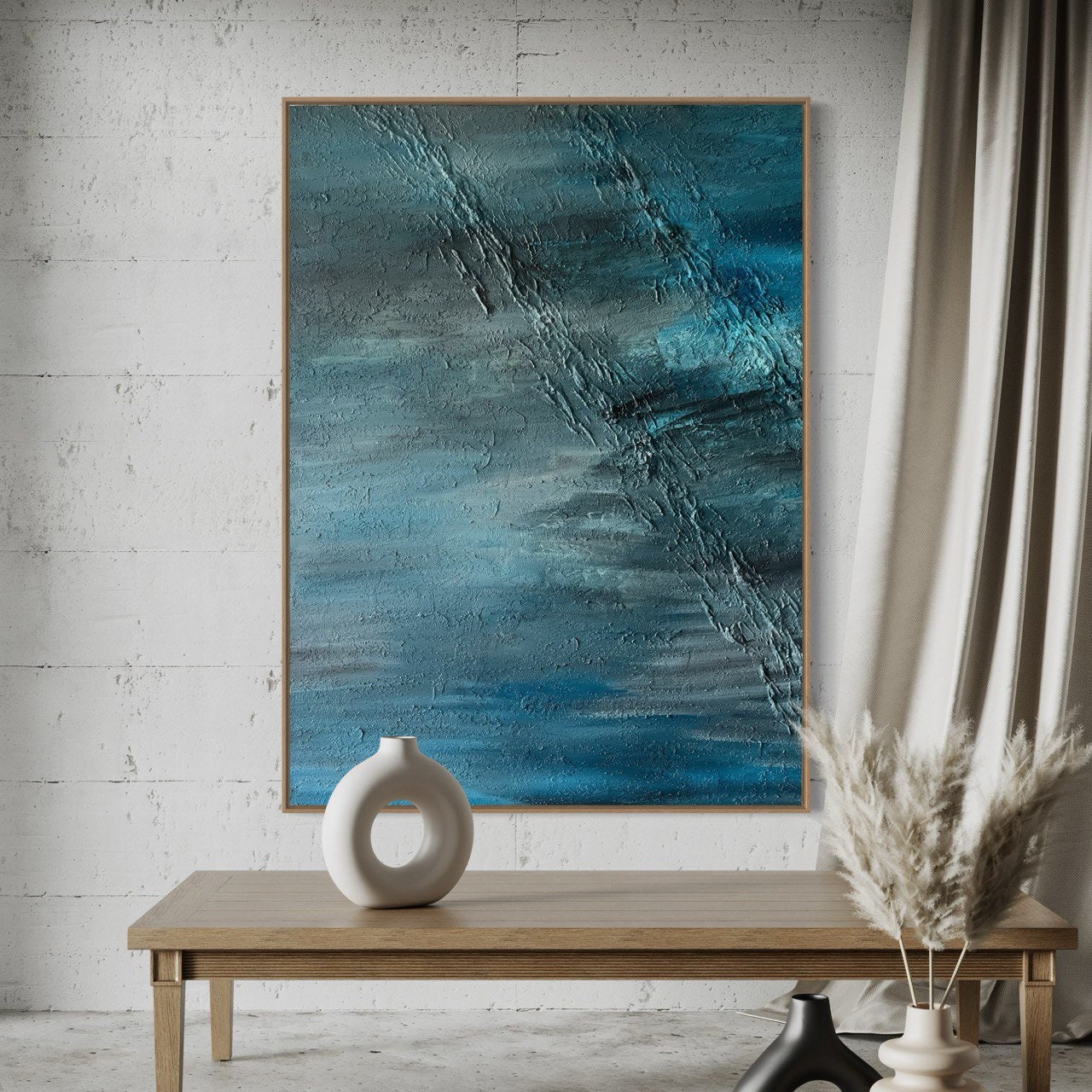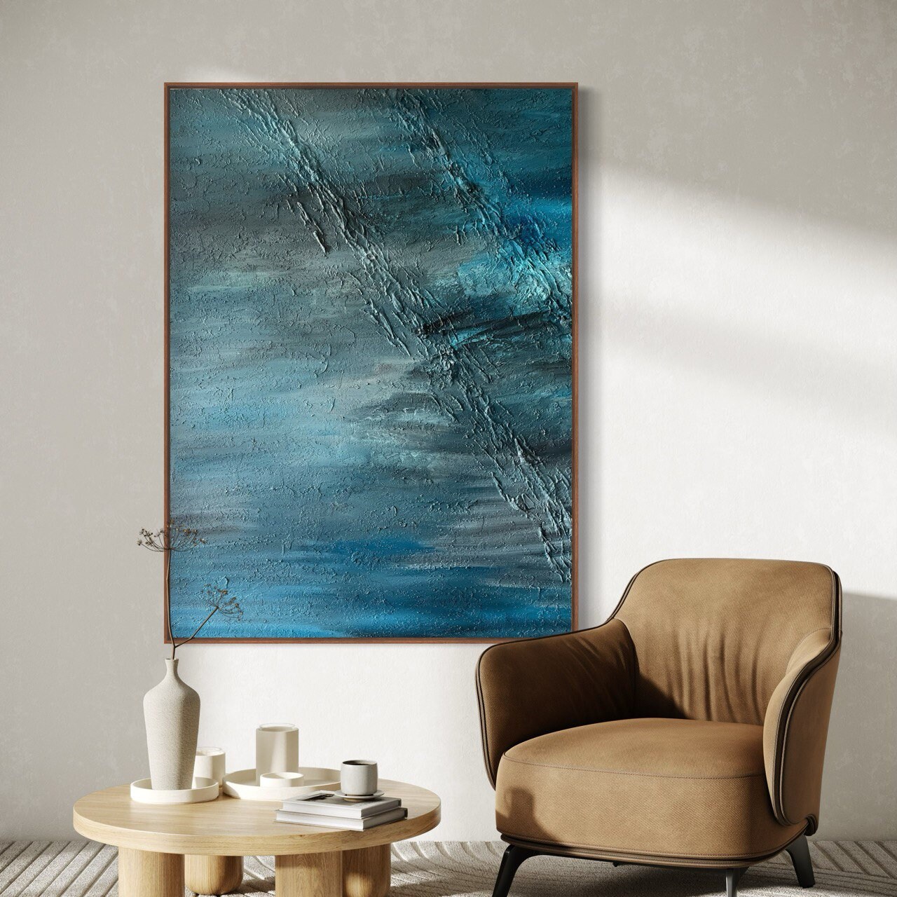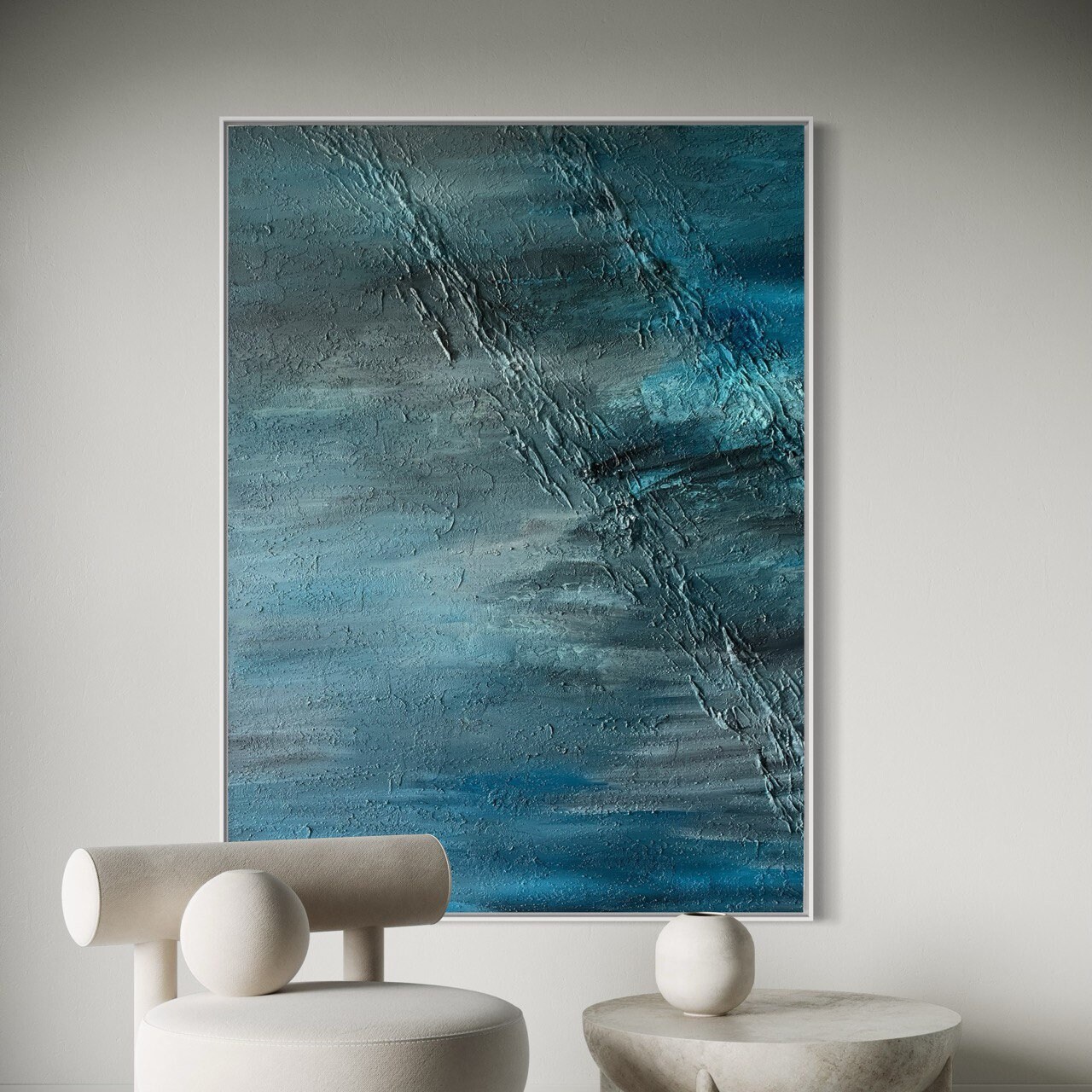 Oversized Blue Abstract Seascape Painting: 3D Texture Modern Canvas Wall Art