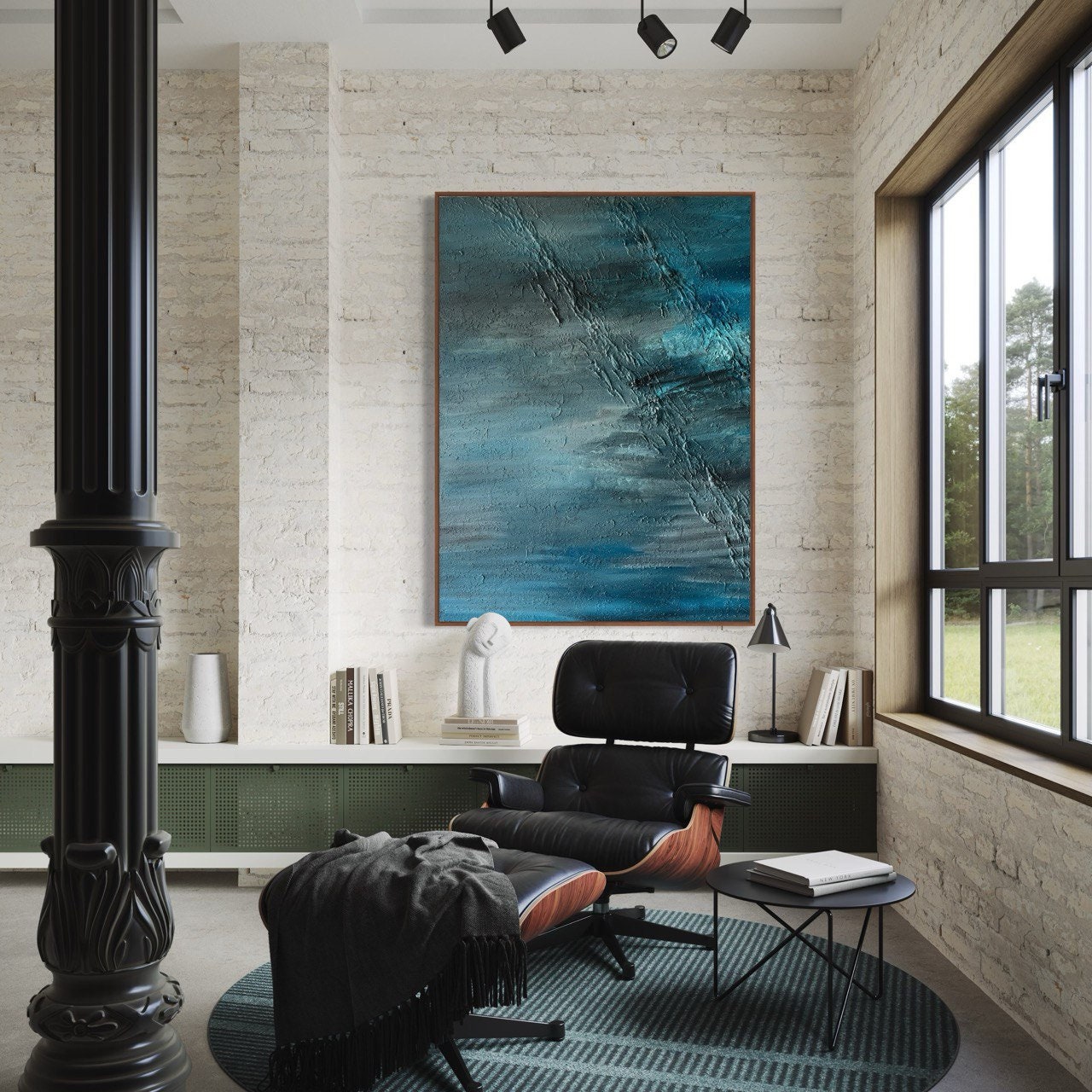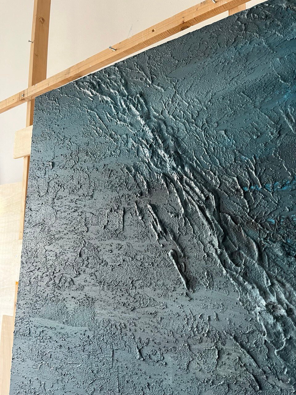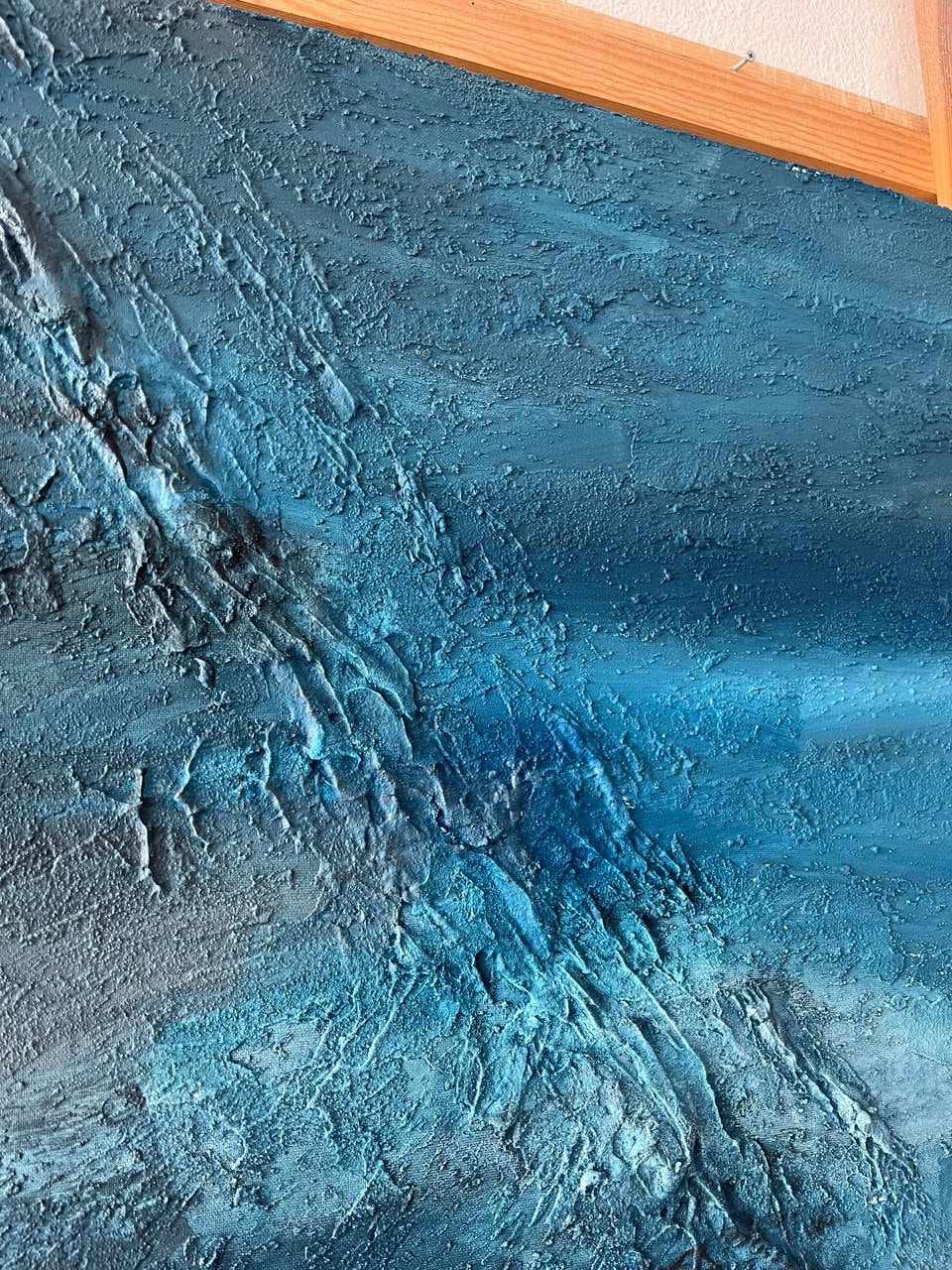 Oversized Blue Abstract Seascape Painting: 3D Texture Modern Canvas Wall Art