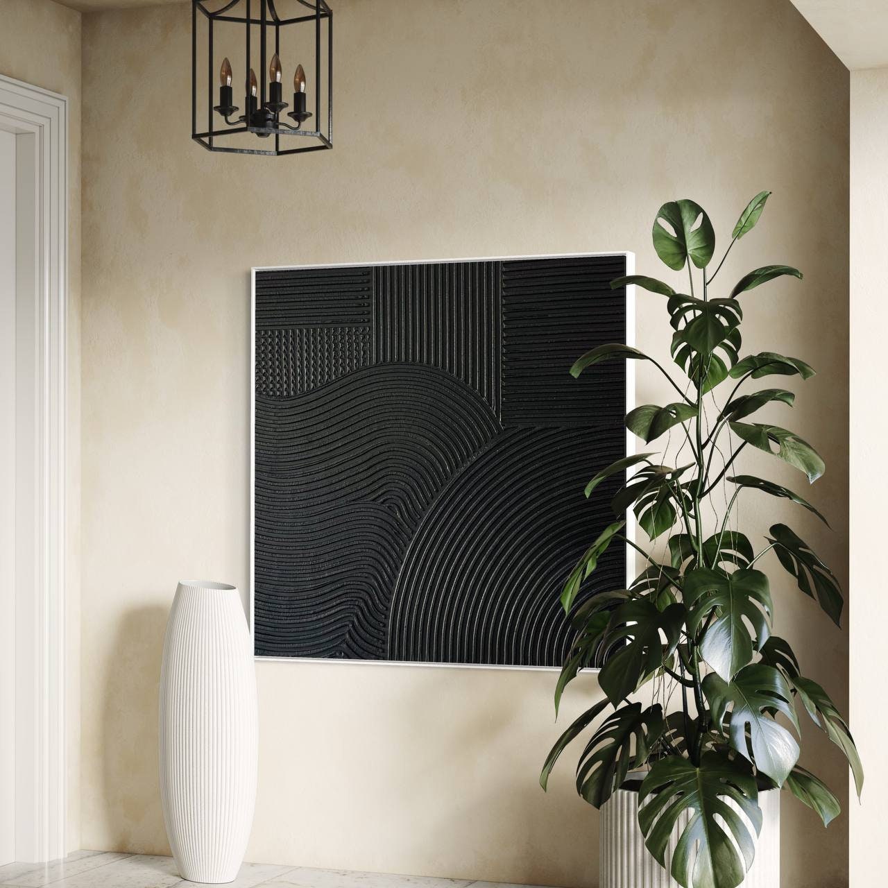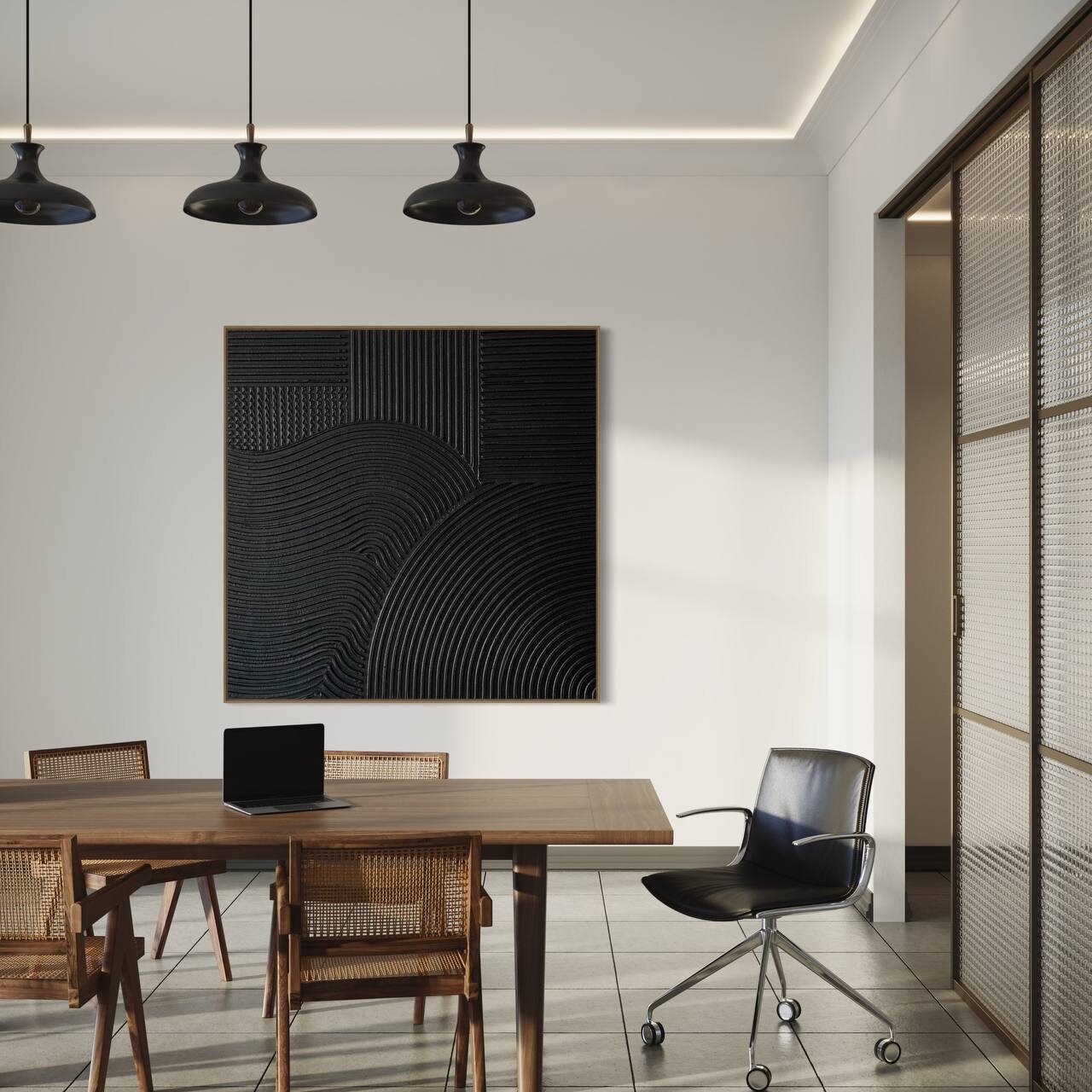 The rich matte black finish adds depth and drama, making this artwork perfect above a sofa, bed, fireplace, or as a focal point in modern and luxury interiors.