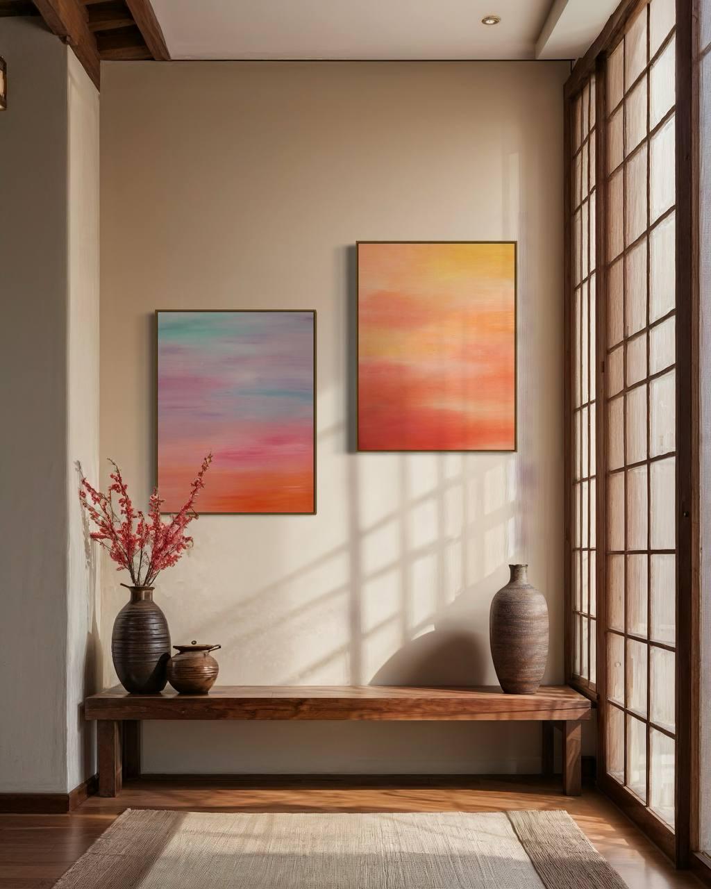 Oversize Abstract Seascape Canvas Painting Set: Sunset Wall Art