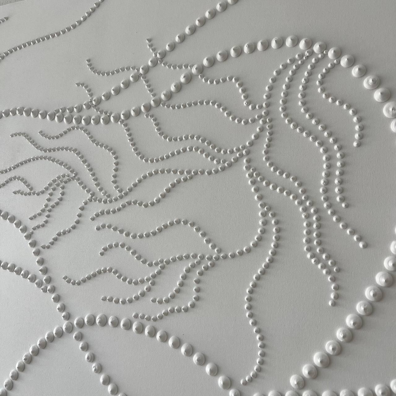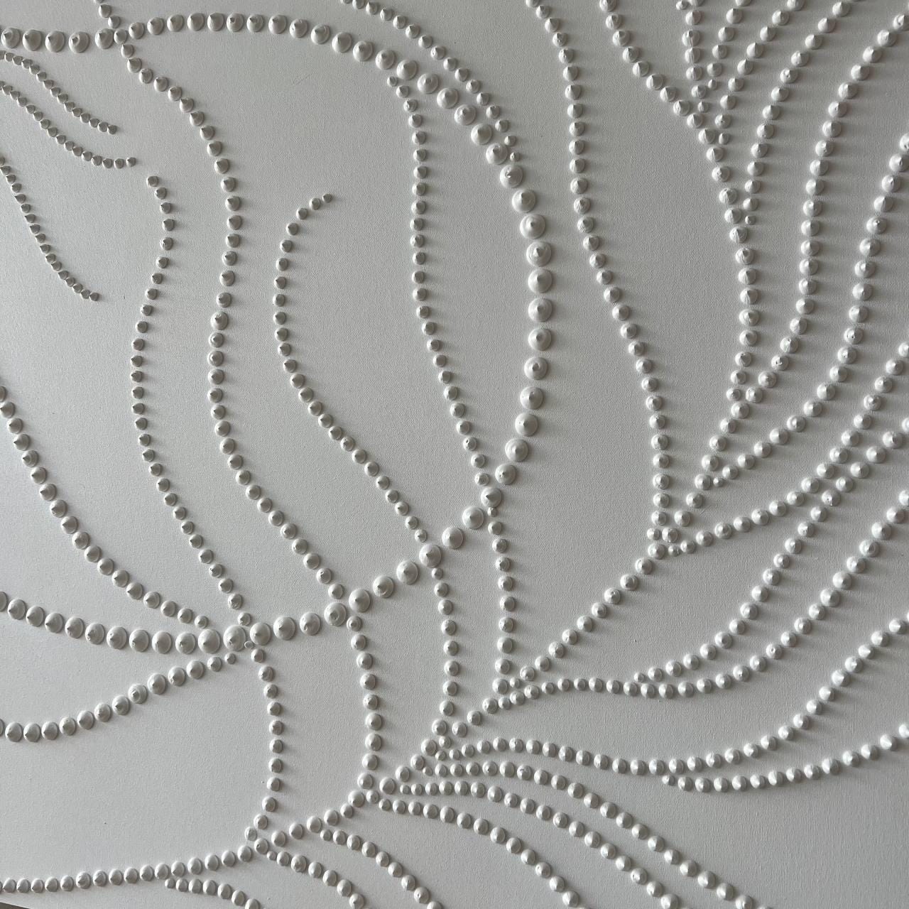 Large White 3D dots Plaster Wall Art Set: Abstract Leaves Textured Painting