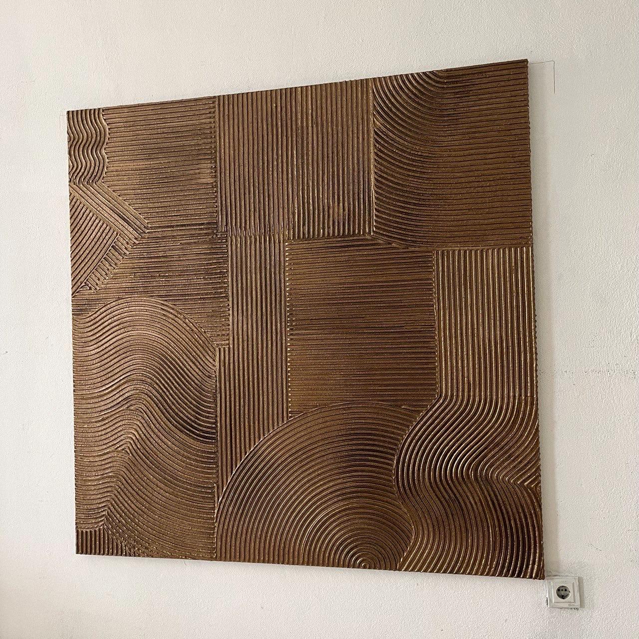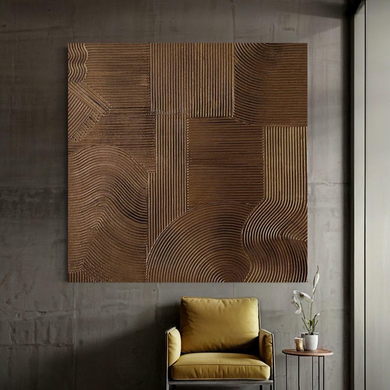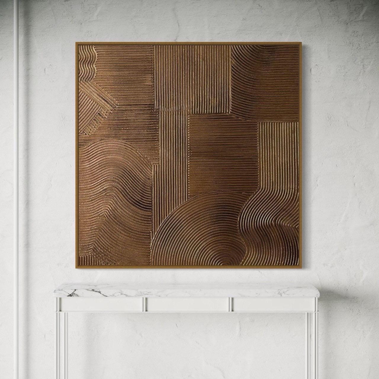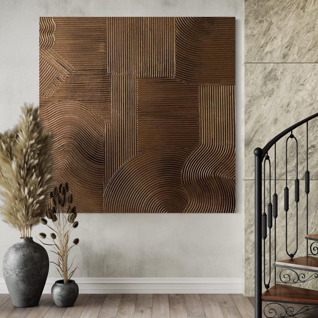 This original, handcrafted textured painting showcases deep bronze metallic tones enhanced with a refined patina finish that gives the artwork an elegant aged-metal effect. The subtle patina highlights the sculptural ridges, adding dimension, richness, and a timeless, luxurious character.