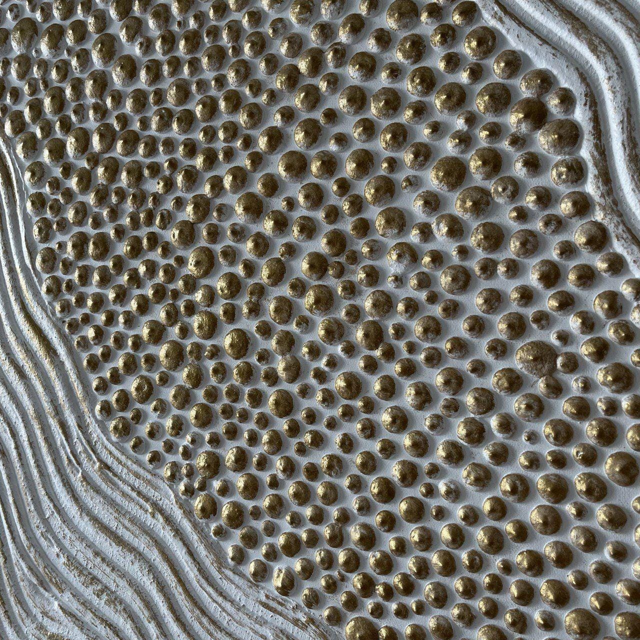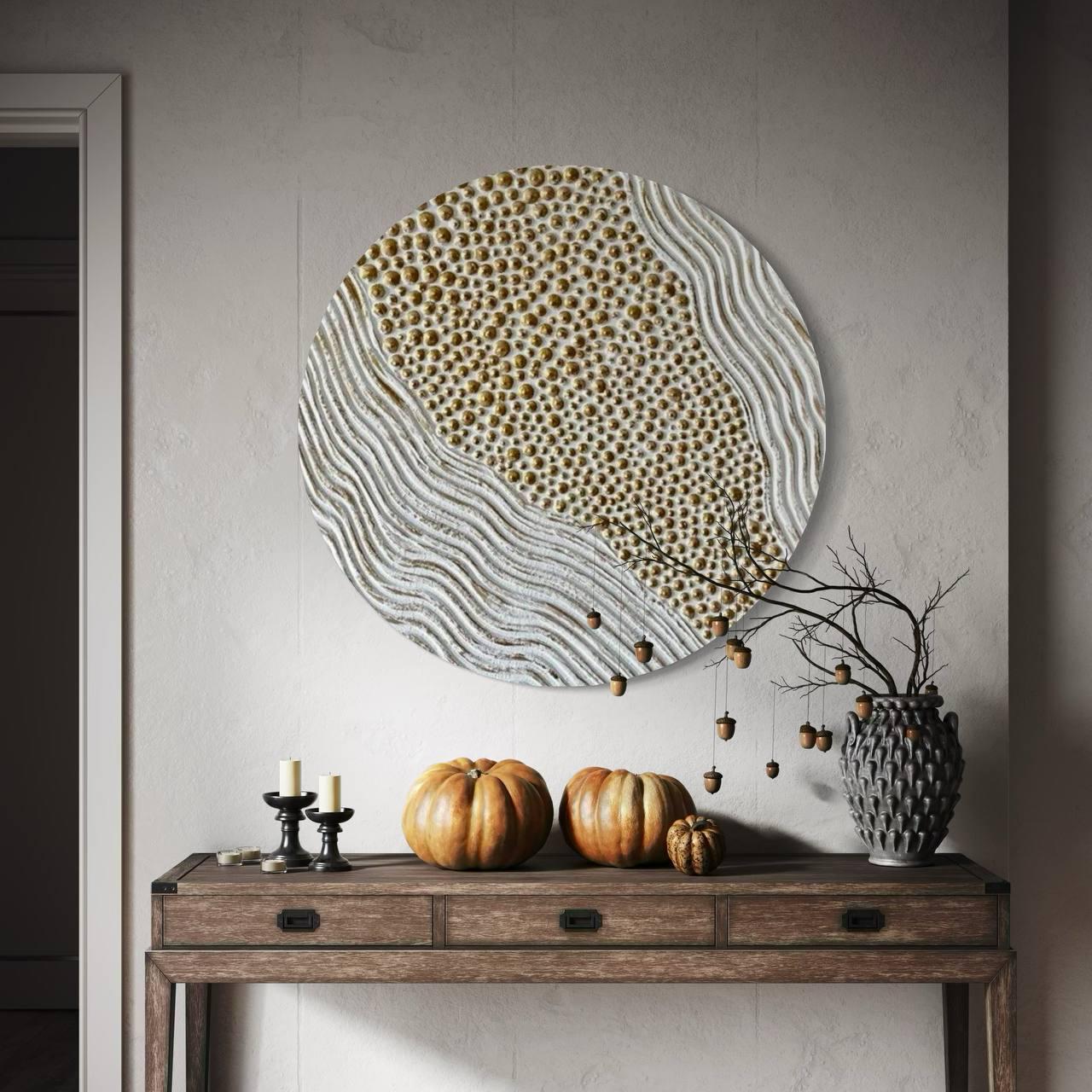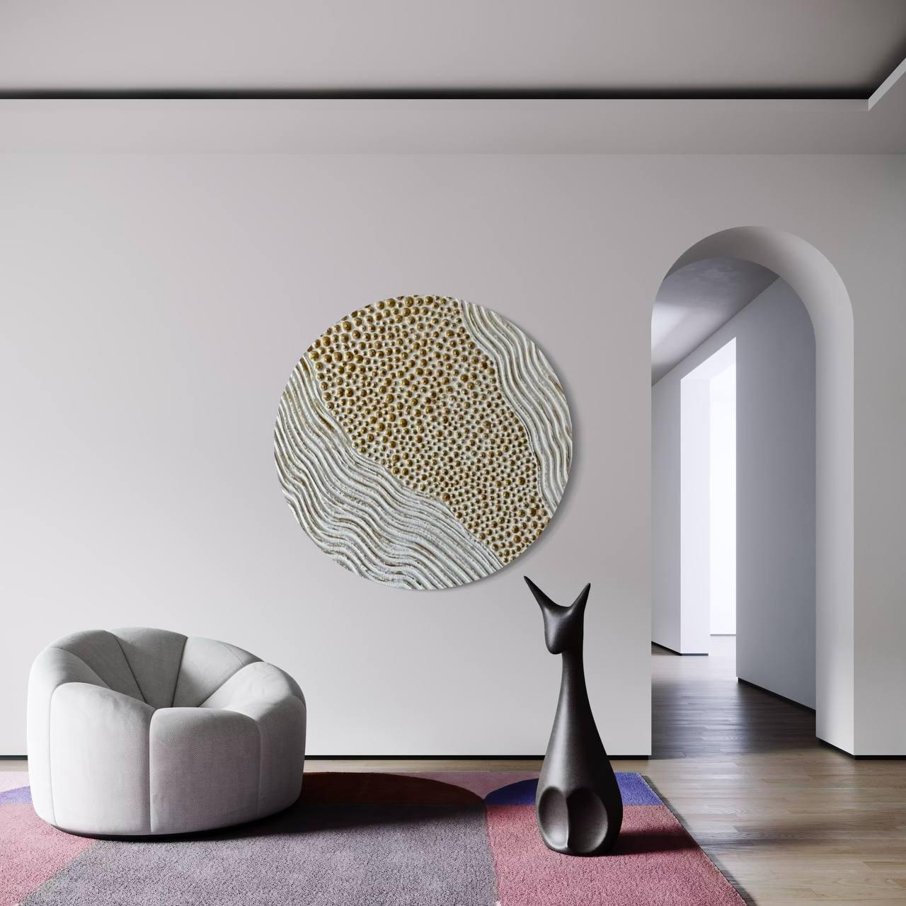 Large Round Abstract Painting White Bronze Textured Wall Art Decor 3D Dot Modern Canvas