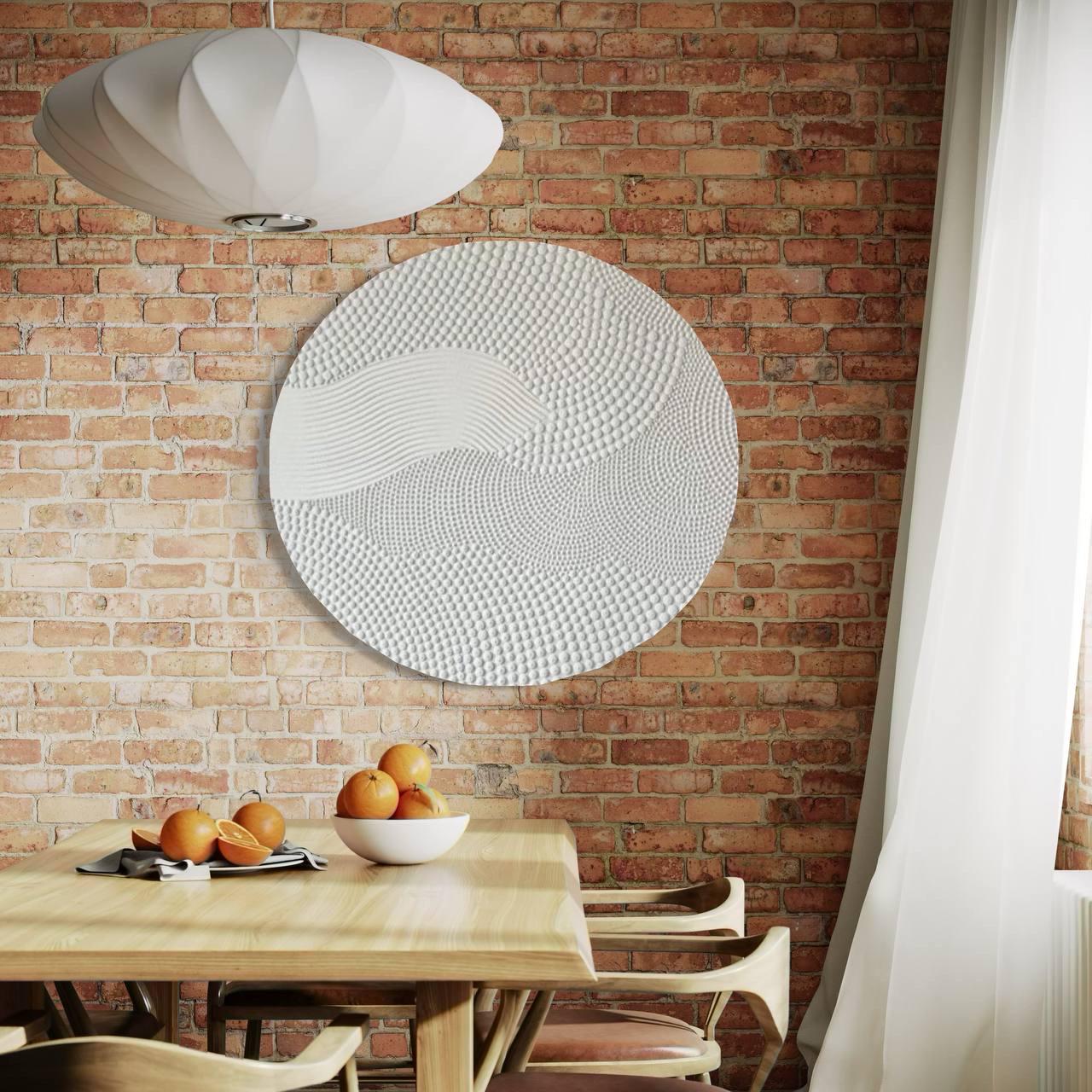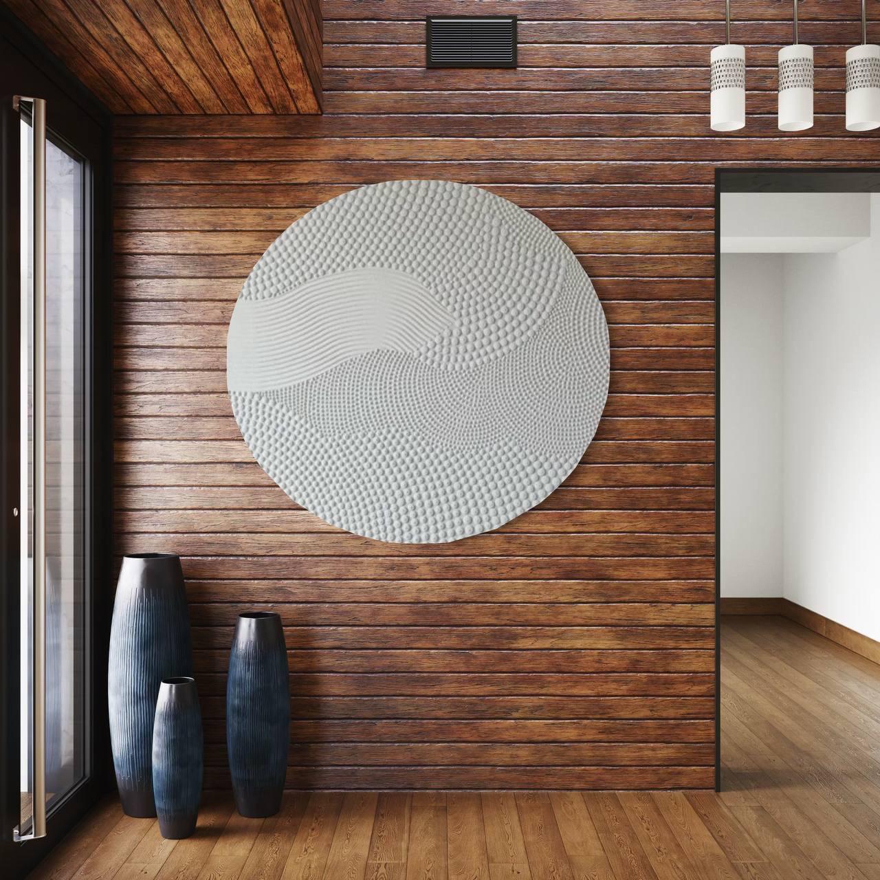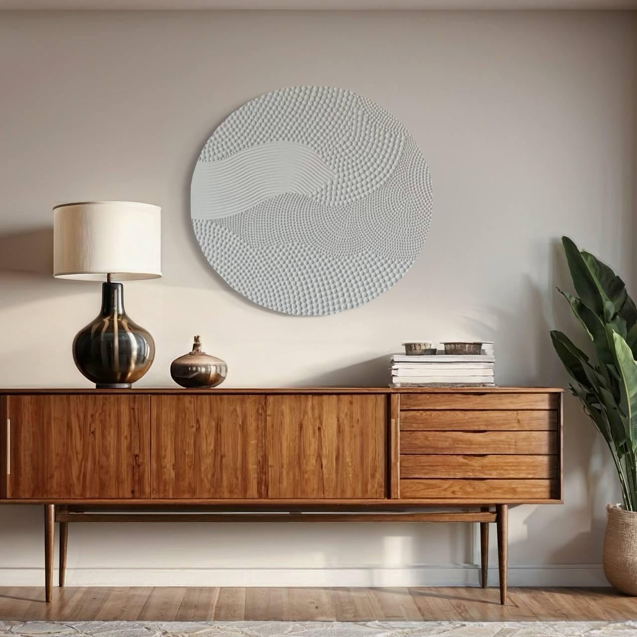 This round textured abstract wall art is a handcrafted statement piece designed to bring calm, balance, and modern elegance into your space.