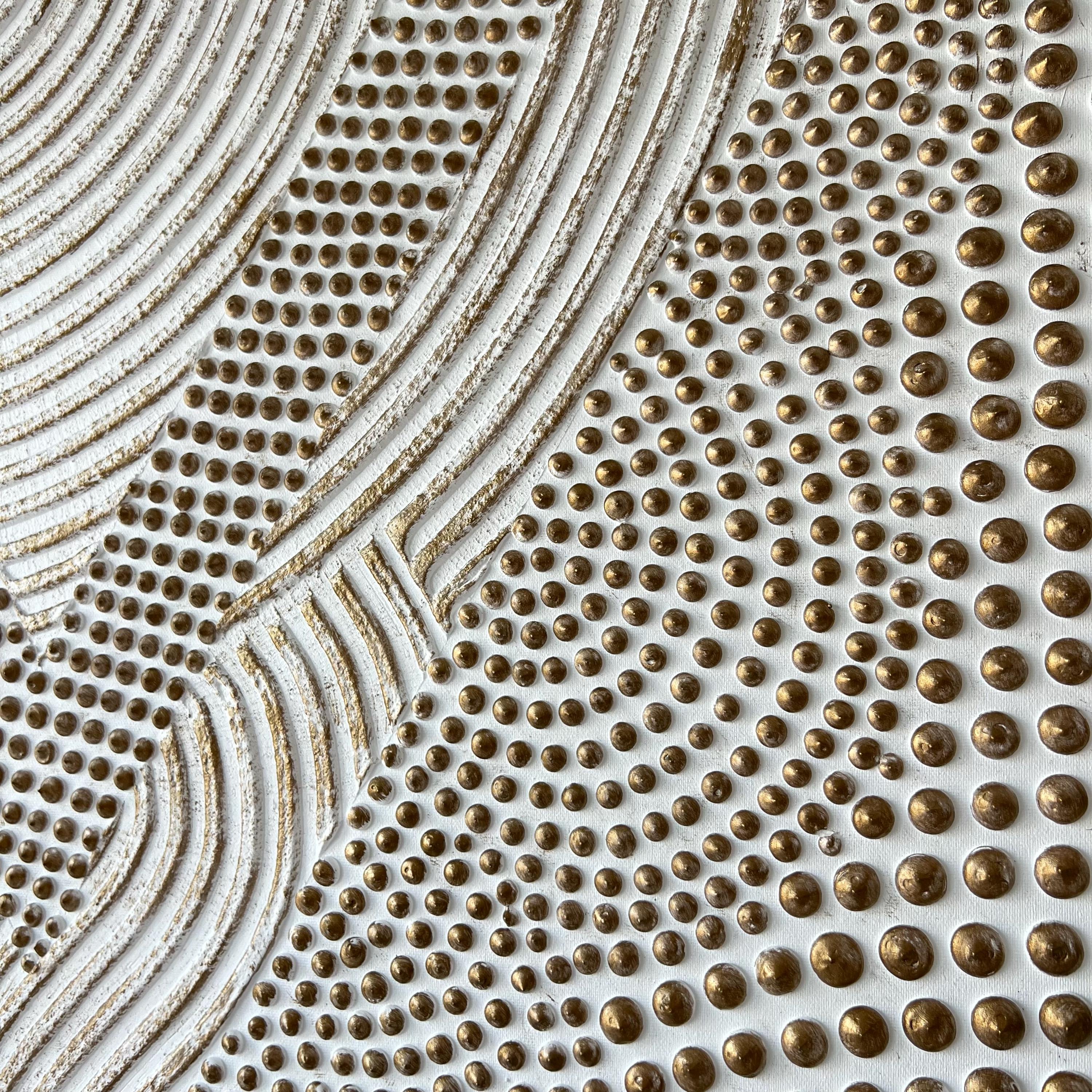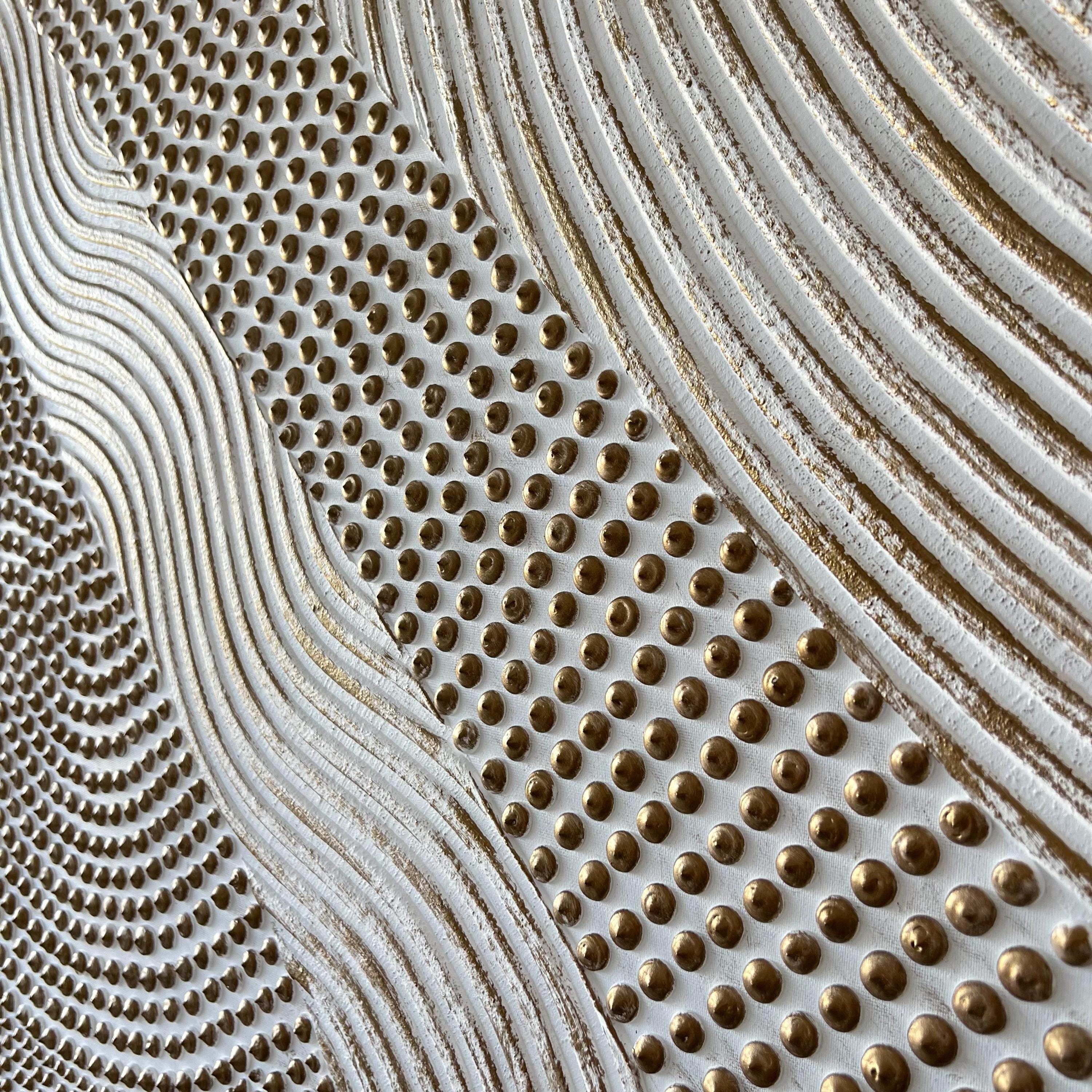 This circular abstract wall art is a handmade sculptural piece created using layered plaster techniques. The raised dot texture and flowing relief lines form a bold 3D surface that brings movement and depth to modern interiors.