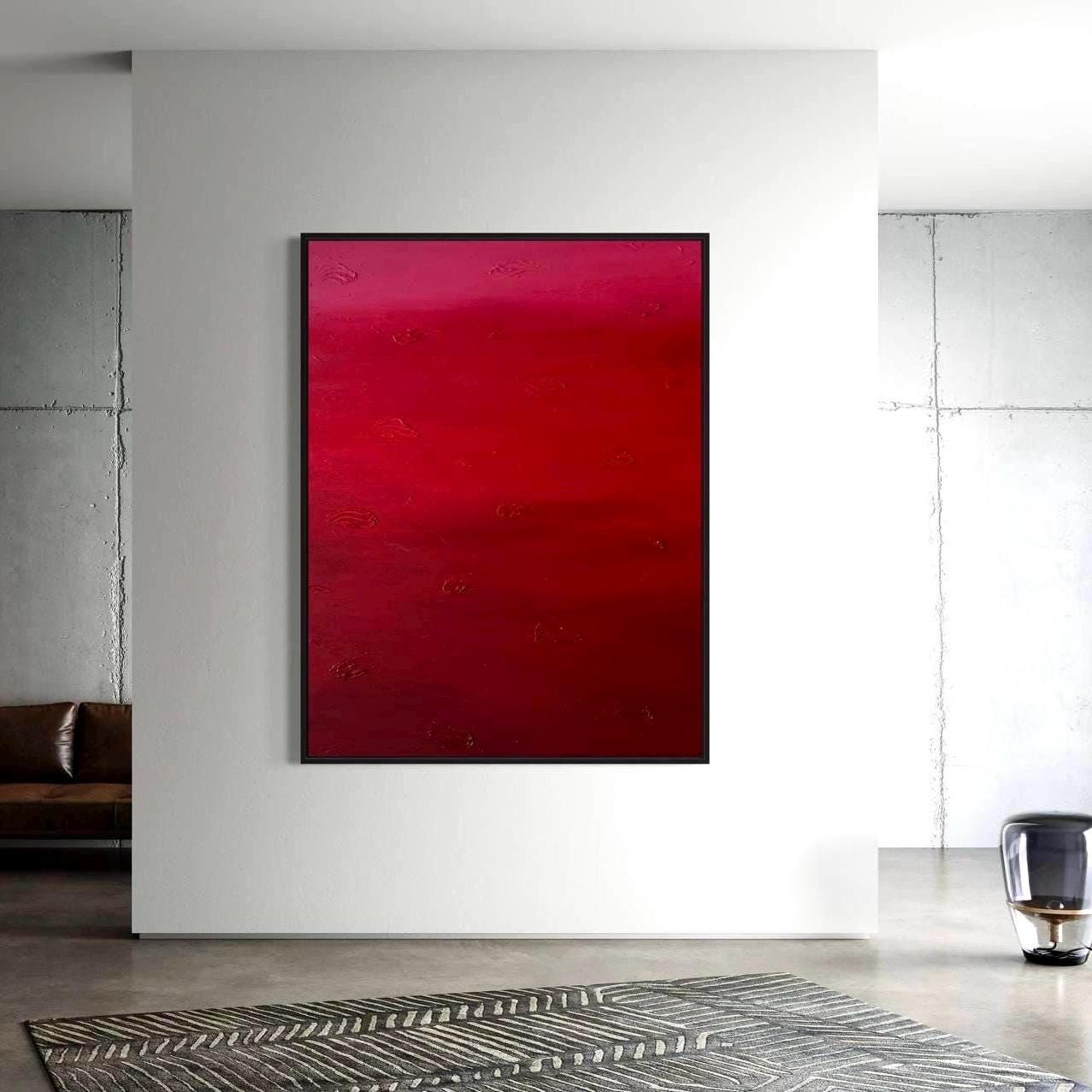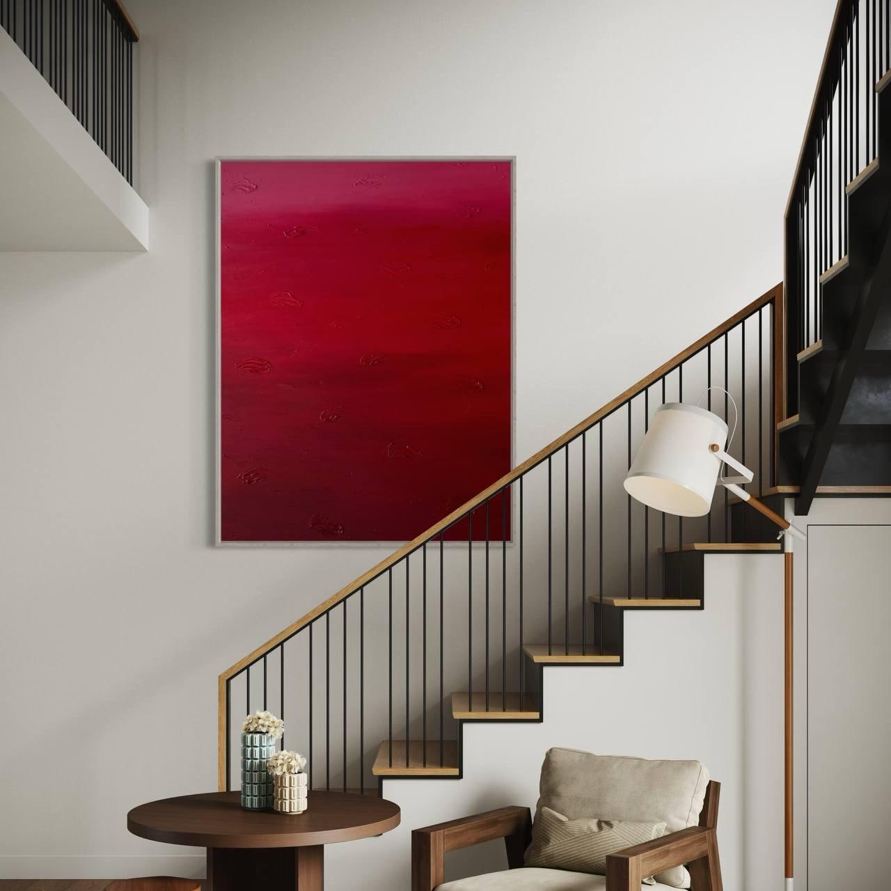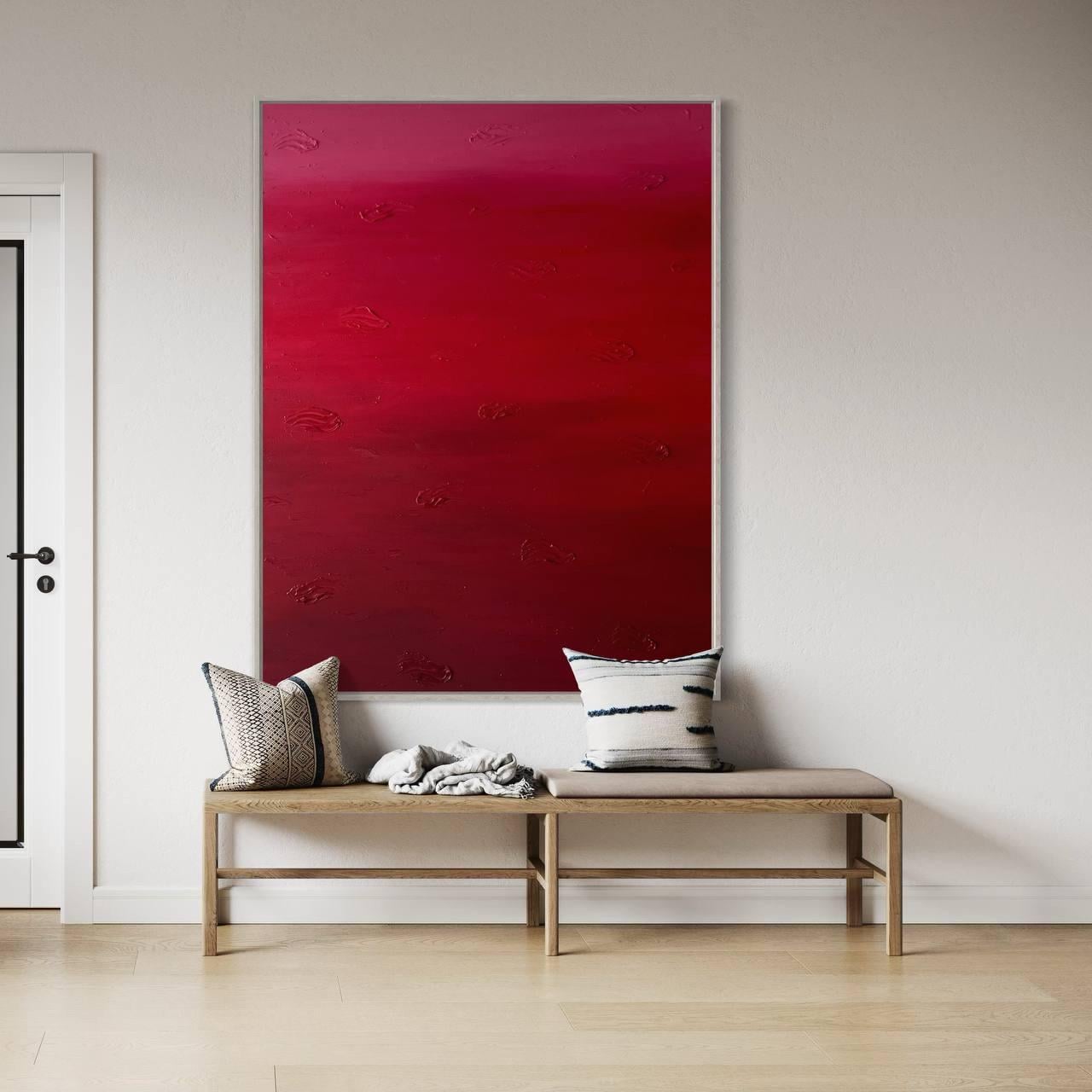 This painting explores depth, emotion, and minimalism through rich red tones and delicate texture. The surface feels alive and tactile, making the artwork feel both modern and timeless.