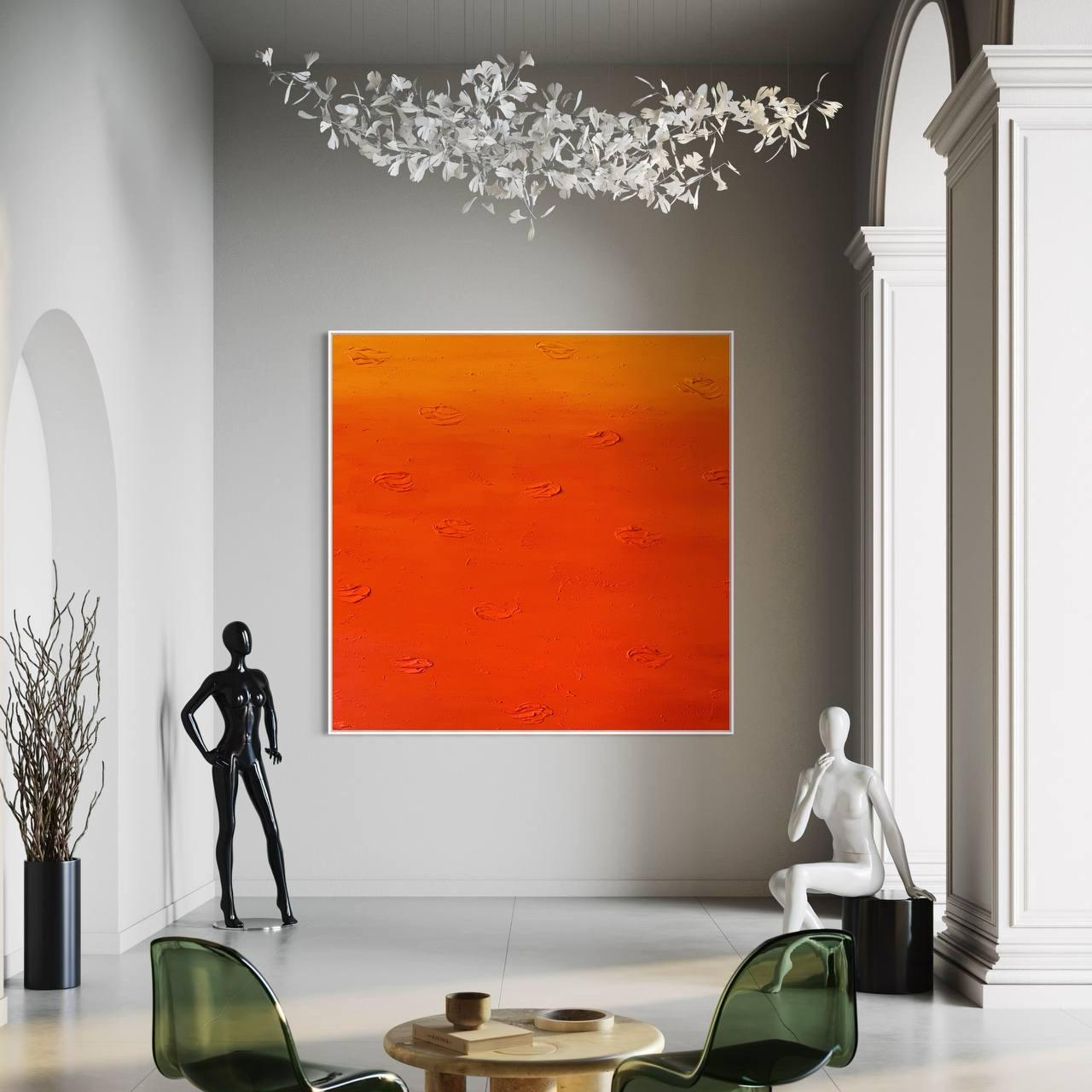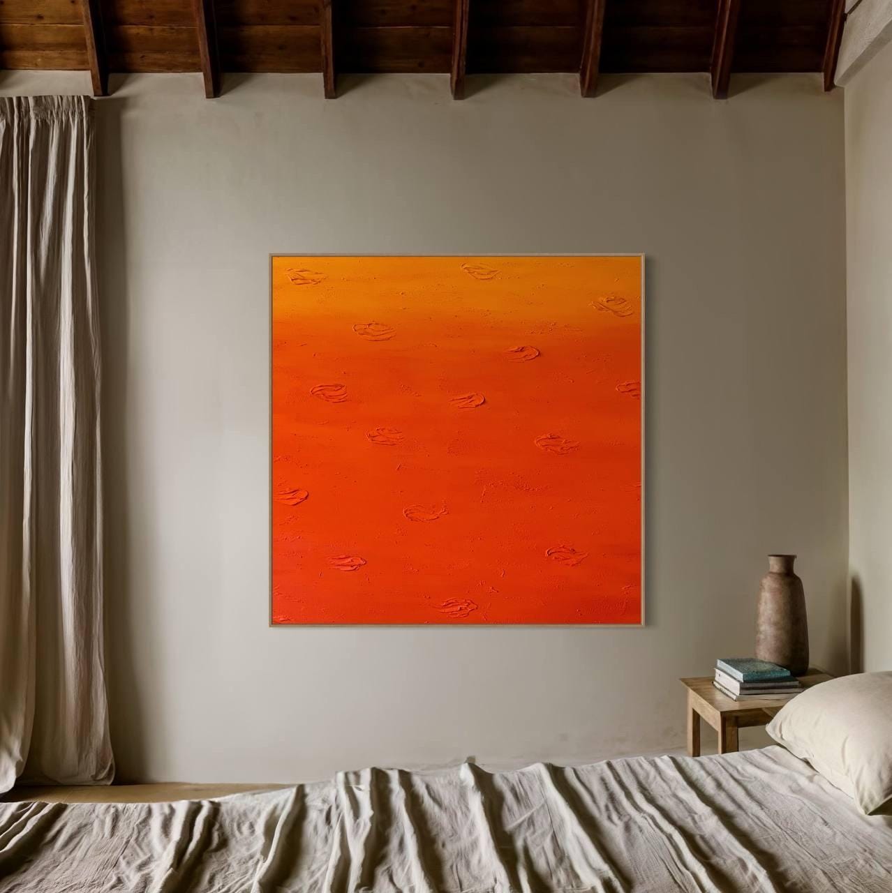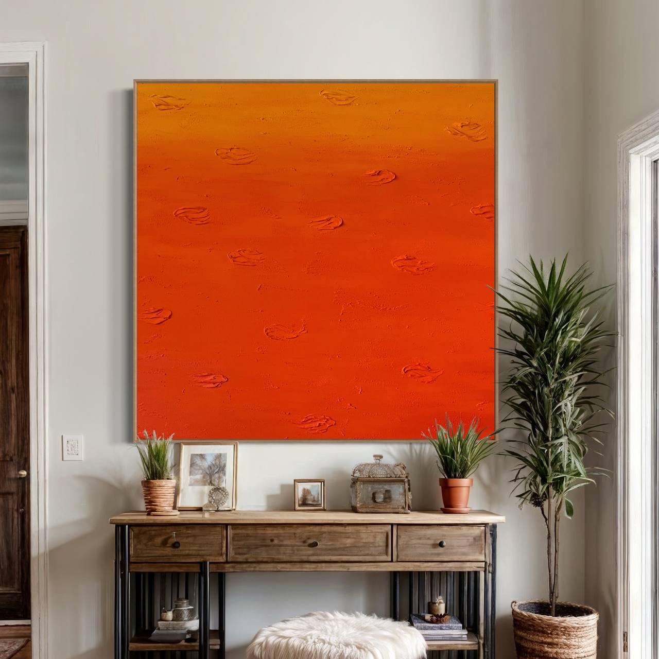 Large Orange Abstract Painting: Modern Texture Canvas Wall Art