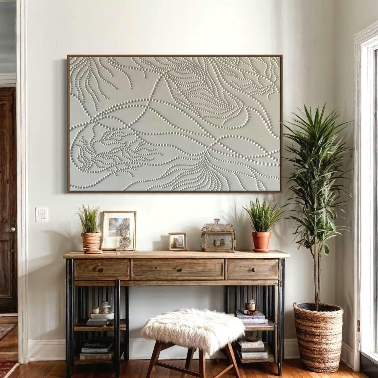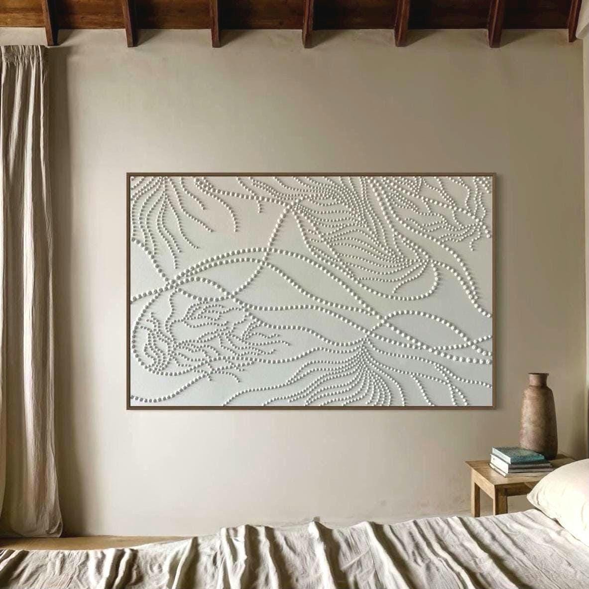Extra Large White Textured Wall Art 3D Dot Plaster Painting Abstract Boho Handmade Canvas
