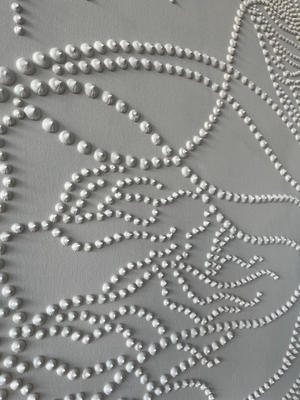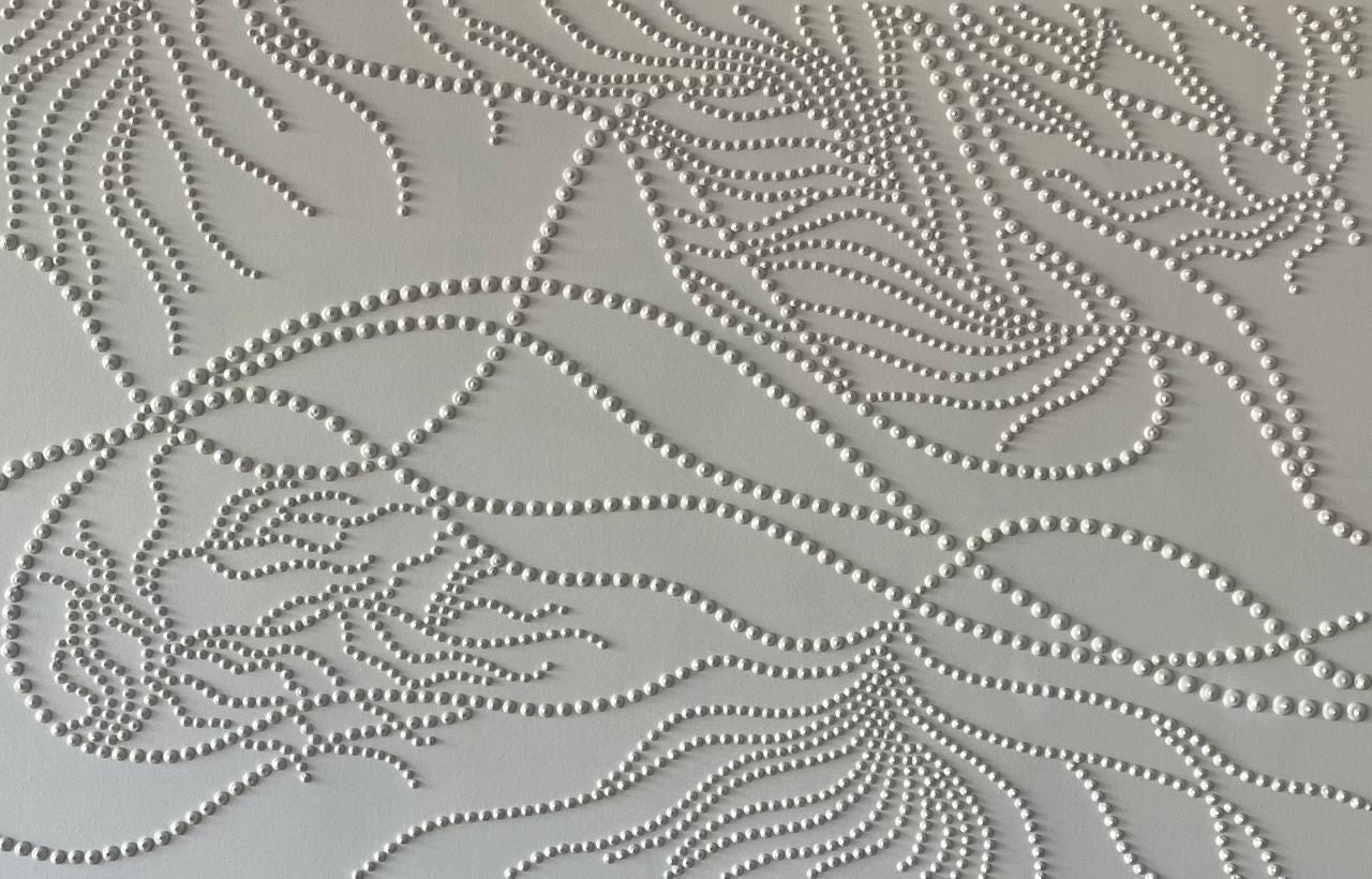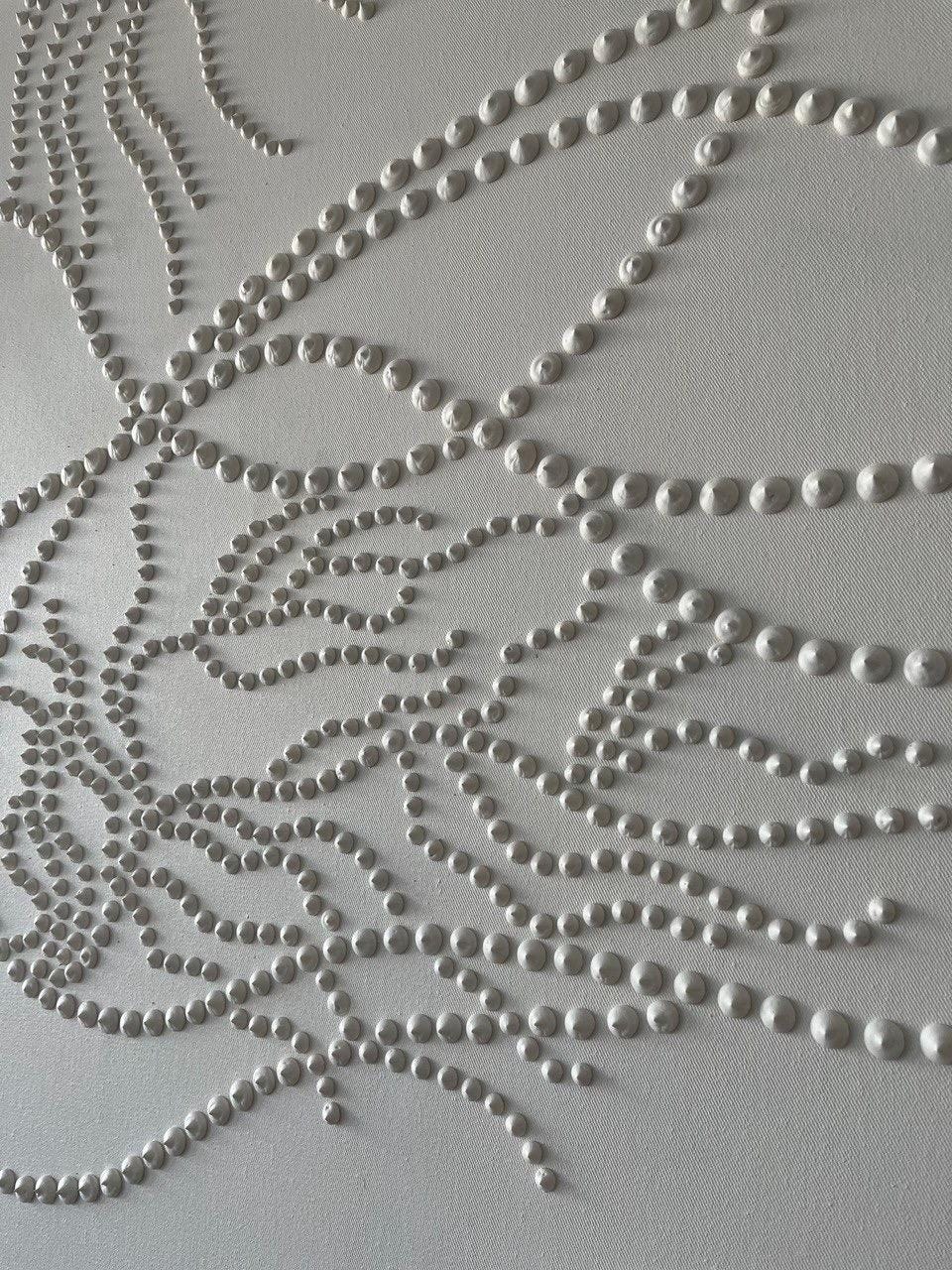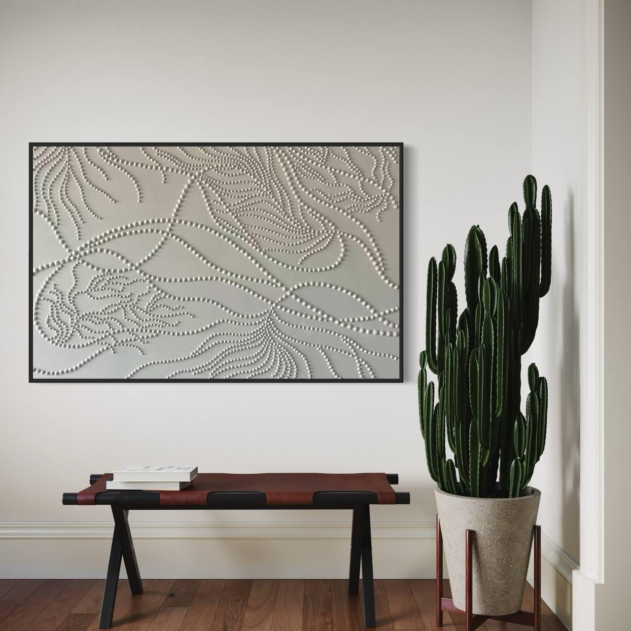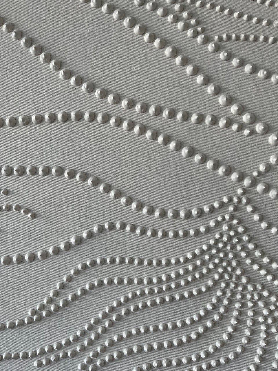 The surface is created with raised 3D dot texture and flowing relief lines, giving the artwork depth, movement, and a refined modern character.