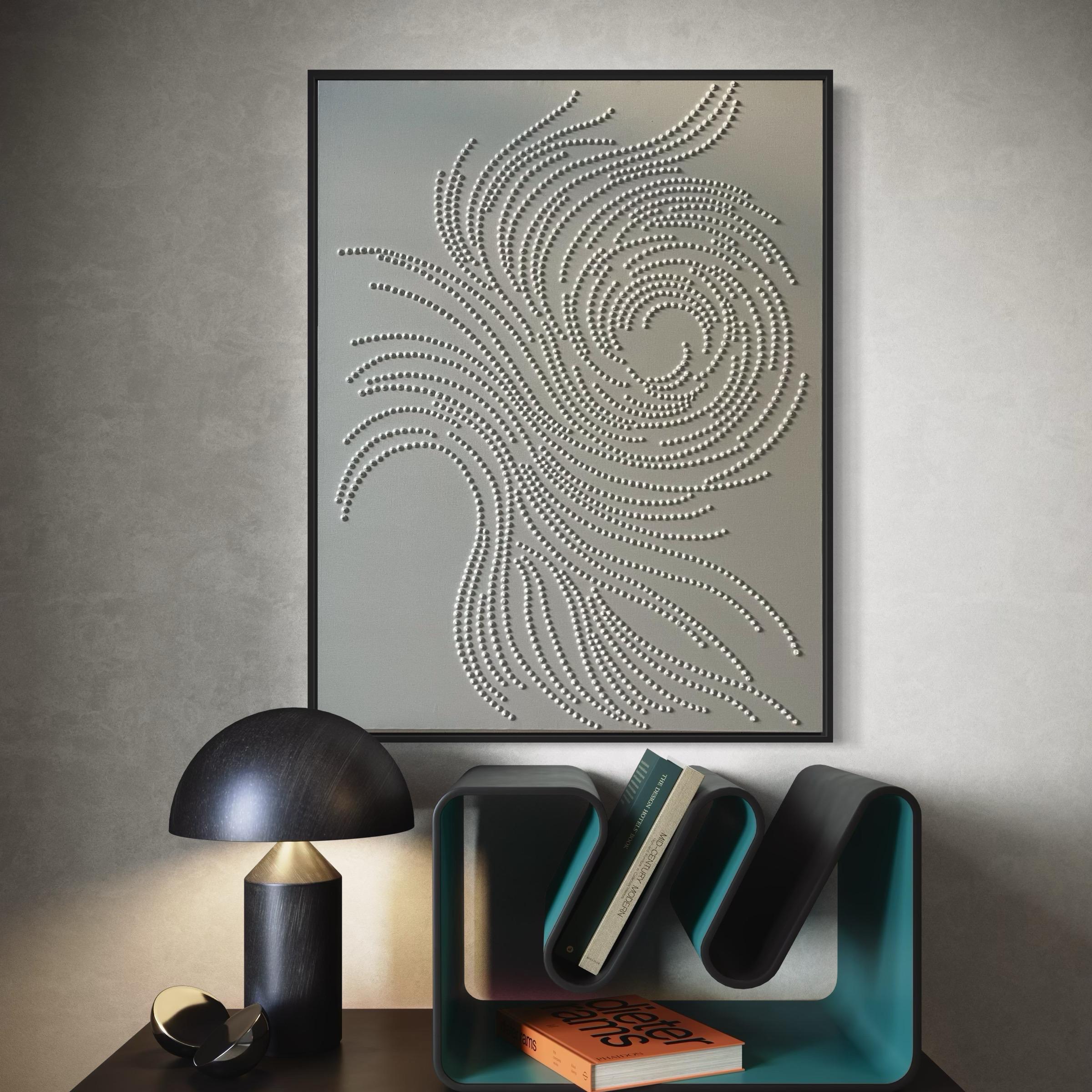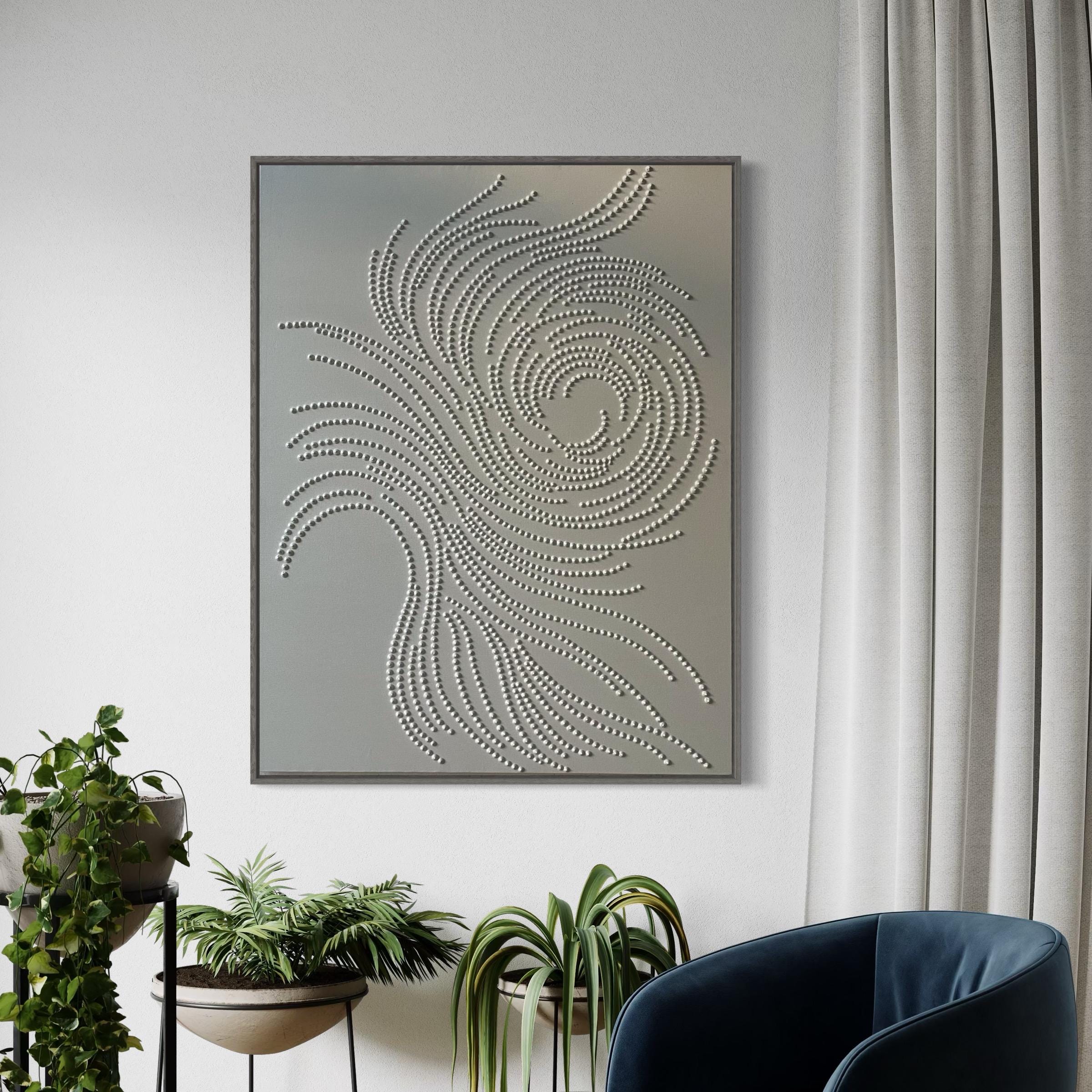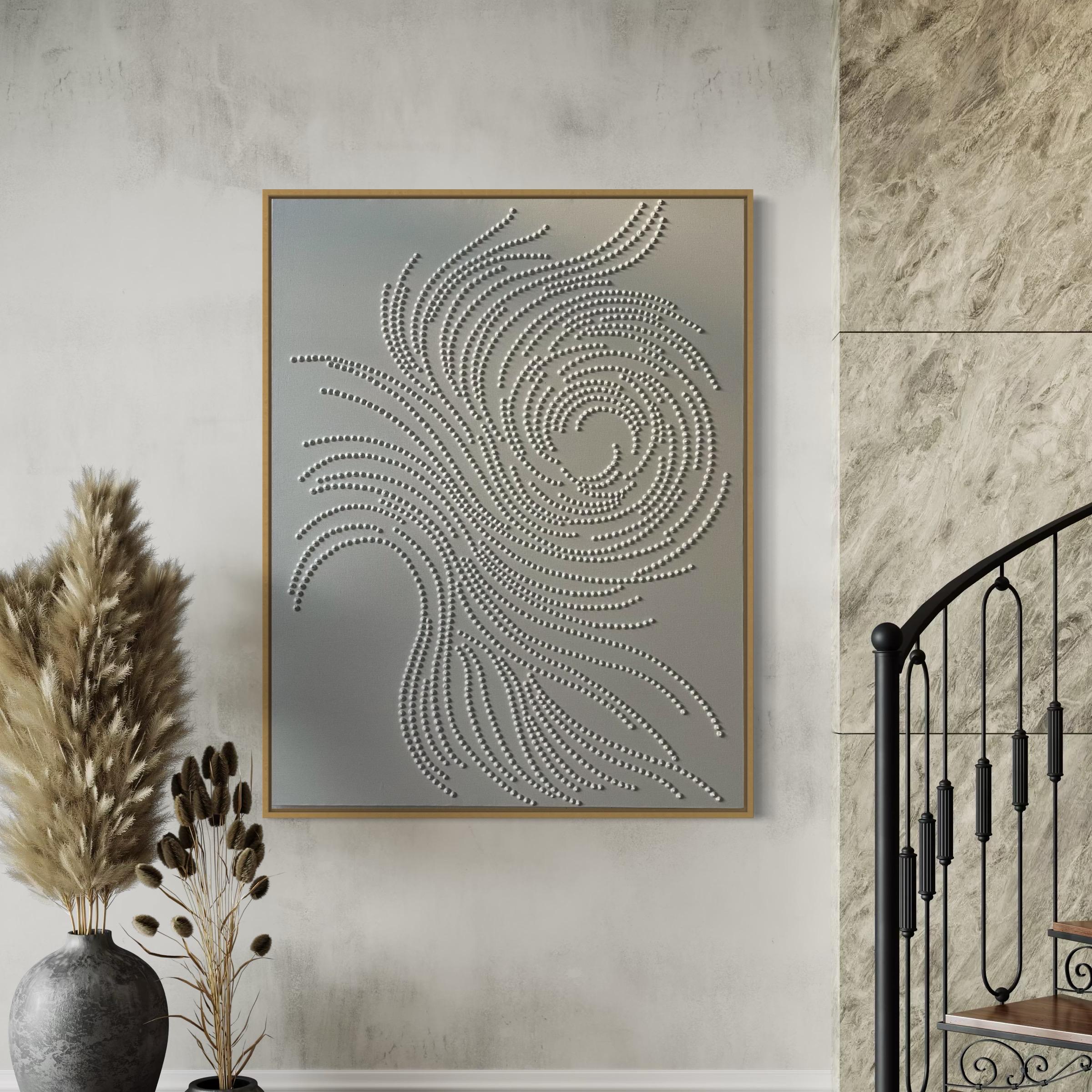 Transform your space with this modern 3D textured wall art, handcrafted with hundreds of raised dots forming elegant, flowing lines. This minimalist abstract painting brings a sense of movement, calm, and organic harmony, making it a perfect statement piece for any interior style — from modern decor and Scandinavian minimalism to neutral home design and contemporary luxury spaces.