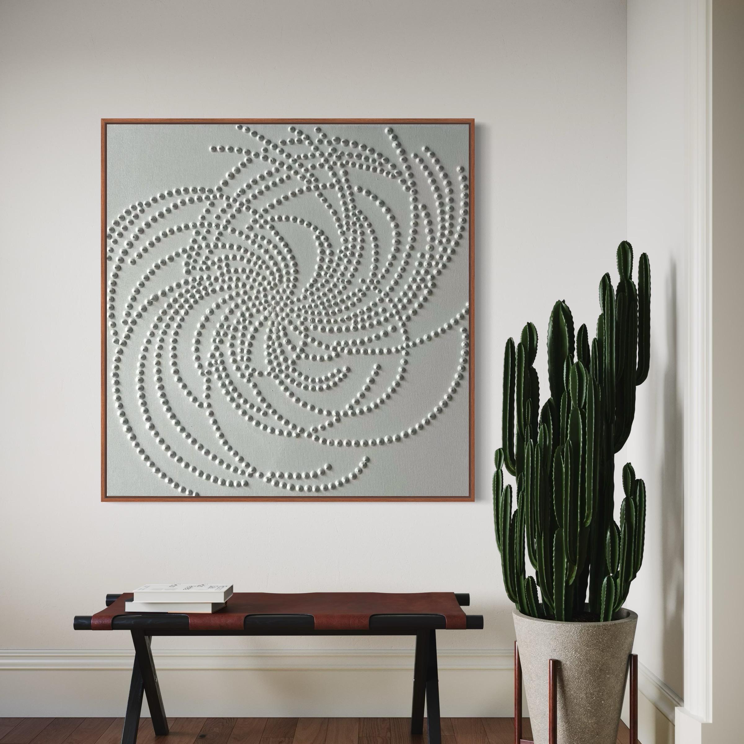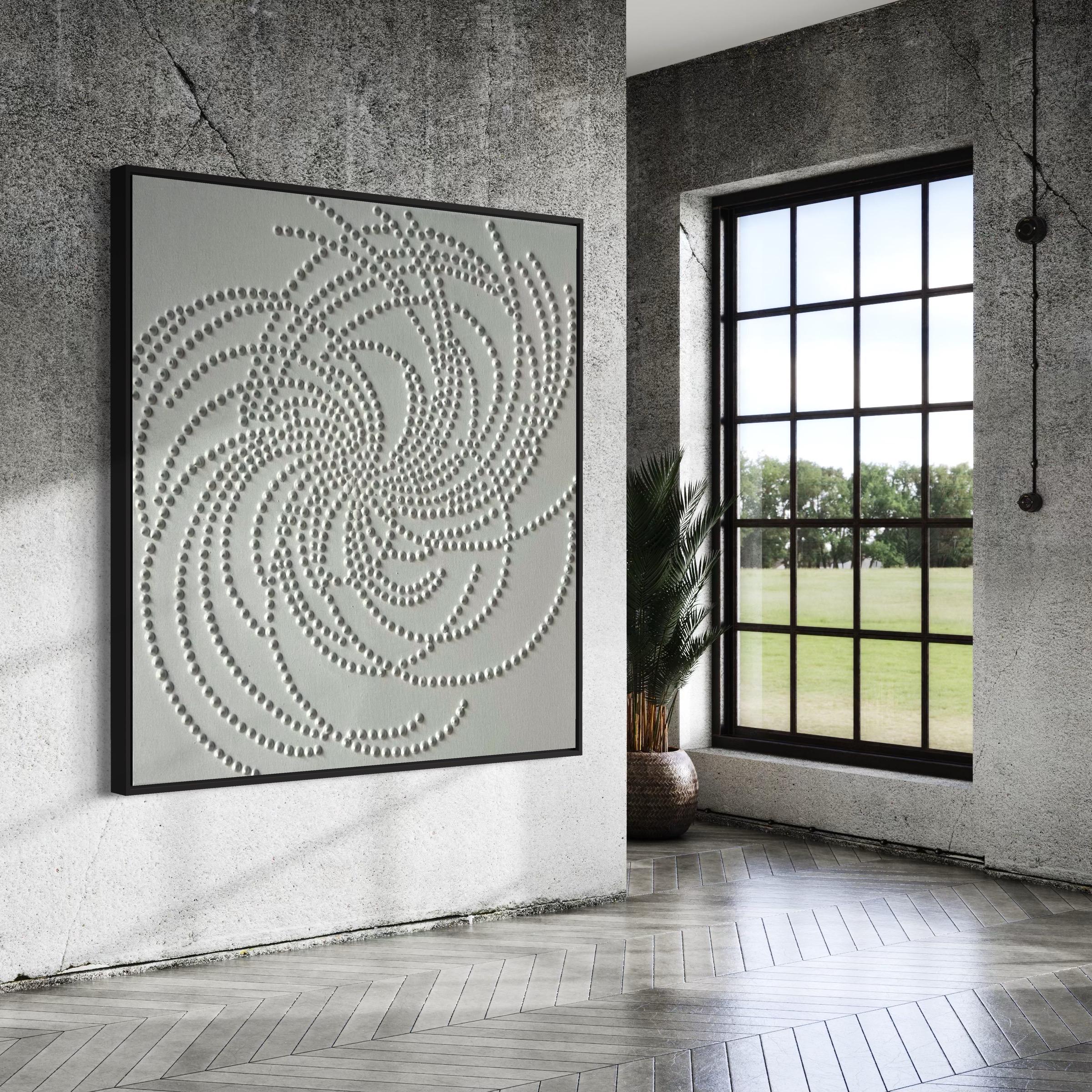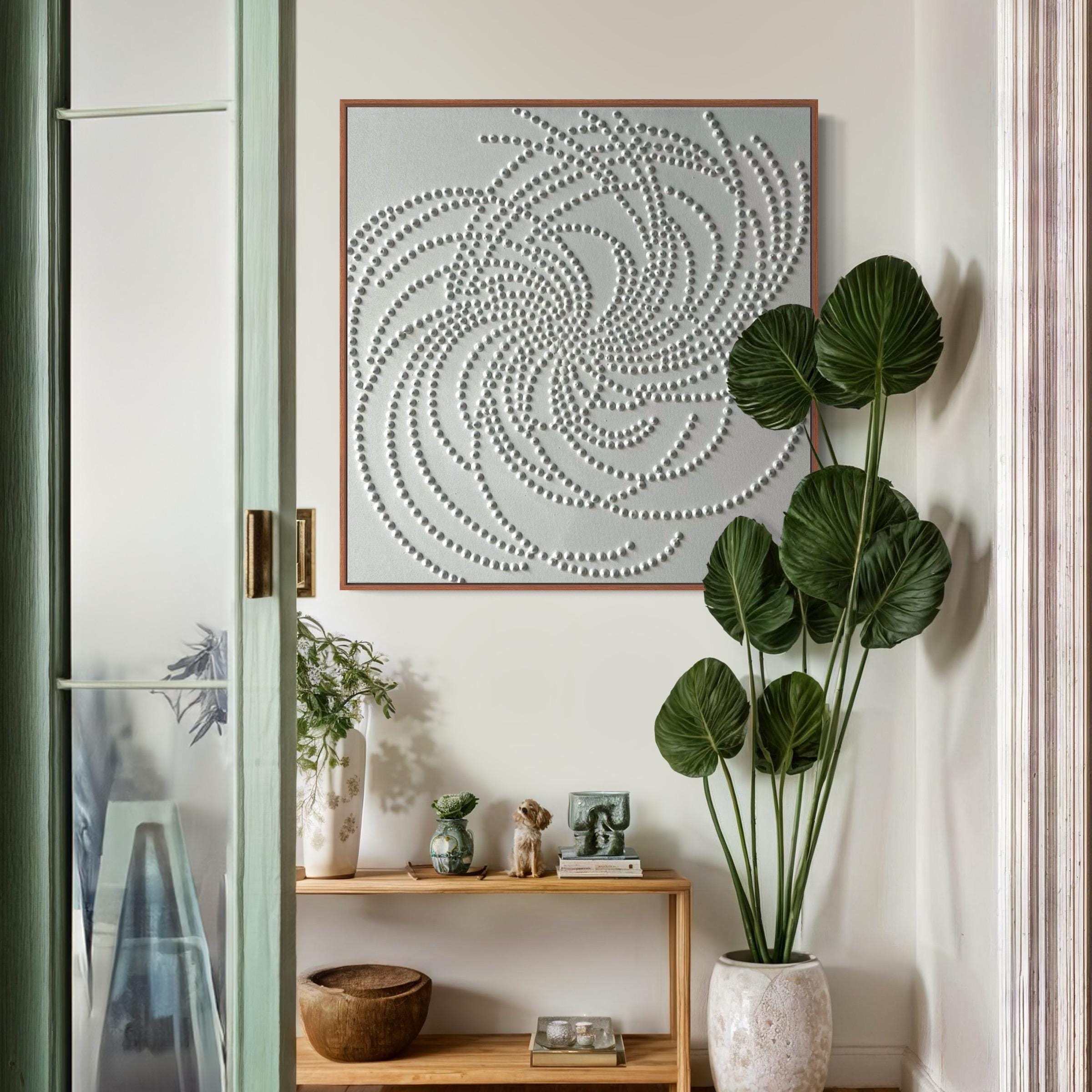 This white 3D textured wall art is a handmade minimalist abstract painting created to bring calm, balance, and modern elegance into your interior. The artwork features sculptural raised dots and soft organic relief, creating a subtle three-dimensional effect that casts beautiful natural shadows depending on the light.