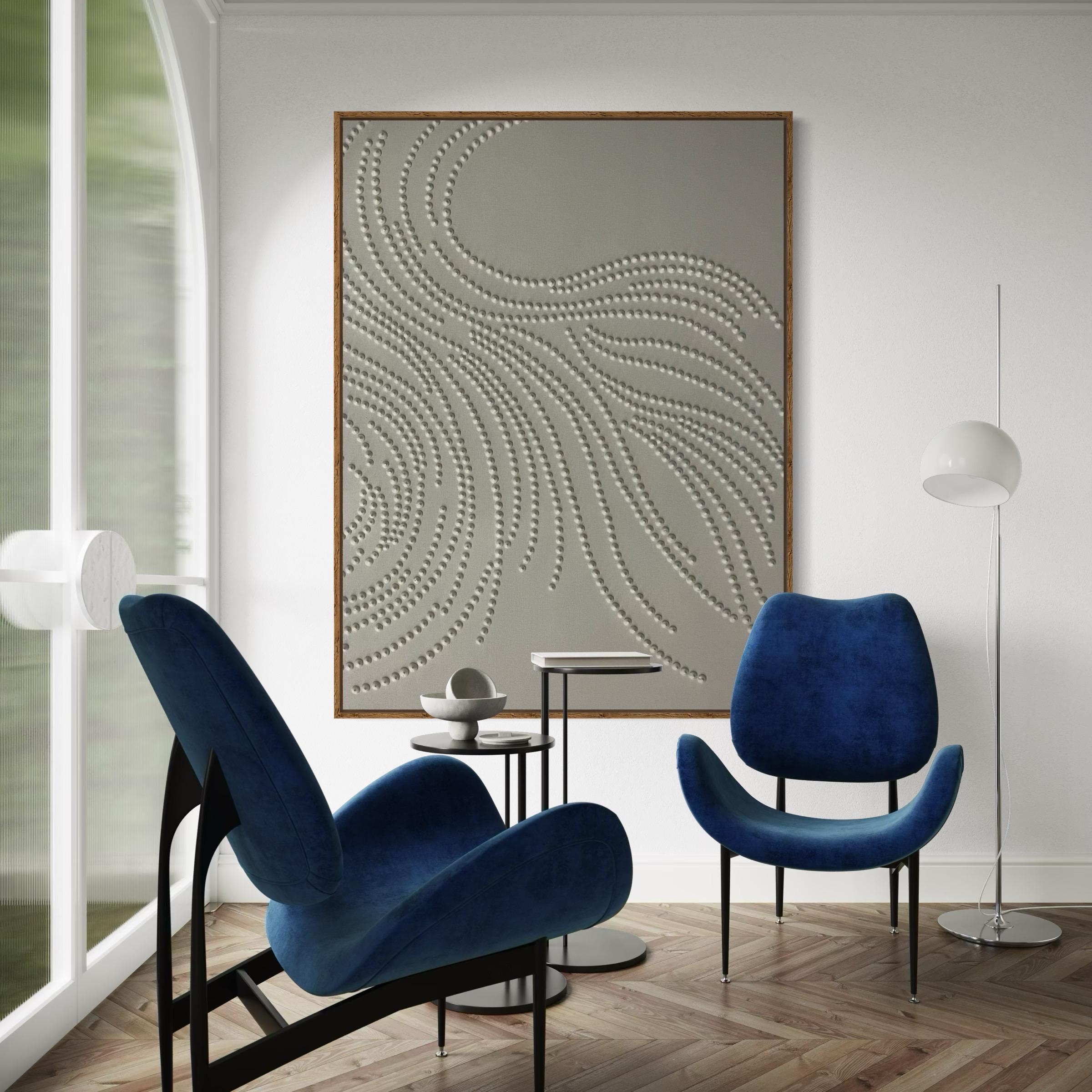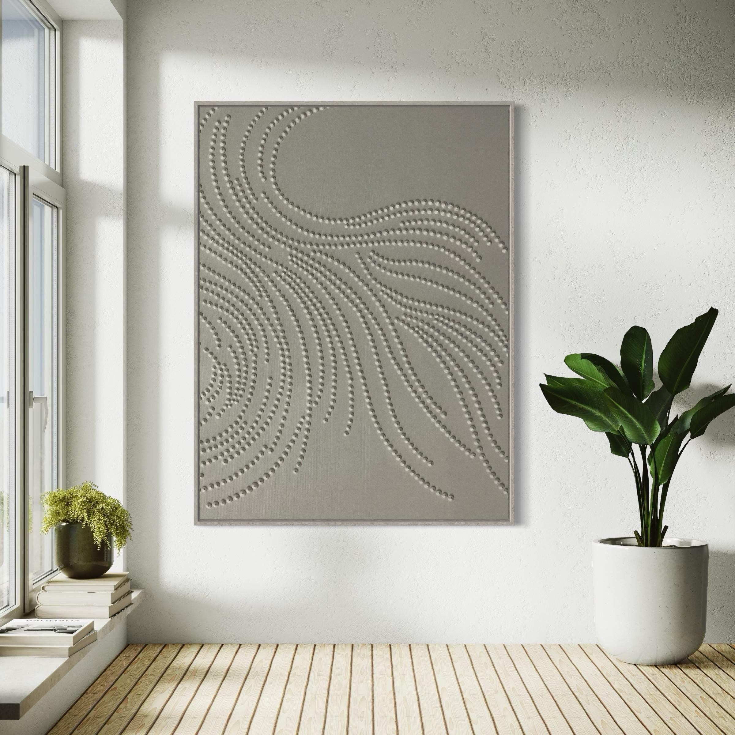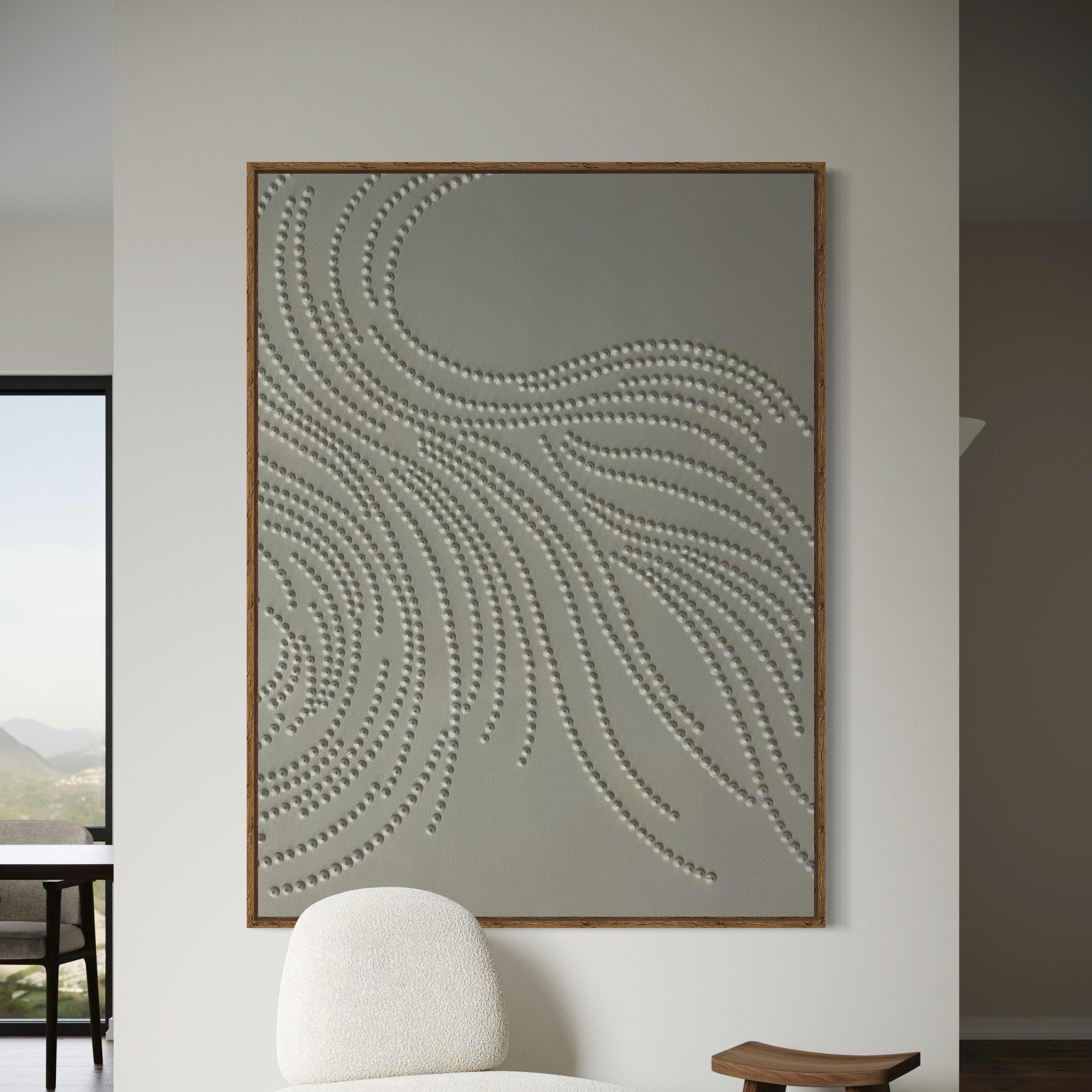 Transform your space with this modern 3D textured wall art, handcrafted with hundreds of raised dots forming elegant, flowing lines. This minimalist abstract painting brings a sense of movement, calm, and organic harmony, making it a perfect statement piece for any interior style — from modern decor and Scandinavian minimalism to neutral home design and contemporary luxury spaces.