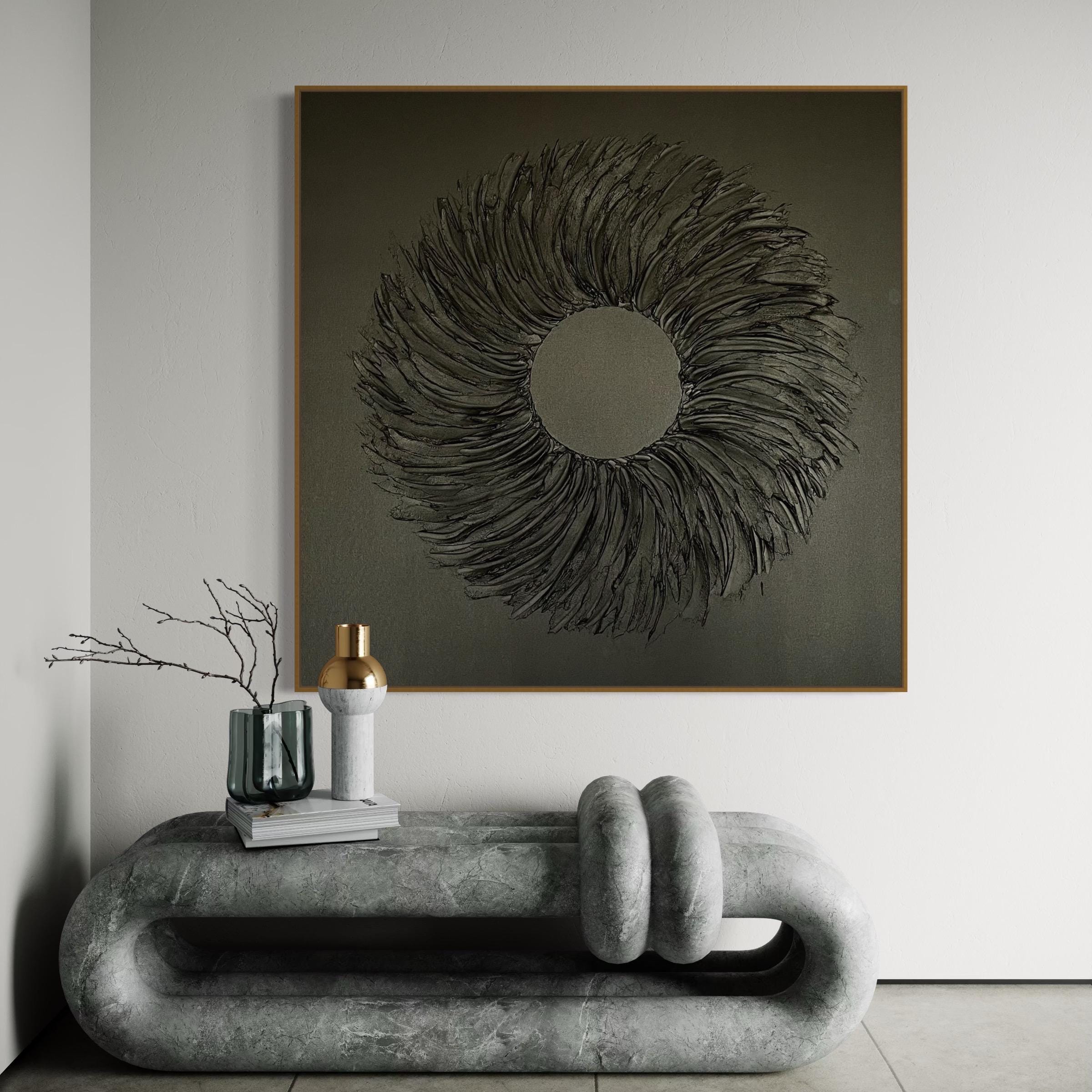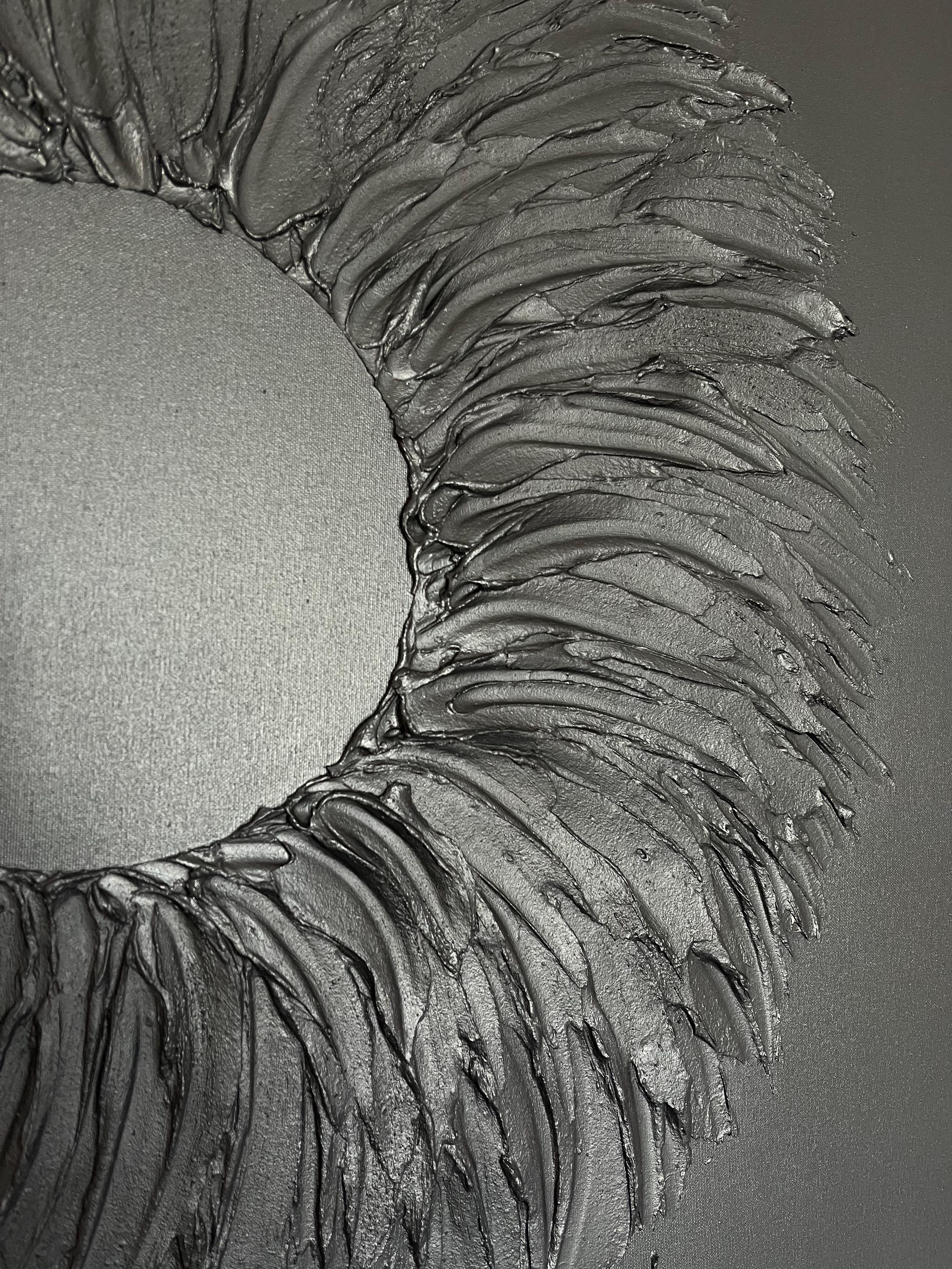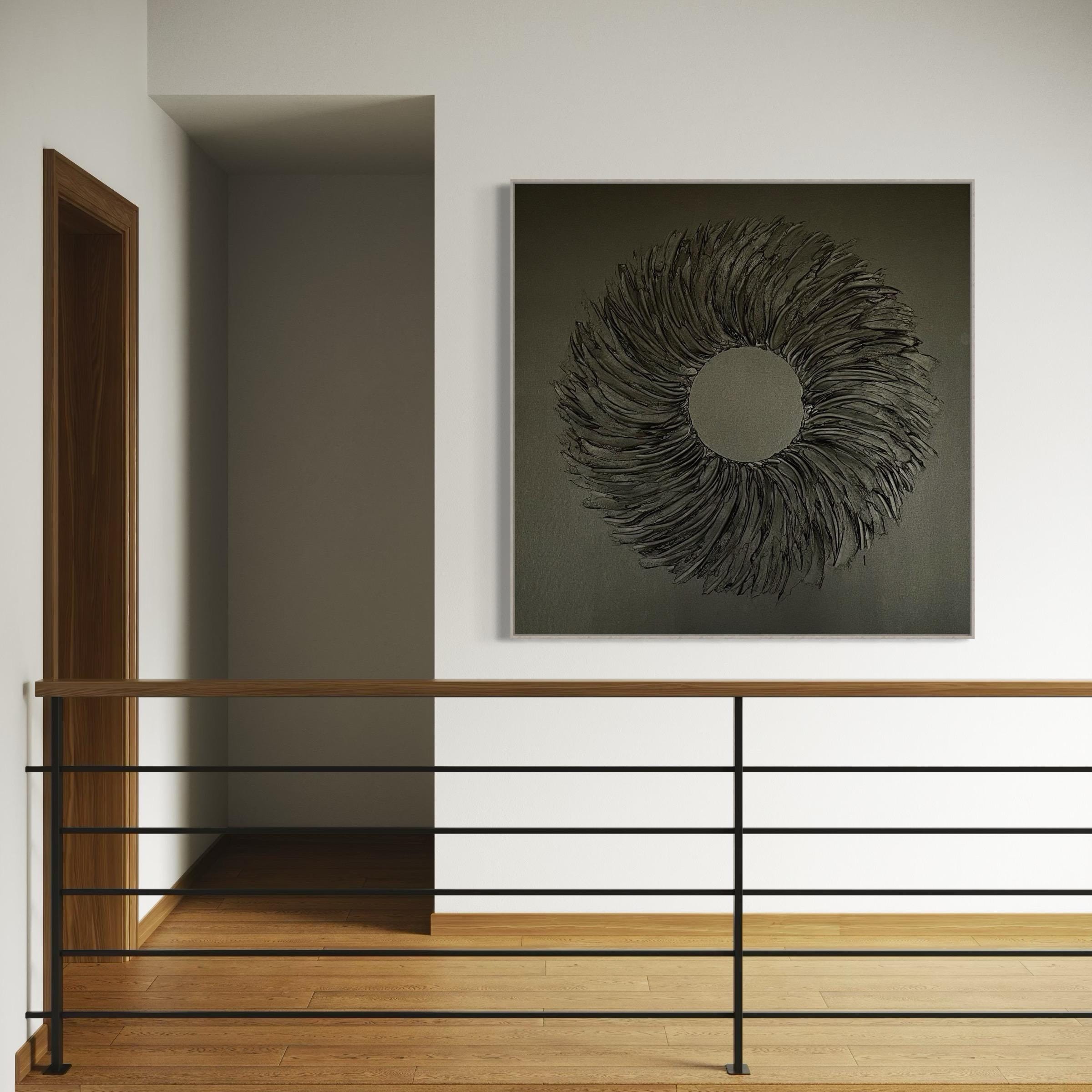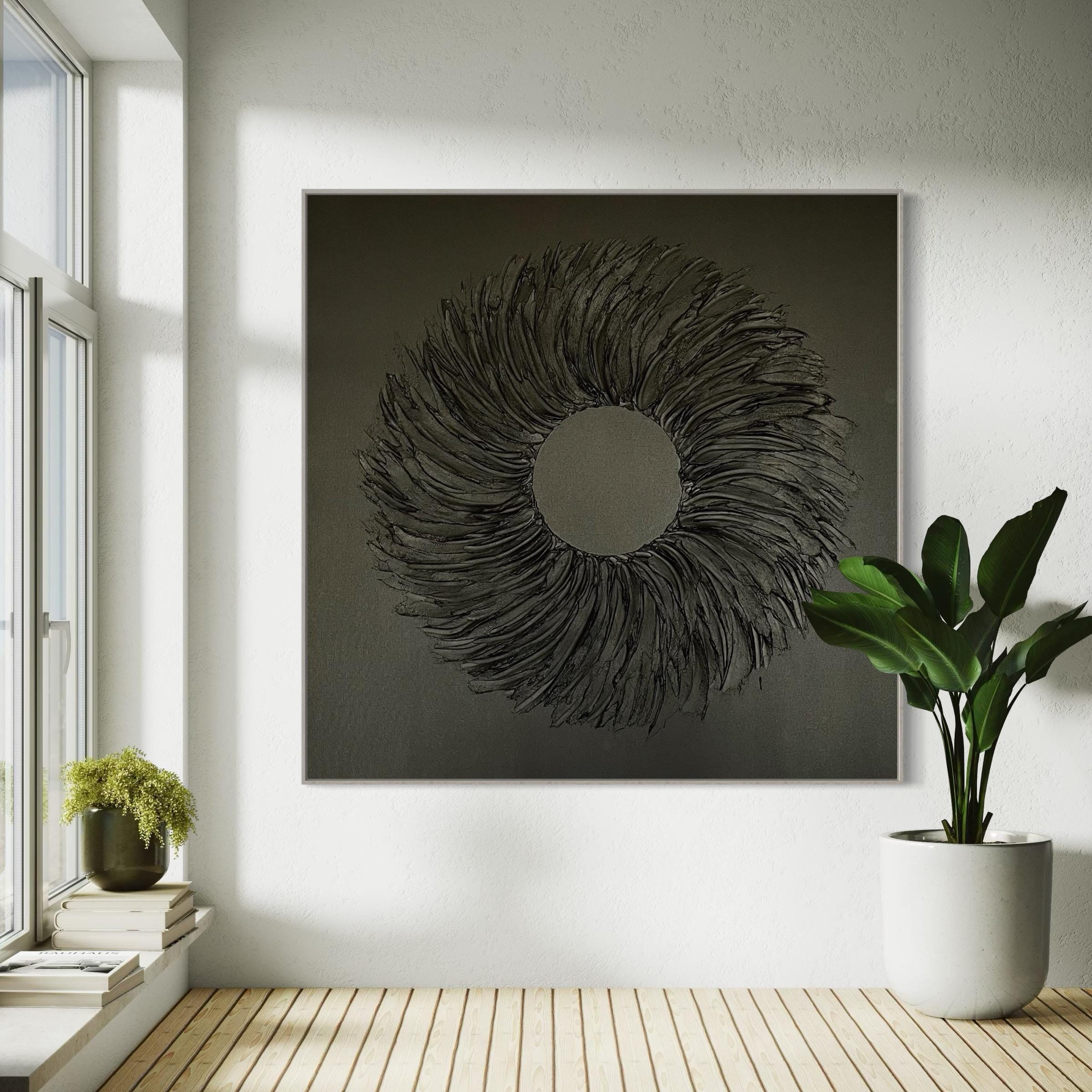 Extra Large Painting Black 3d Textured Wreath Wall Art for Hallway Oversized volumetric monochrome plaster handmade modern abstract picture