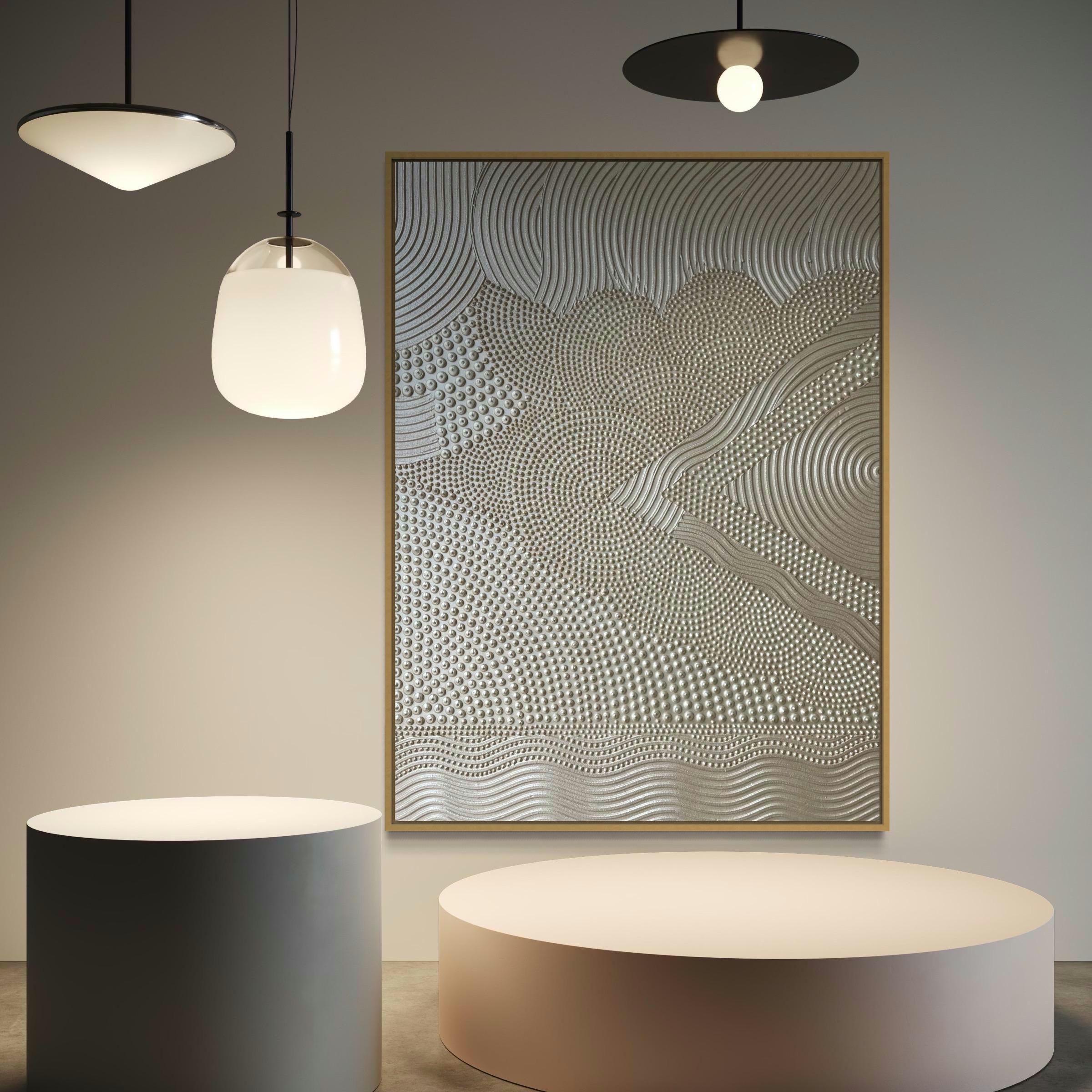 Modern neutral artwork with flowing geometric relief and calming organic movement.