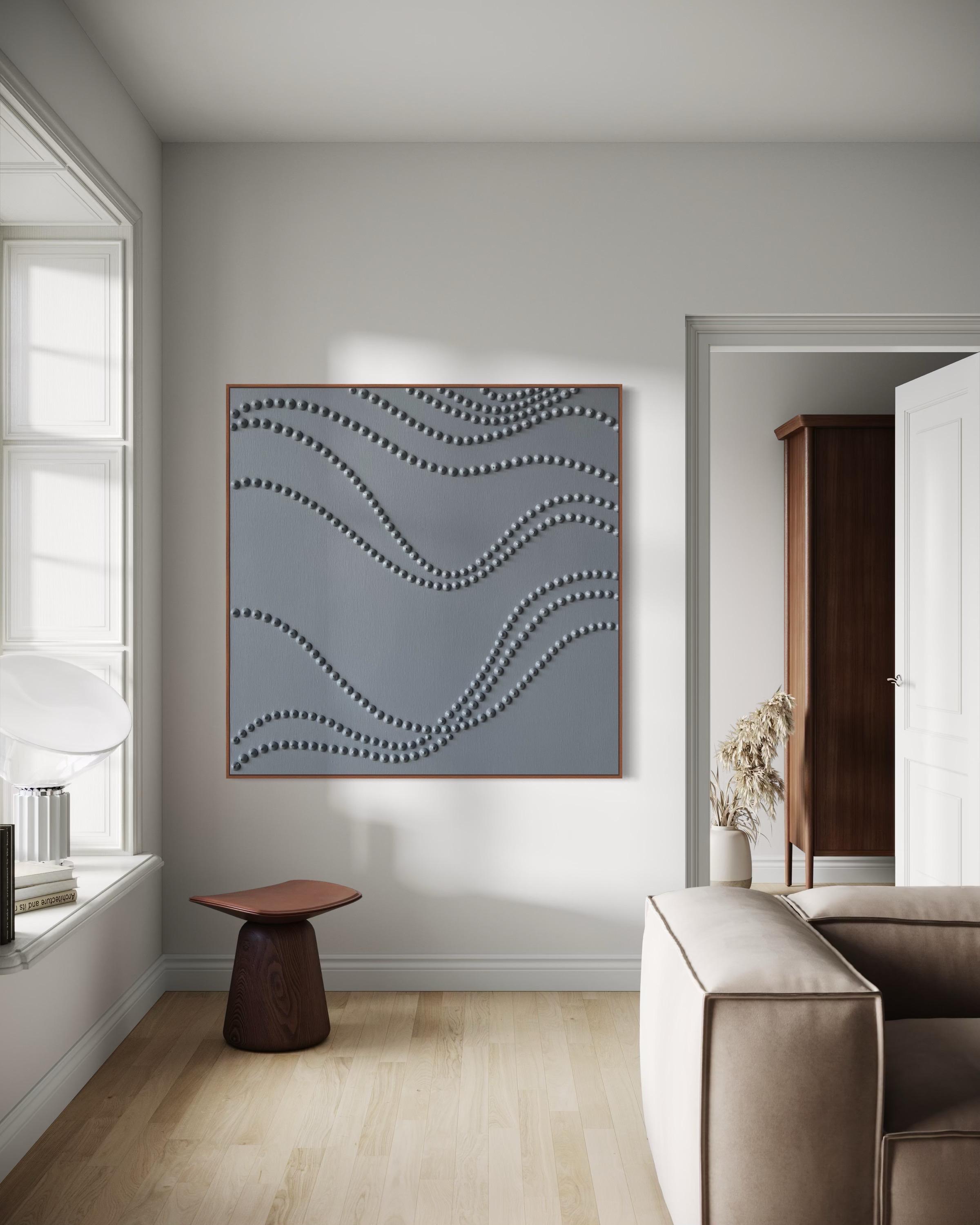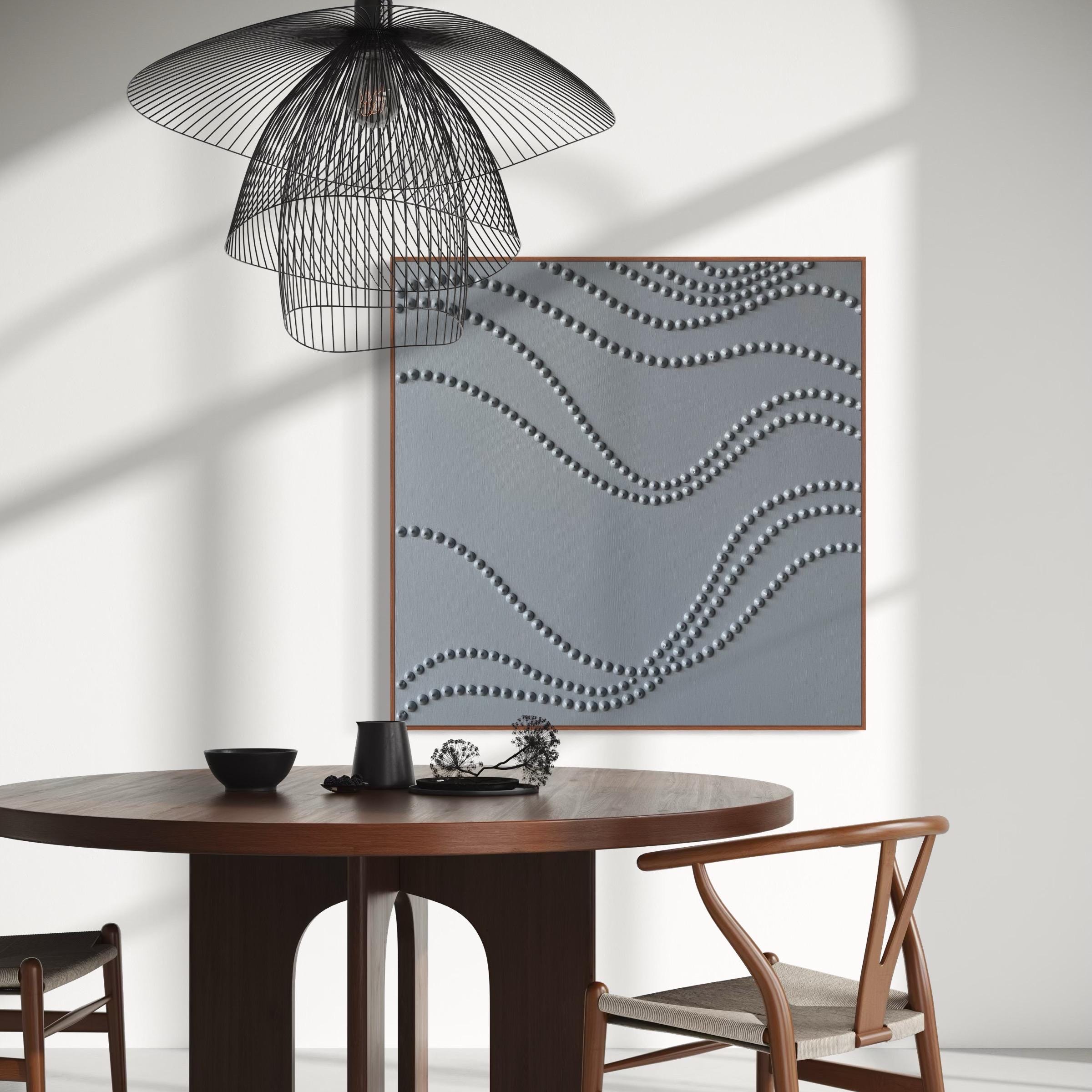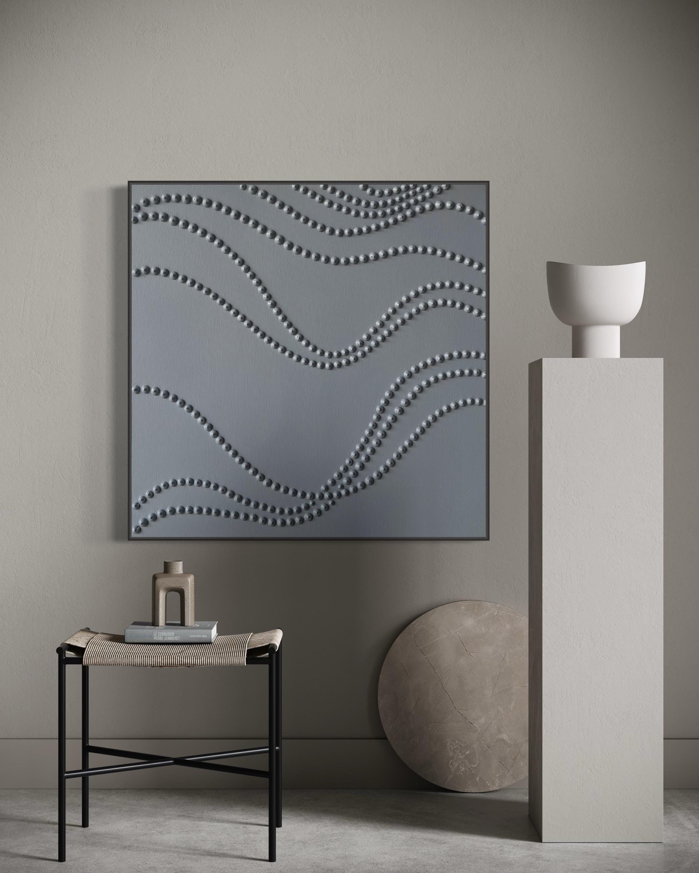 The surface is created with raised 3D dot texture and flowing relief lines, giving the artwork depth, movement, and a refined modern character.