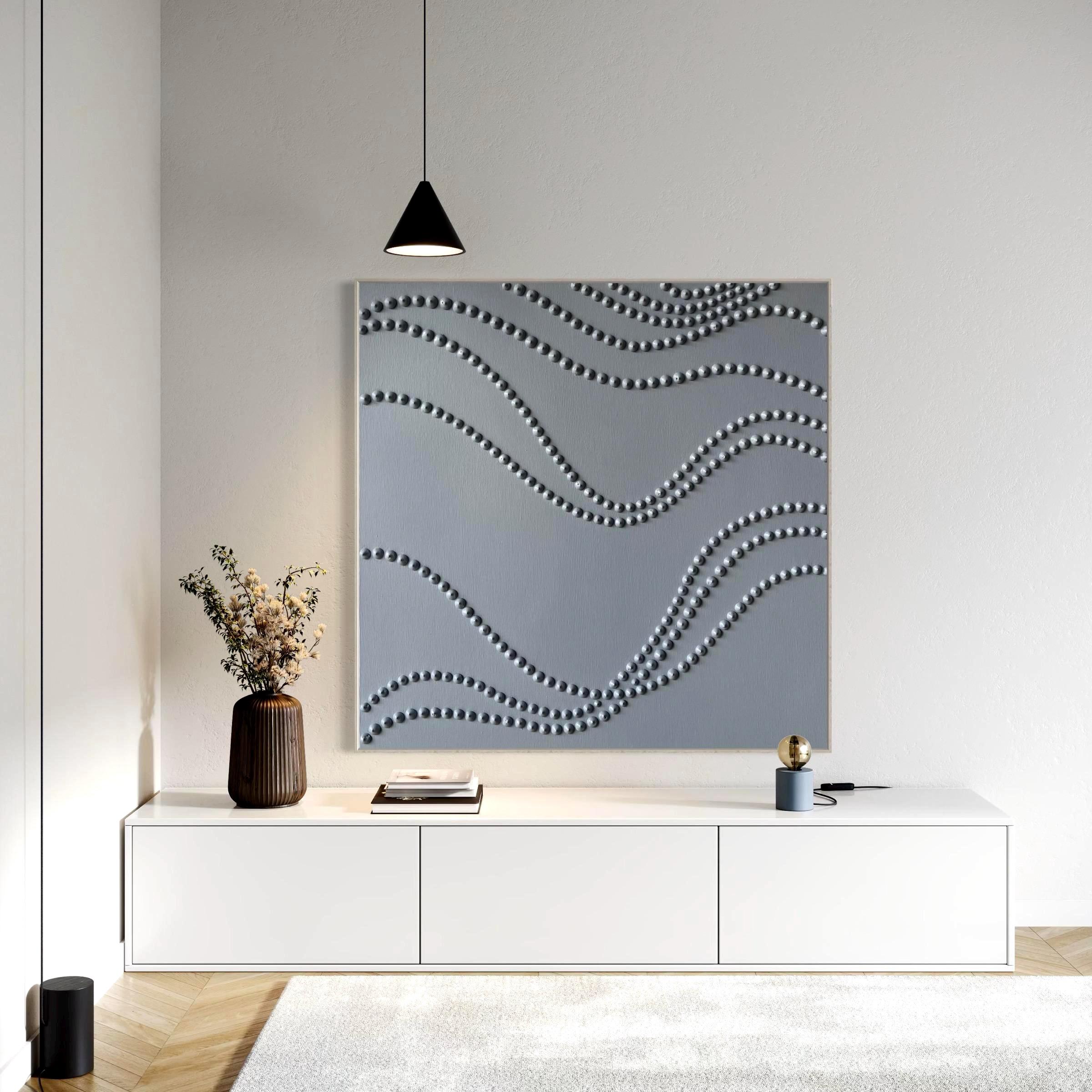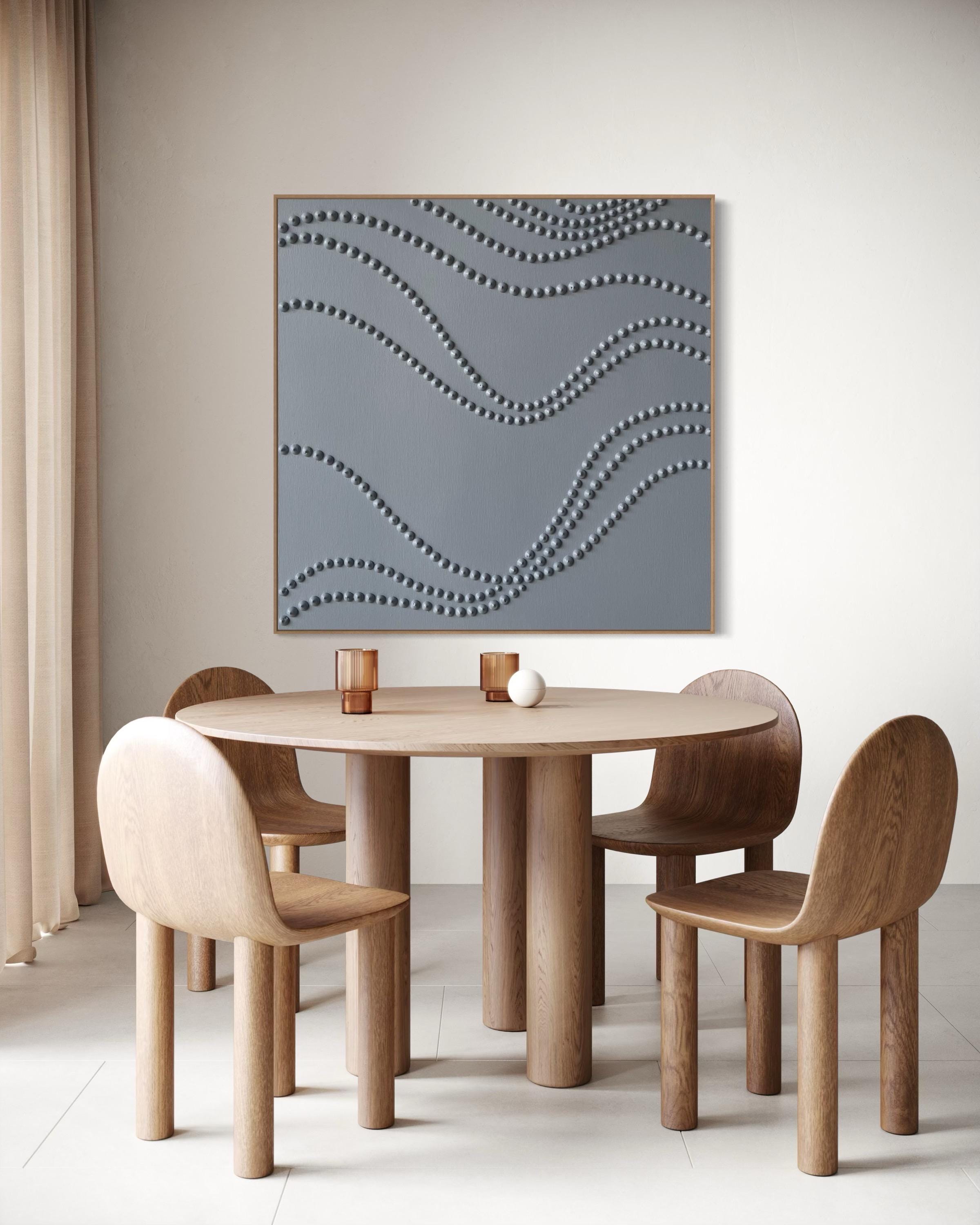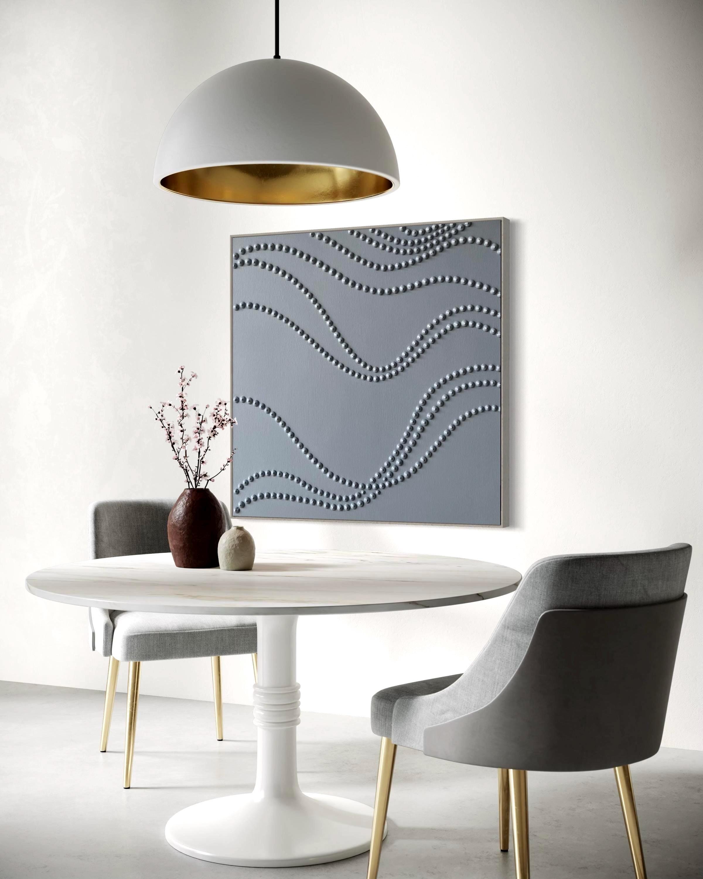 The surface is created with raised 3D dot texture and flowing relief lines, giving the artwork depth, movement, and a refined modern character.