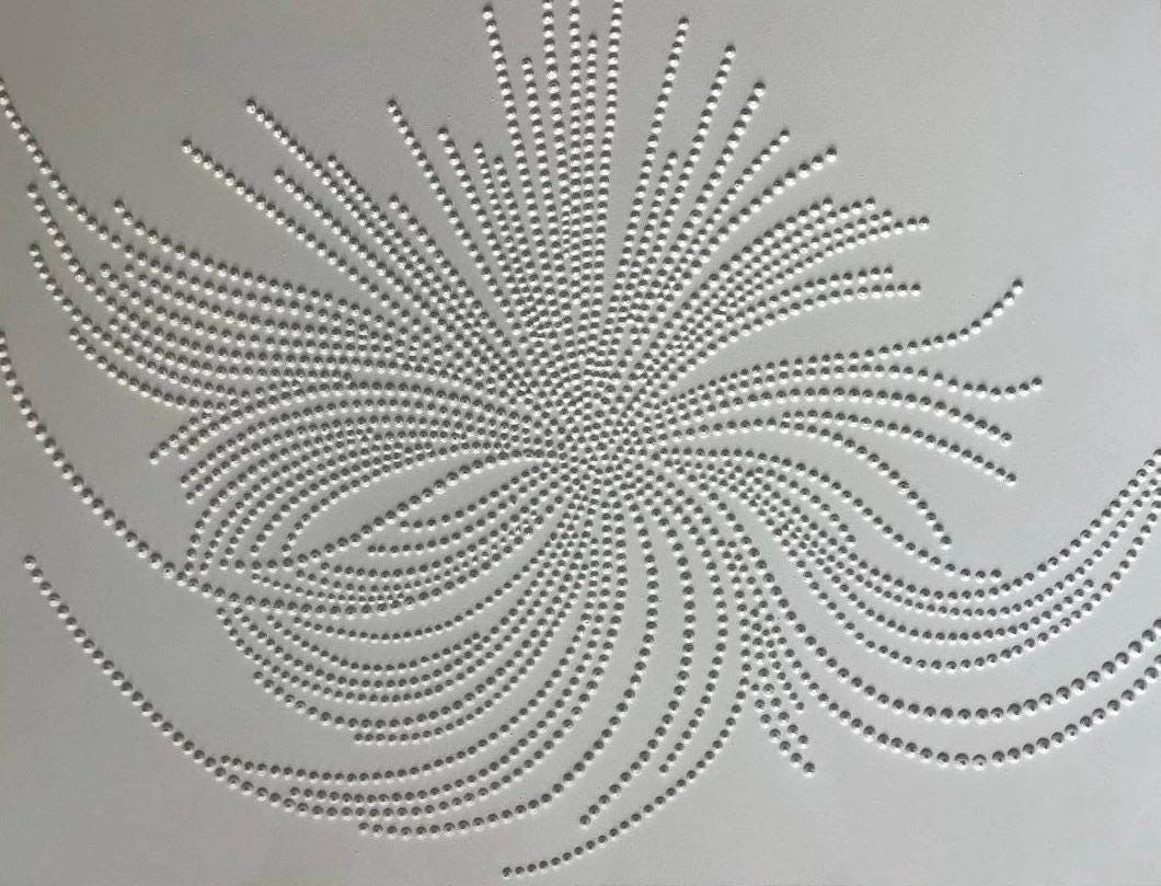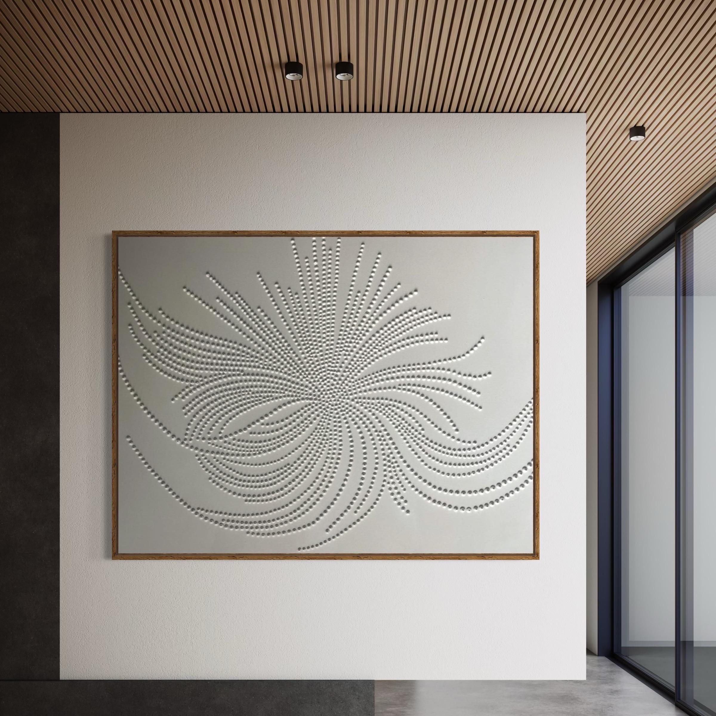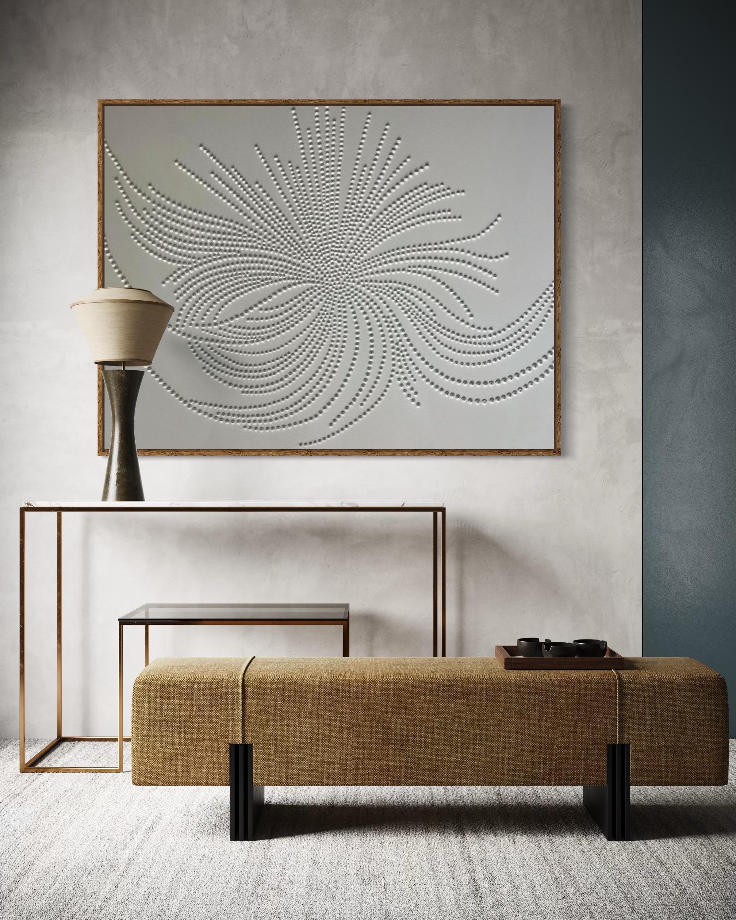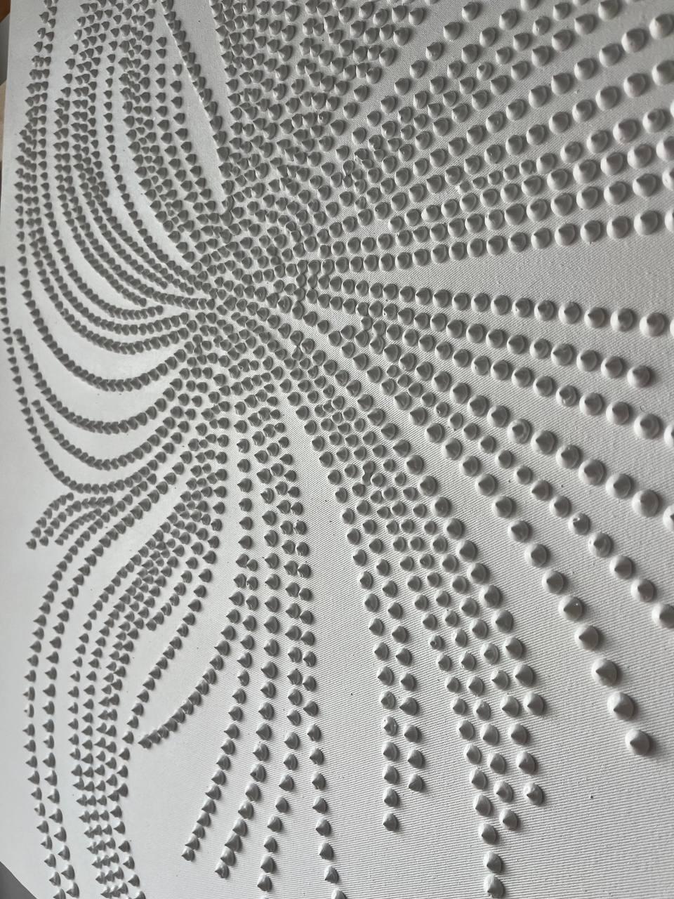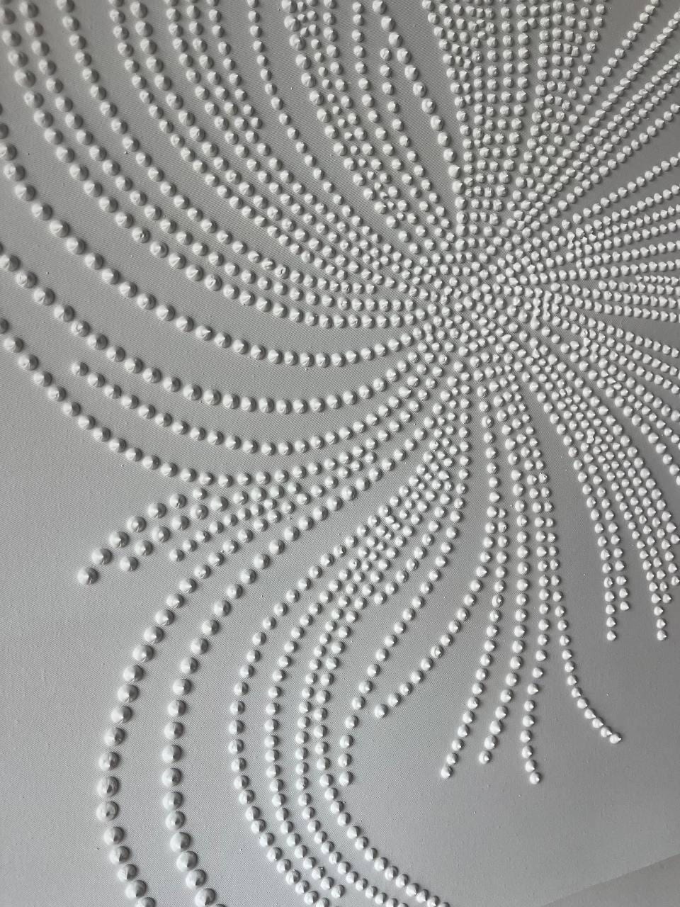 The surface is created with raised 3D dot texture and flowing relief lines, giving the artwork depth, movement, and a refined modern character.
