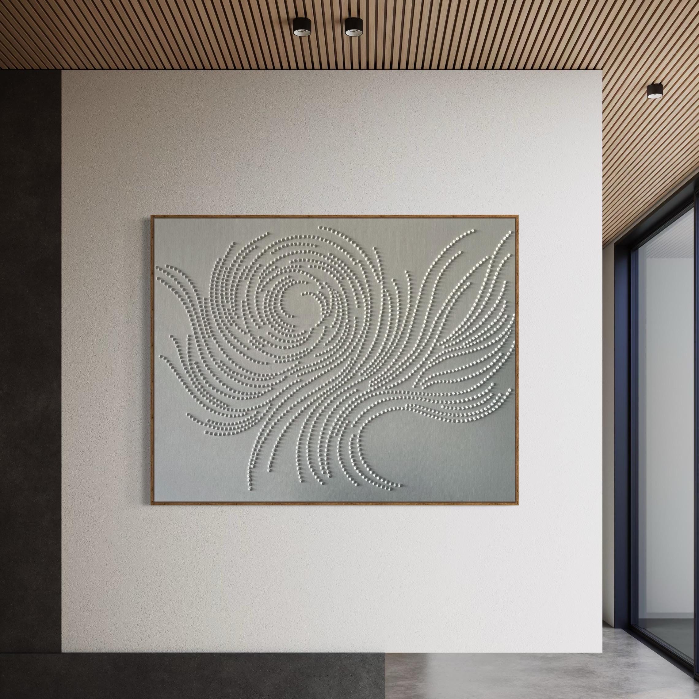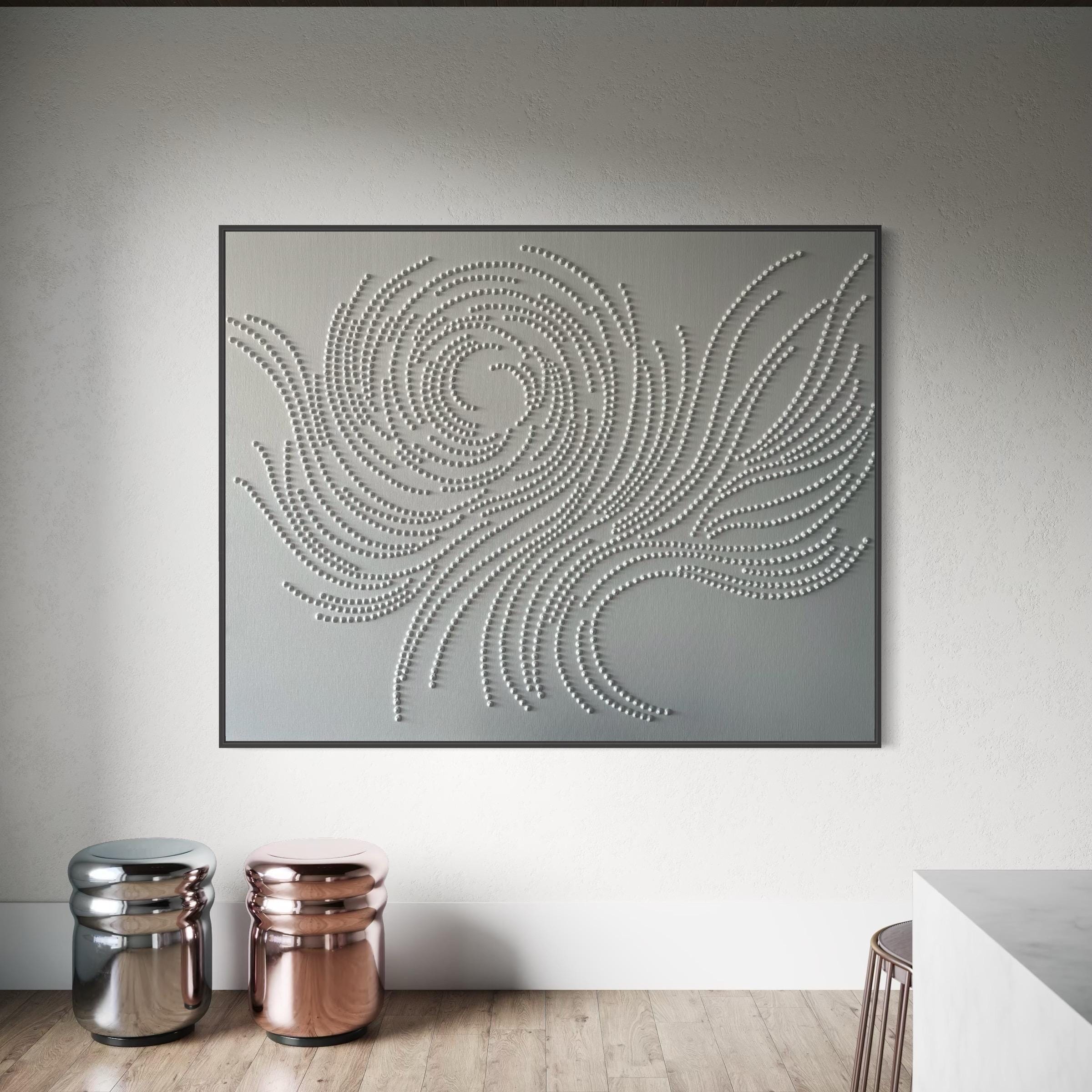 Extra Large white painting 3d textured dots monochrom abstract original wall art calm canvas boho style plaster picture oversized wall decor