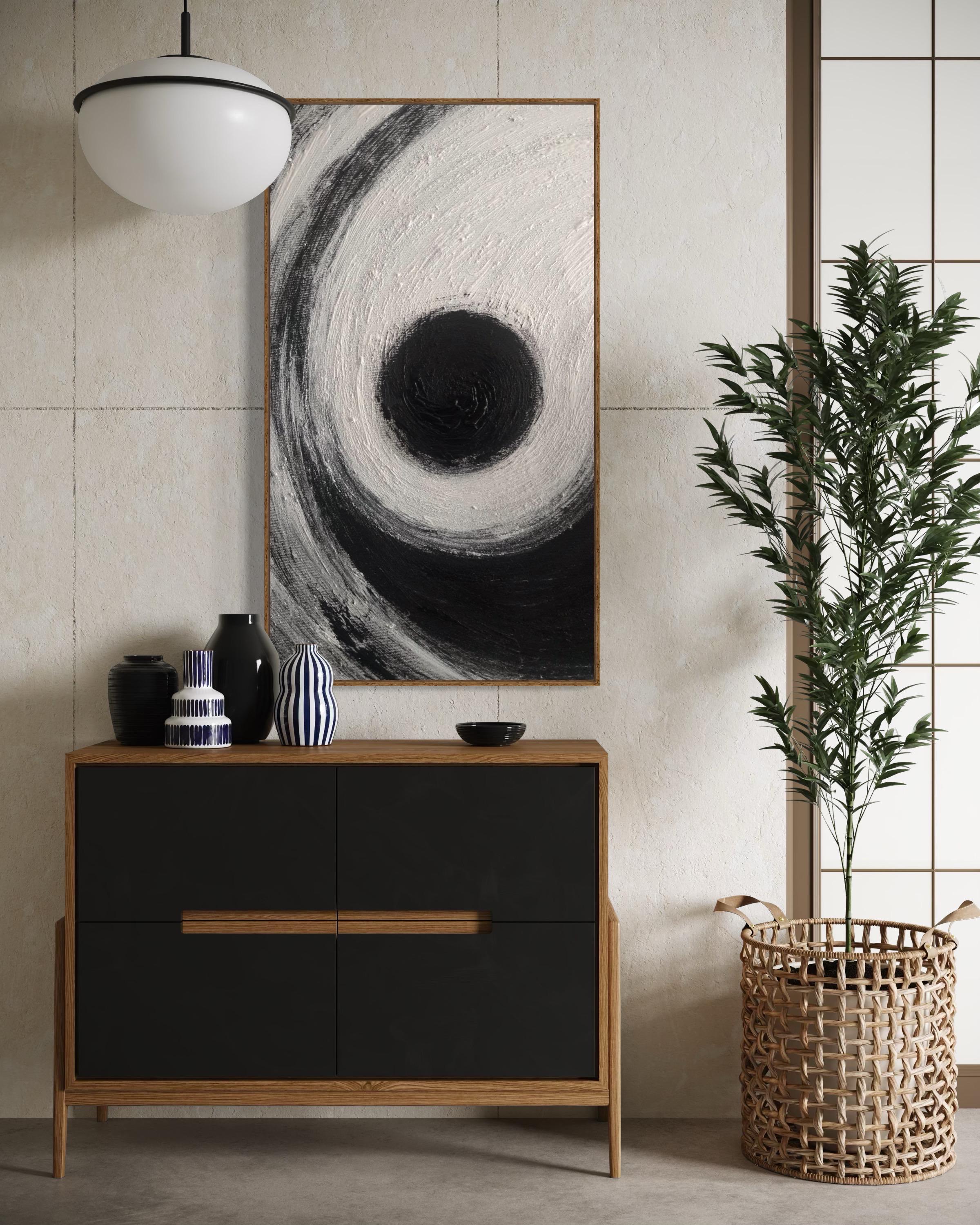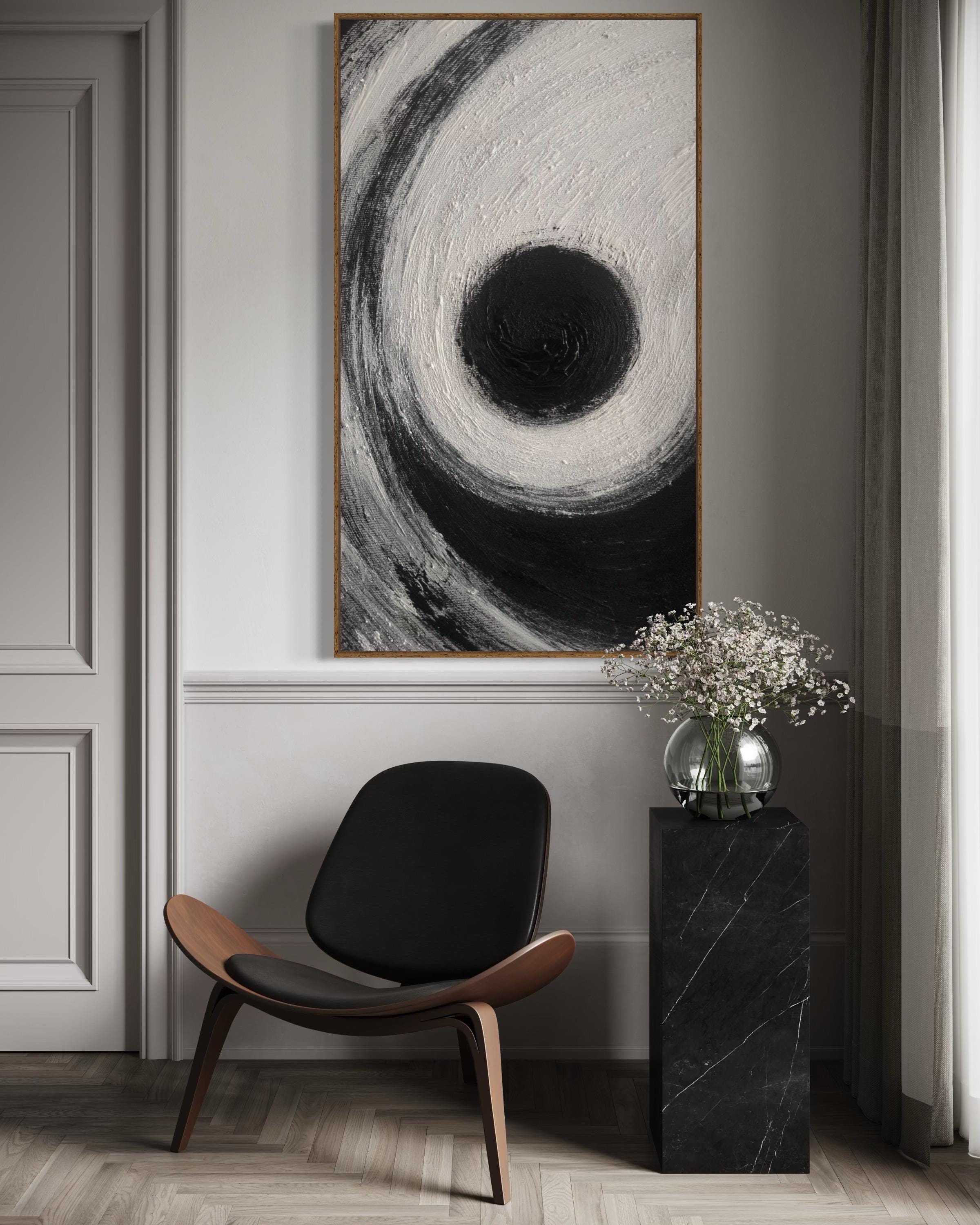 The dynamic contrast of black and white, combined with expressive circular movement, brings balance, depth, and sophistication to any modern interior.