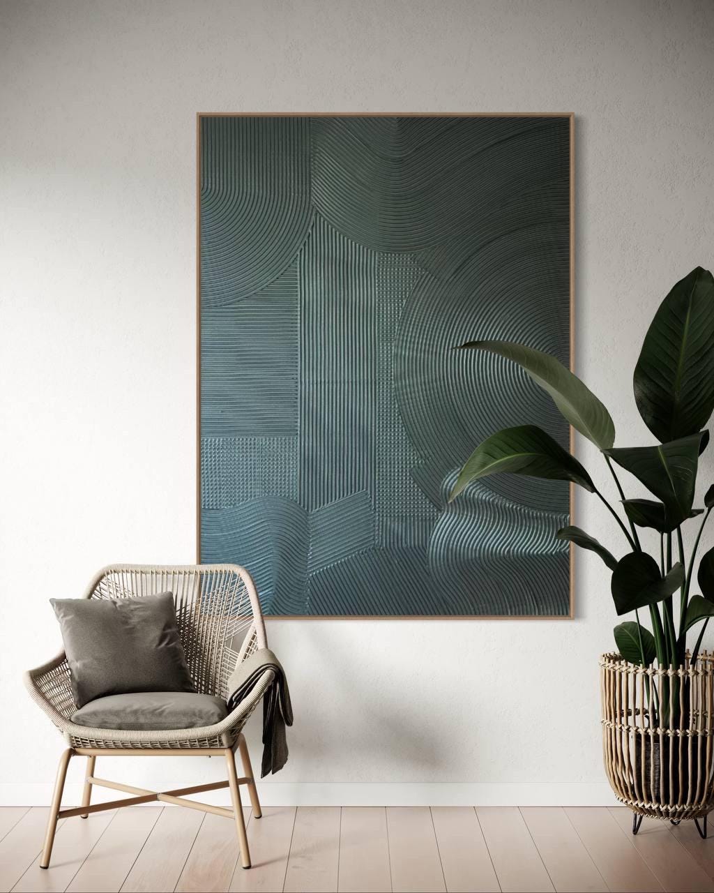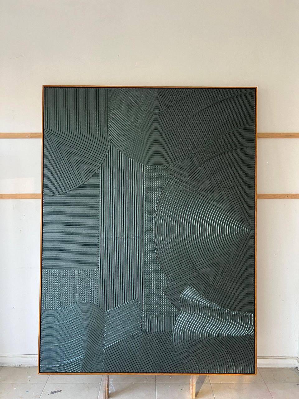 The painting’s emerald metallic tones and minimal geometric texture make it a perfect fit for modern, luxury, japanese,boho, wabi-sabi or neutral interiors — ideal for your living room, bedroom, hallway, or office.