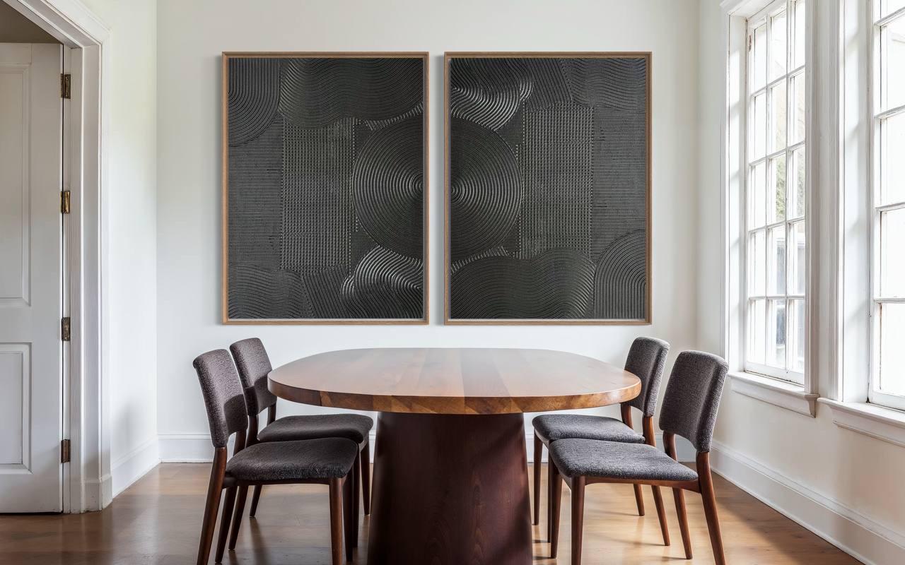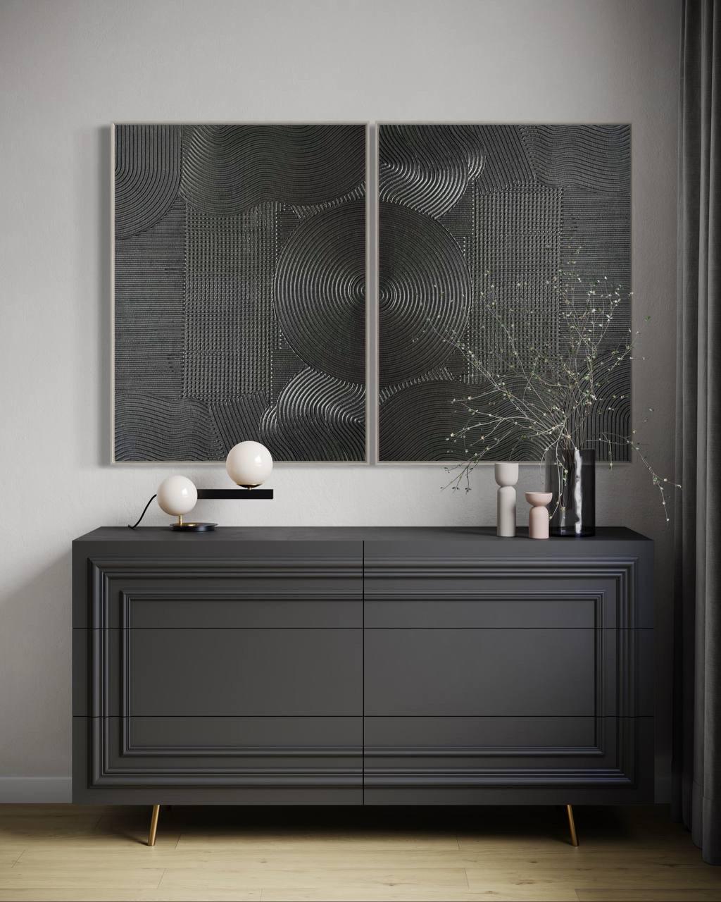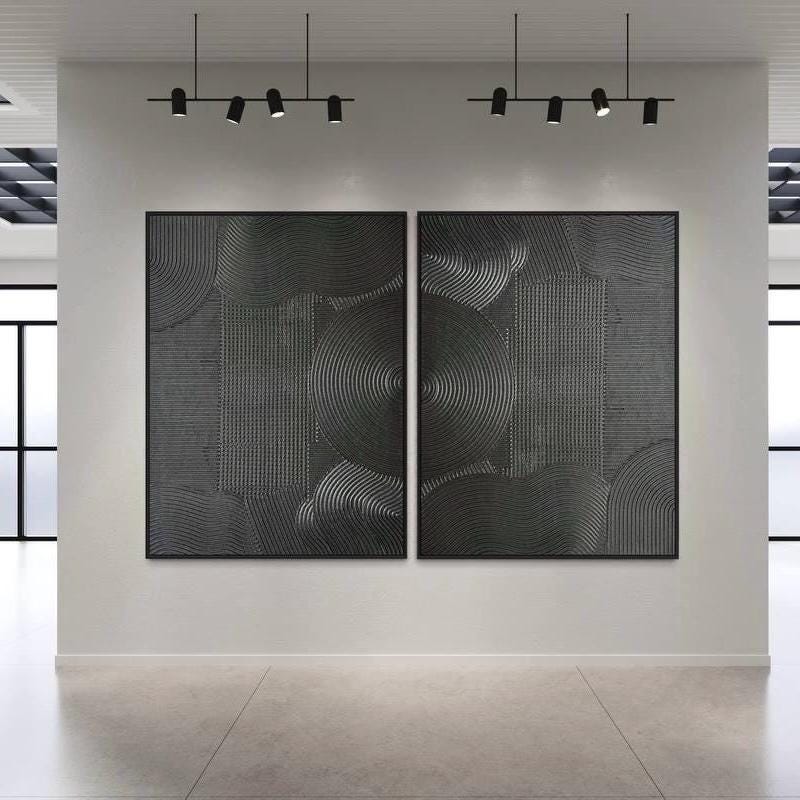 This textured black metallic wall art set of 2 is ideal for customers searching for luxury abstract decor, modern textured paintings, geometric wall art, large black pearl canvas art, neutral contemporary wall decor, and handmade 3D artwork. The metallic finish and sculptural texture make this diptych perfect for upscale interiors, modern living rooms, designer bedrooms, minimalist hallways, boutique-style offices, and stylish entryways. Whether you're decorating a new home, renovating your space, or looking for modern wall art that creates a bold statement, this black metallic textured abstract set is a timeless and versatile choice.