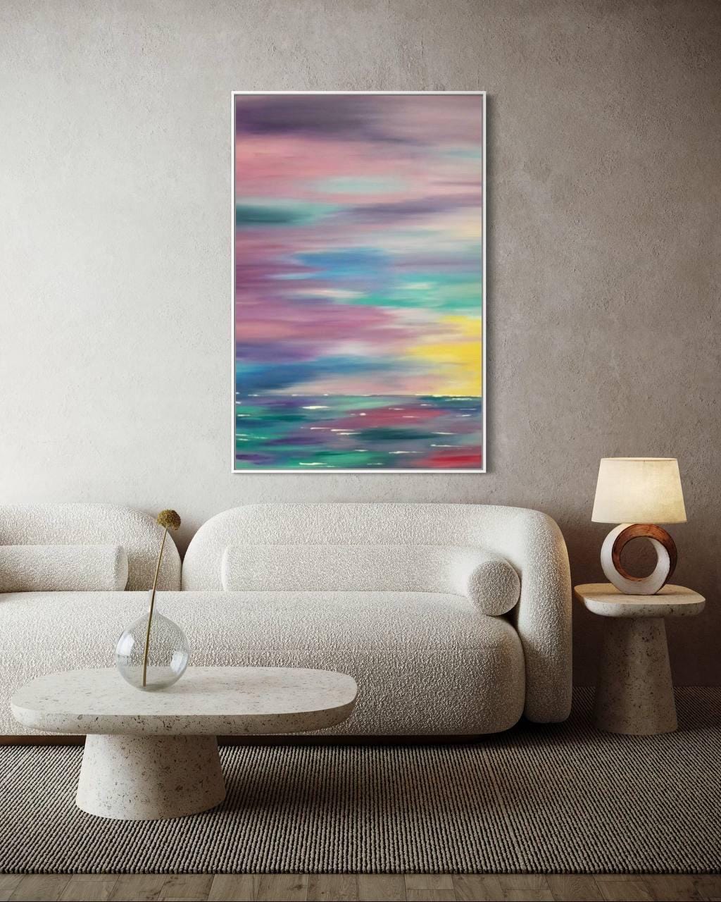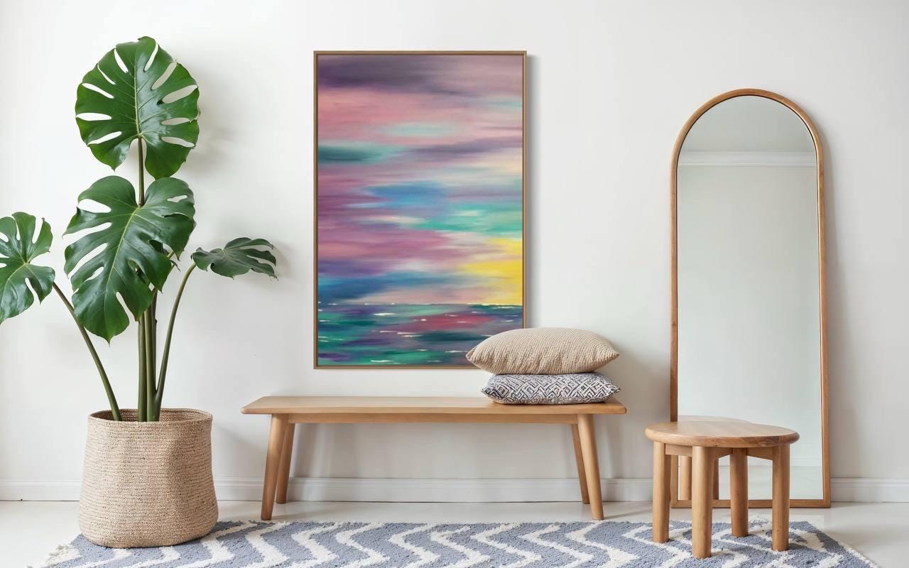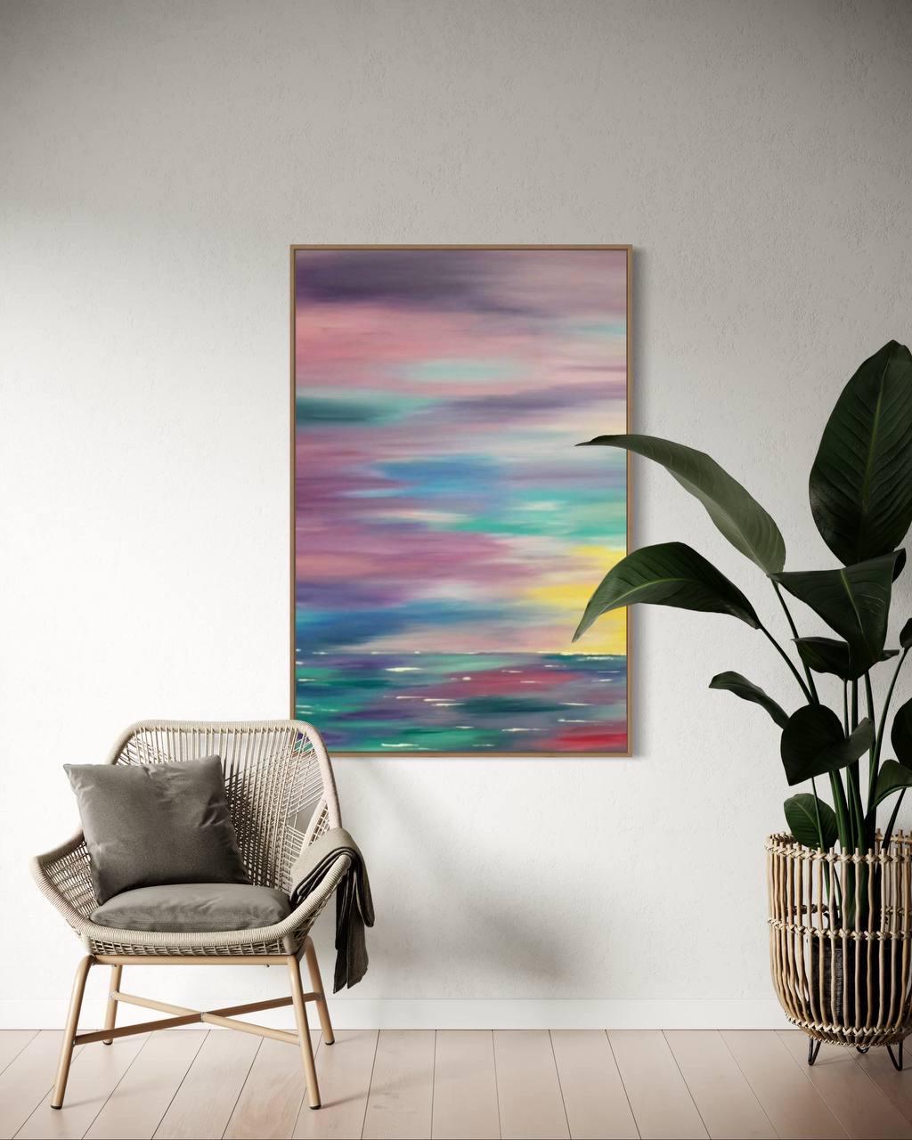Extra Large Abstract Seascape Painting Oversized Sunset Wall Art Modern Sunrise Original Canvas Colorful Ocean Picture Home Wall Art Decor