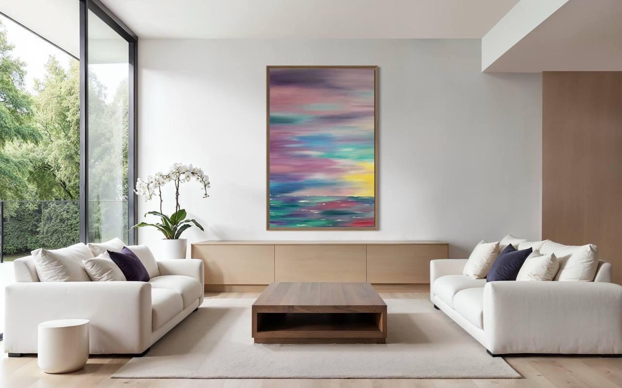 Oversized Abstract Seascape Painting: Modern Sunset Ocean Canvas Art