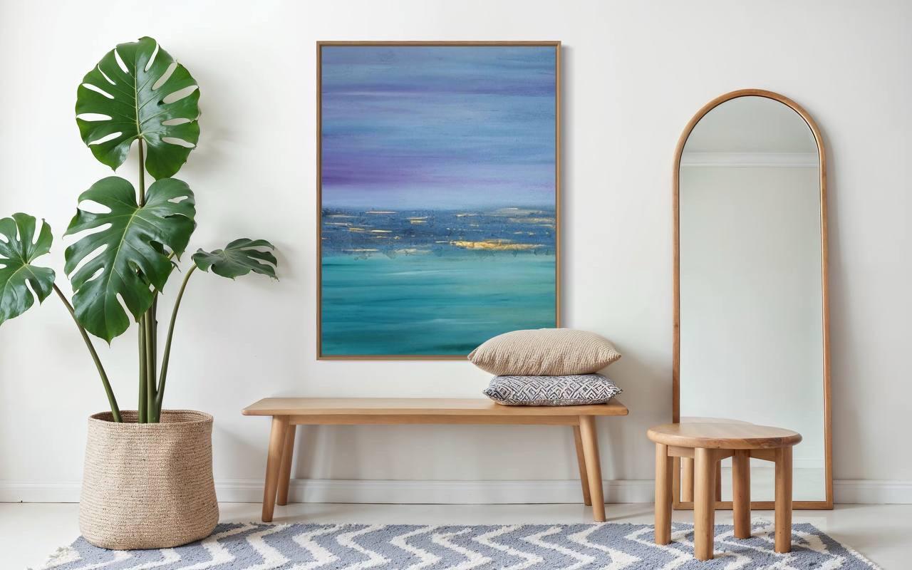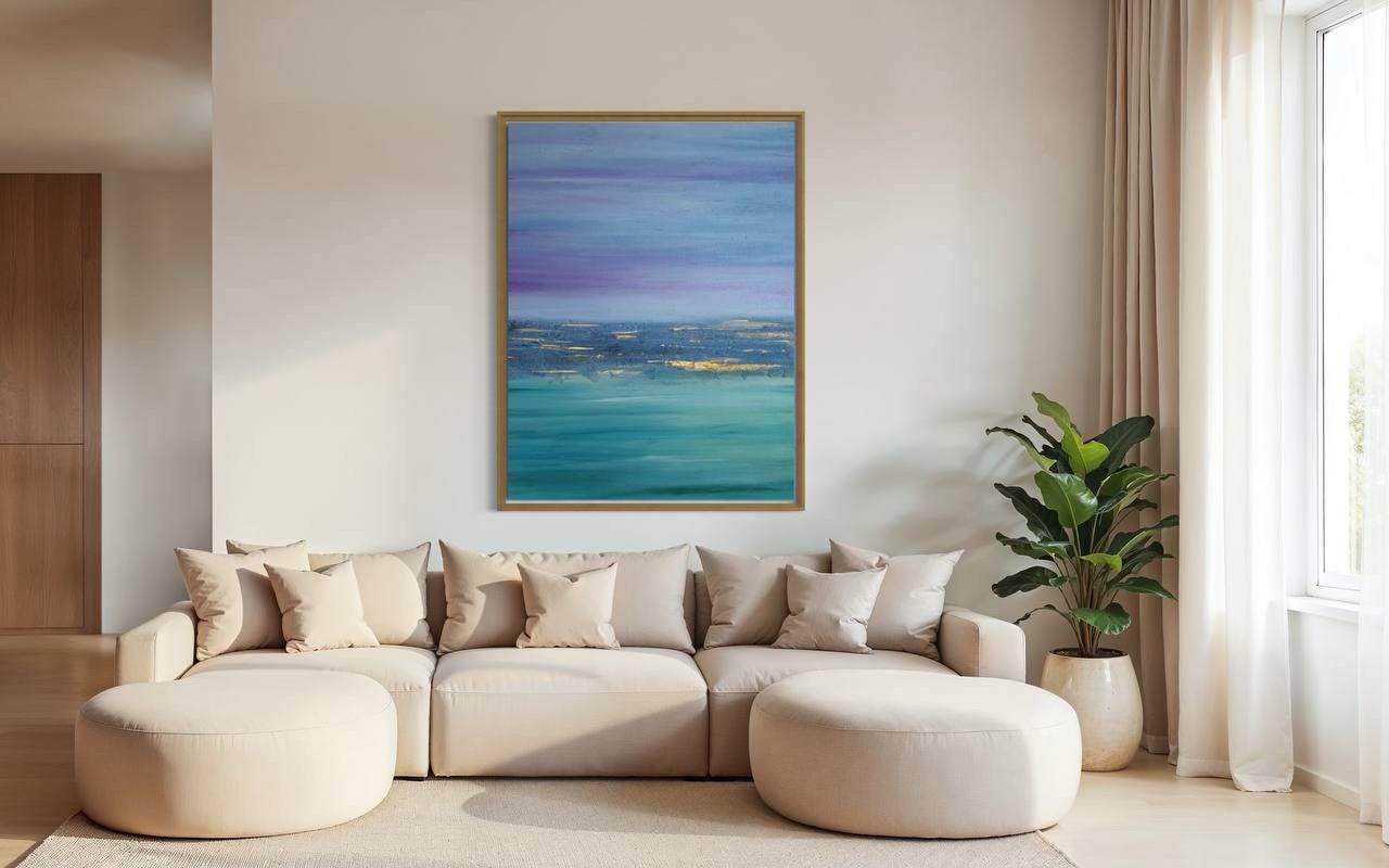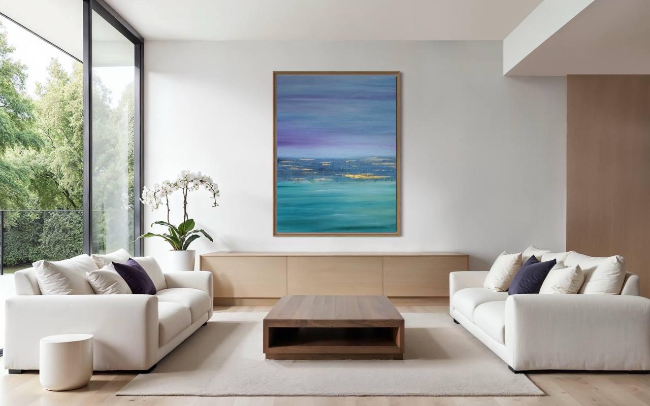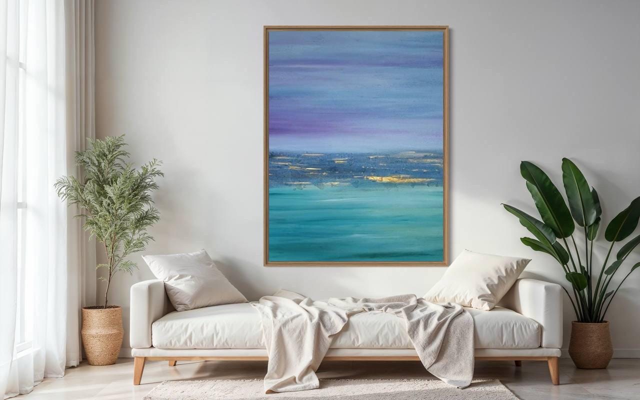 Extra Large Abstract Seascape Painting Oversized Purple Turquoise Wall Art Modern Original texture Canvas Ocean Picture Home Wall Art Decor
