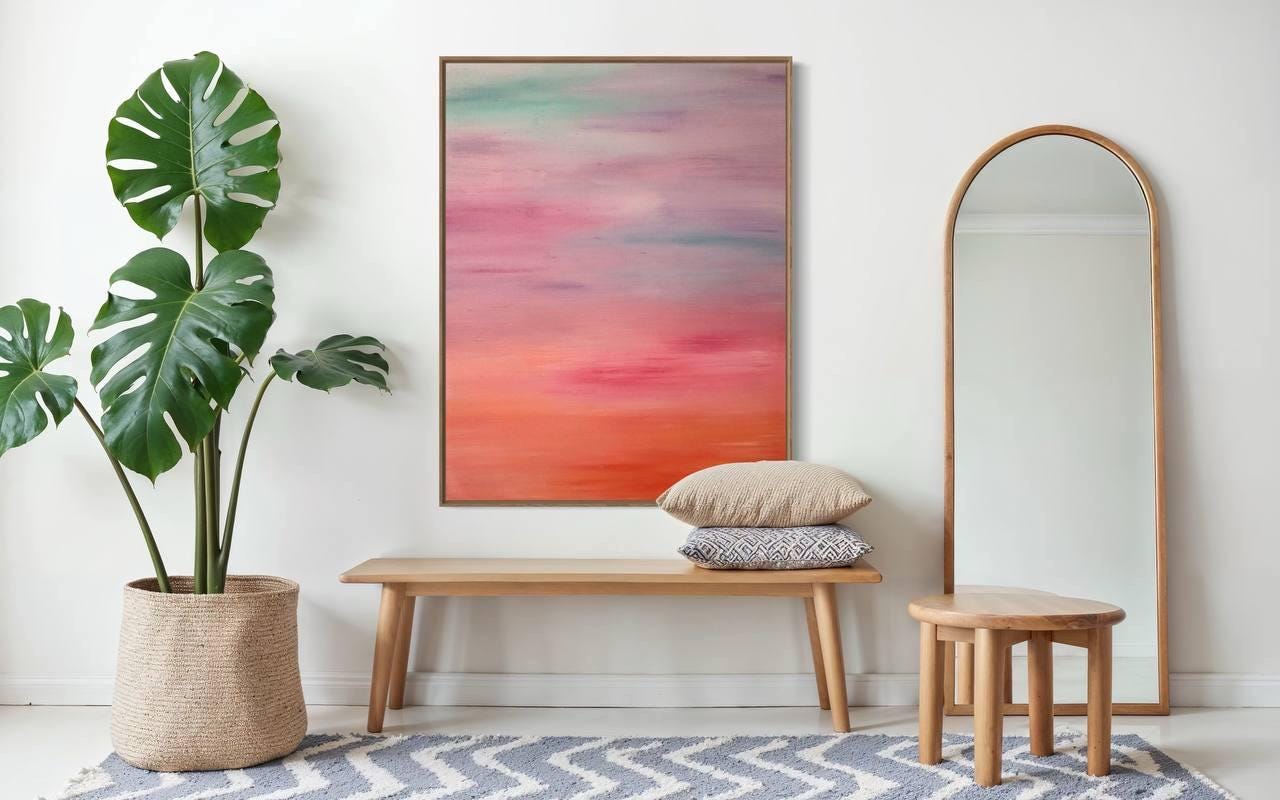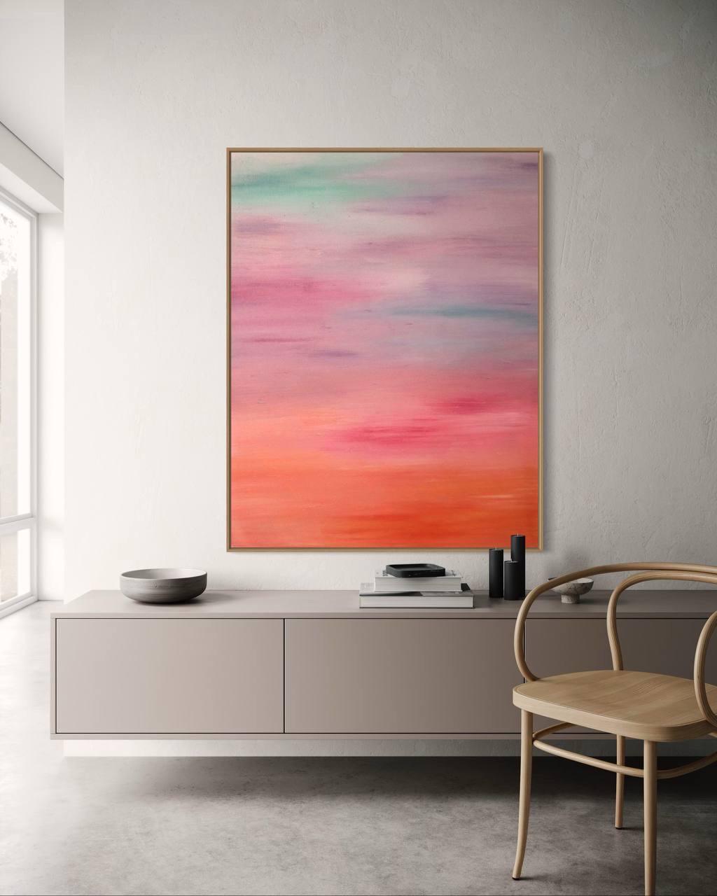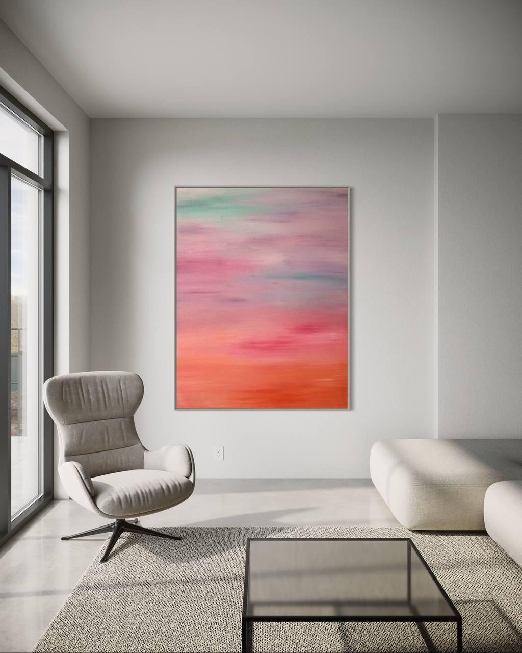 Oversized Abstract Sunset Seascape Painting: Modern Minimalist Canvas Art
