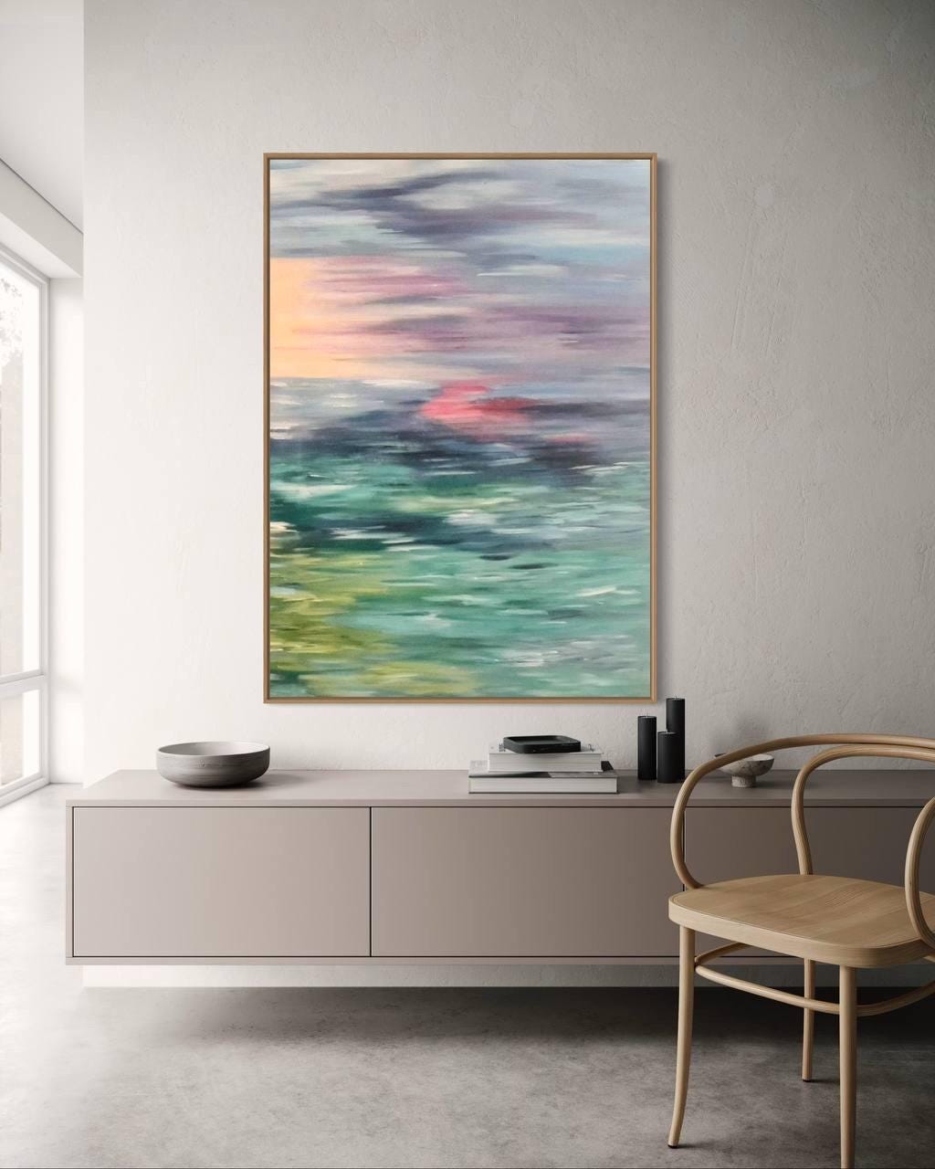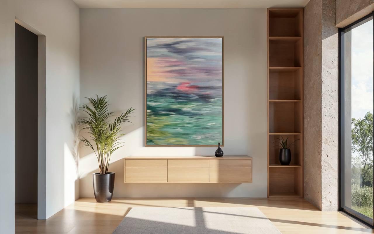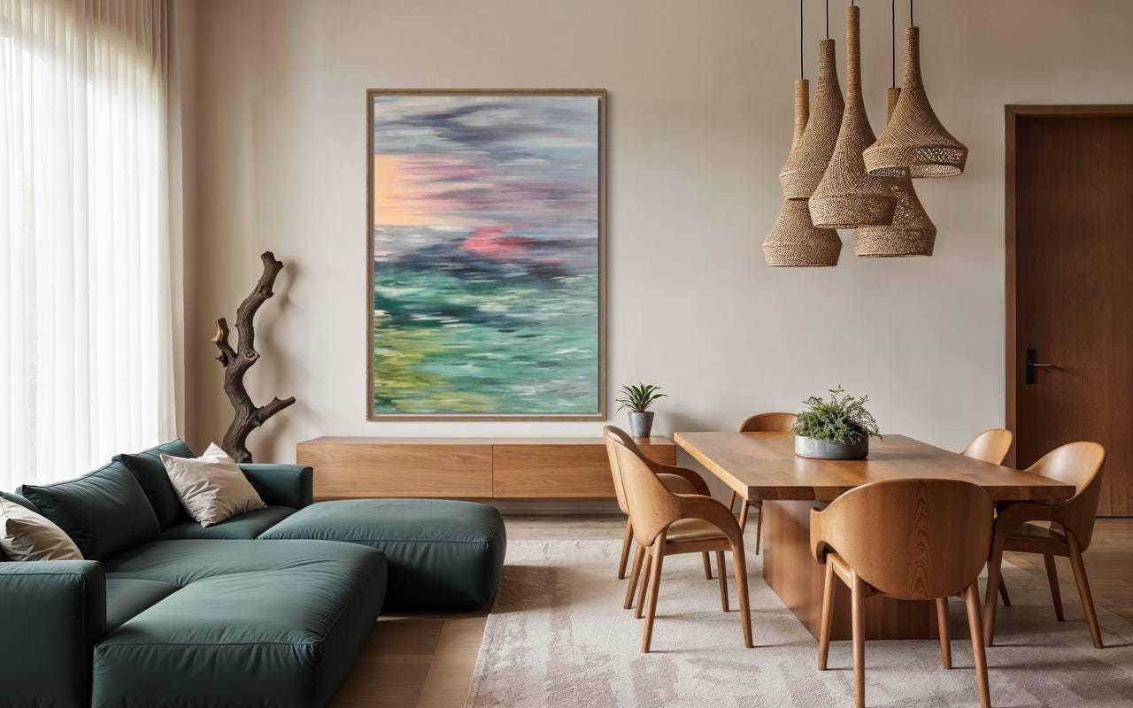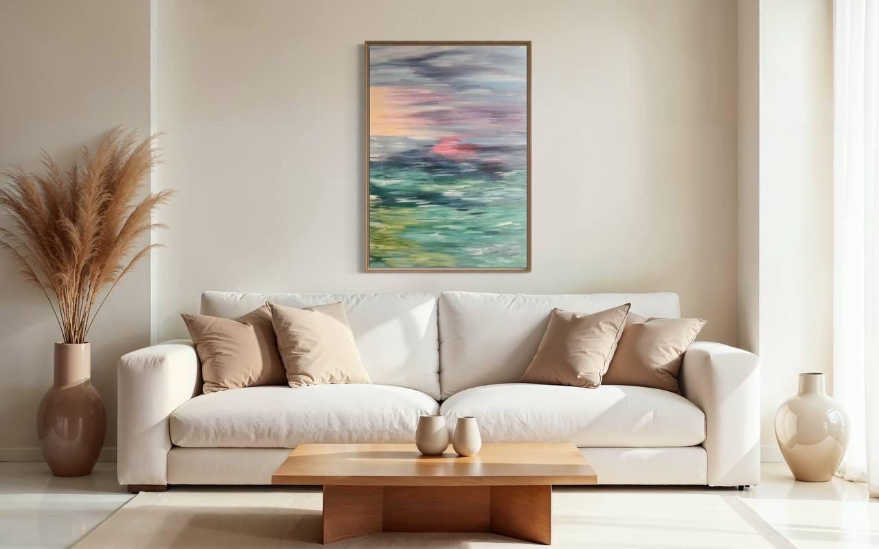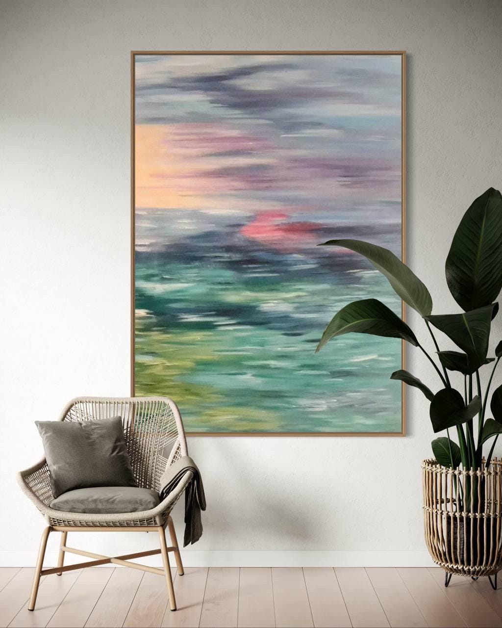 Oversized Abstract Seascape Painting: Modern Sunset Ocean Canvas Wall Art