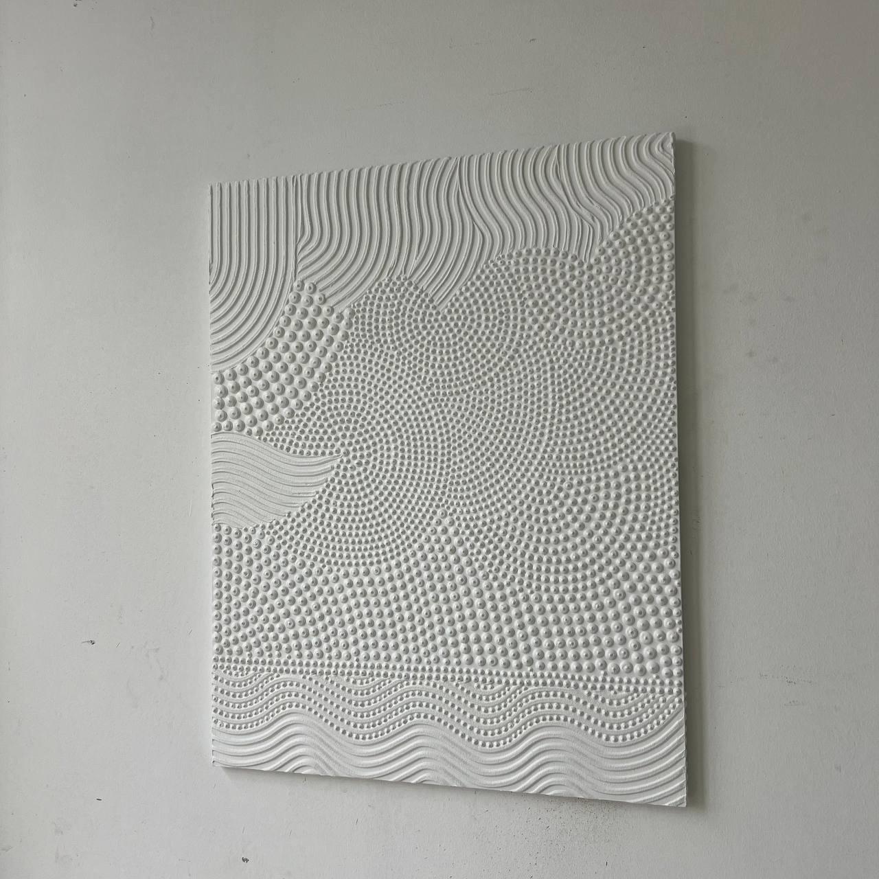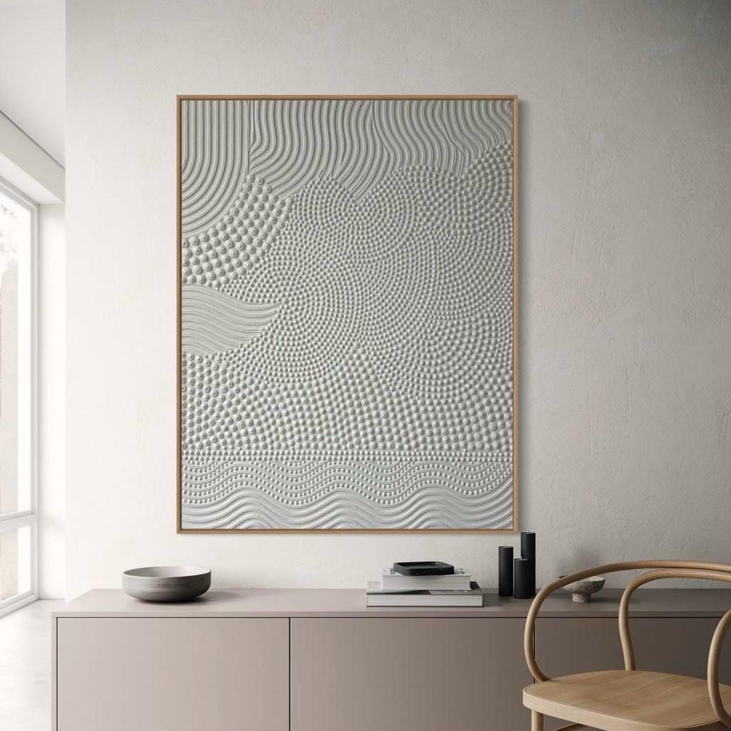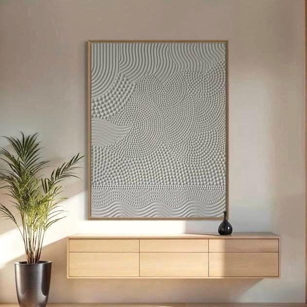 Transform your space with this hand-sculpted, neutral 3D textured wall art, created in calming organic waves and dotted geometric rhythm. Each raised dot and curved relief line is made fully by hand — no prints, no molds — resulting in a tactile, sculptural surface that feels both architectural and soft.