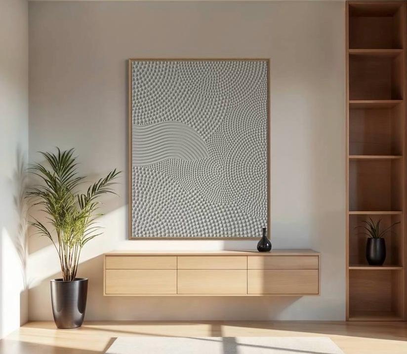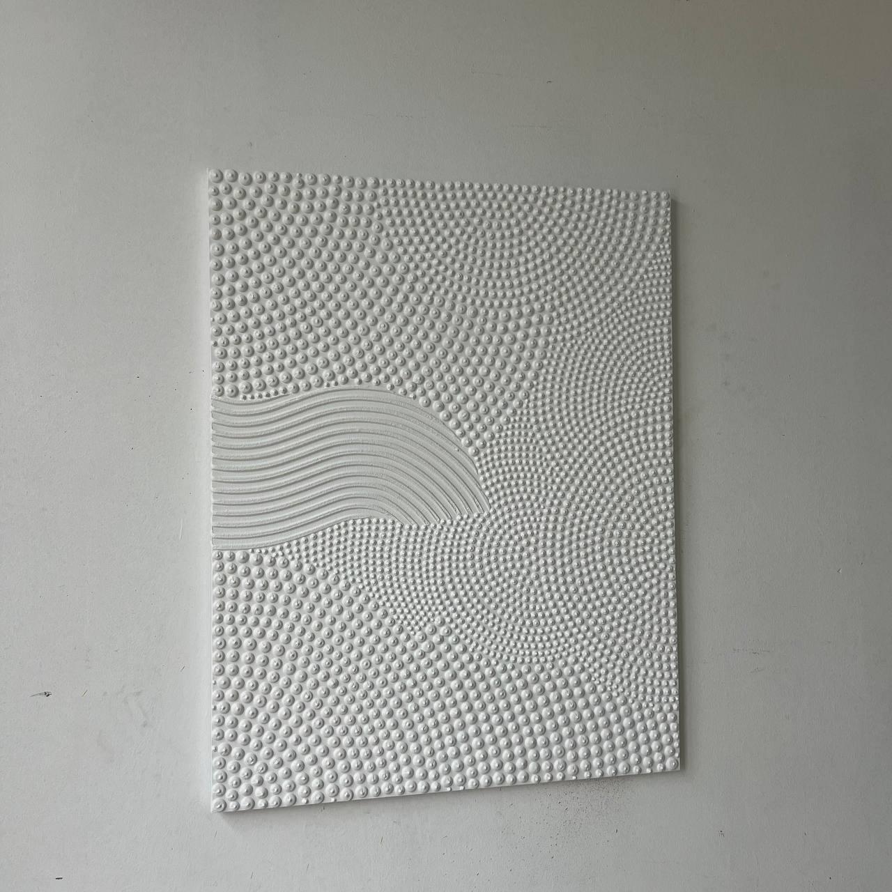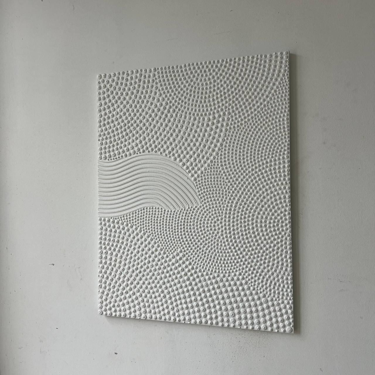 Transform your space with this hand-sculpted, neutral 3D textured wall art, created in calming organic waves and dotted geometric rhythm. Each raised dot and curved relief line is made fully by hand — no prints, no molds — resulting in a tactile, sculptural surface that feels both architectural and soft.