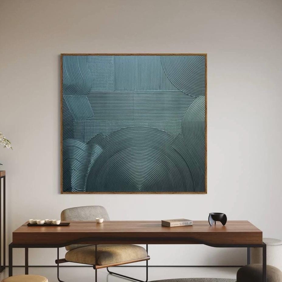 Large modern emerald textured abstract wall art with deep 3D relief and subtle metallic pearl finish.