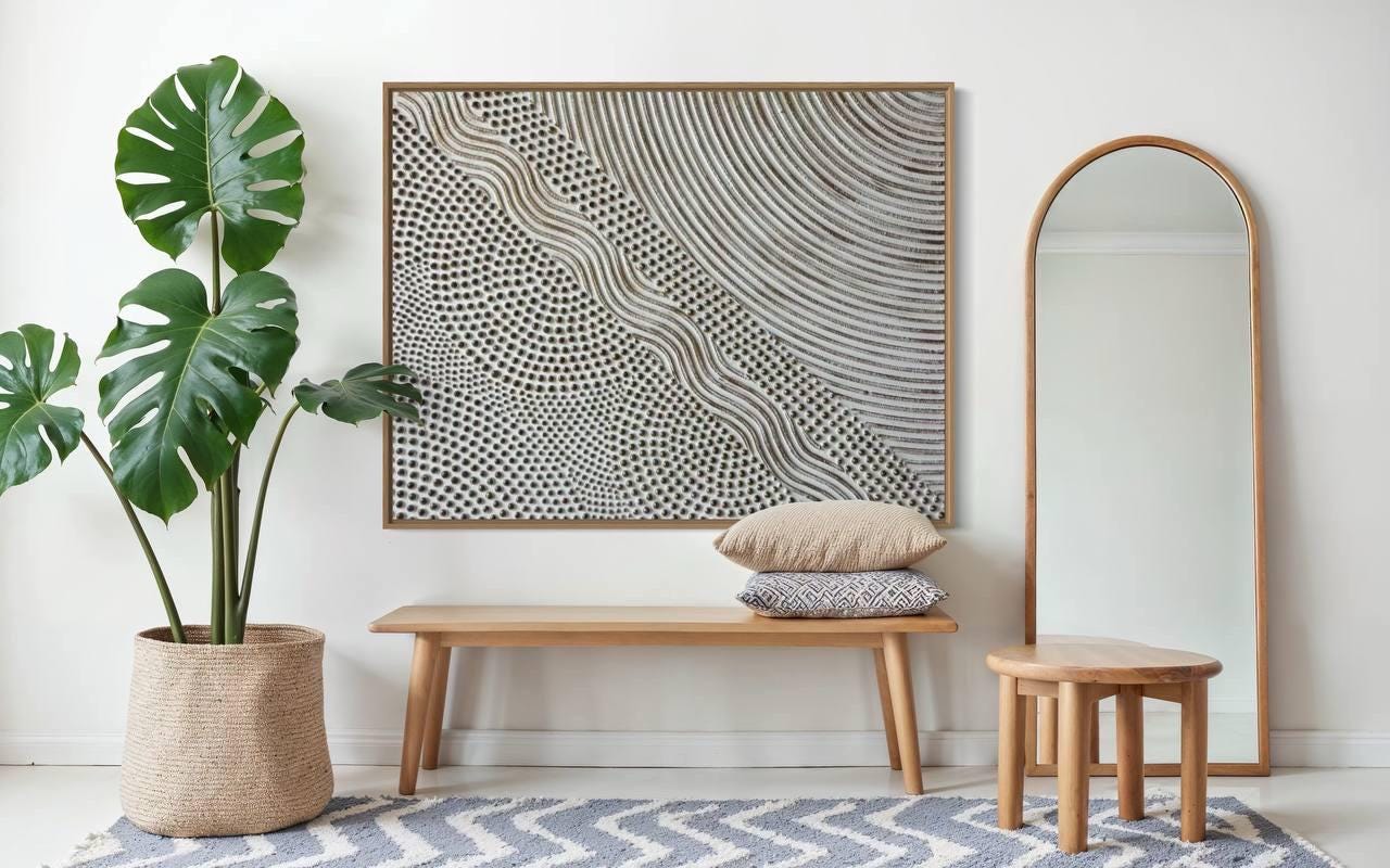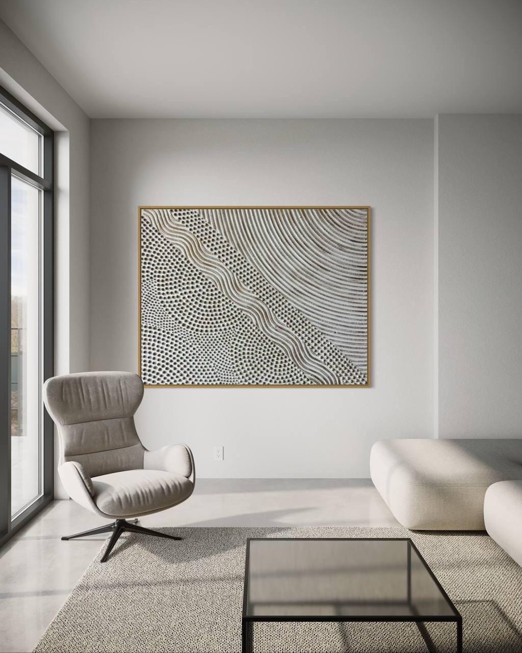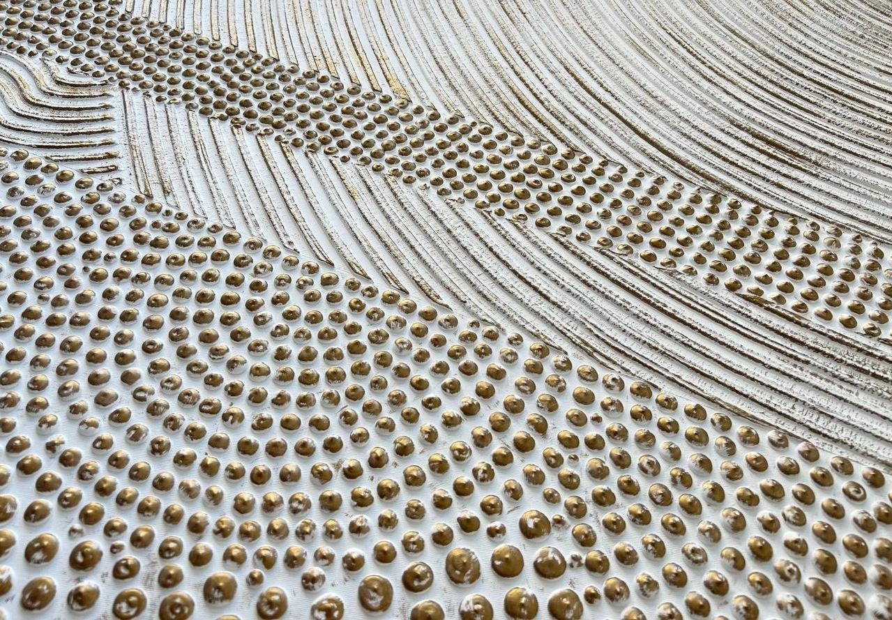 Extra Large Wall Art White Bronze 3D Points & lines 3d plaster painting Oversized 3d Textured Abstract picture Modern pointillism Original canvas