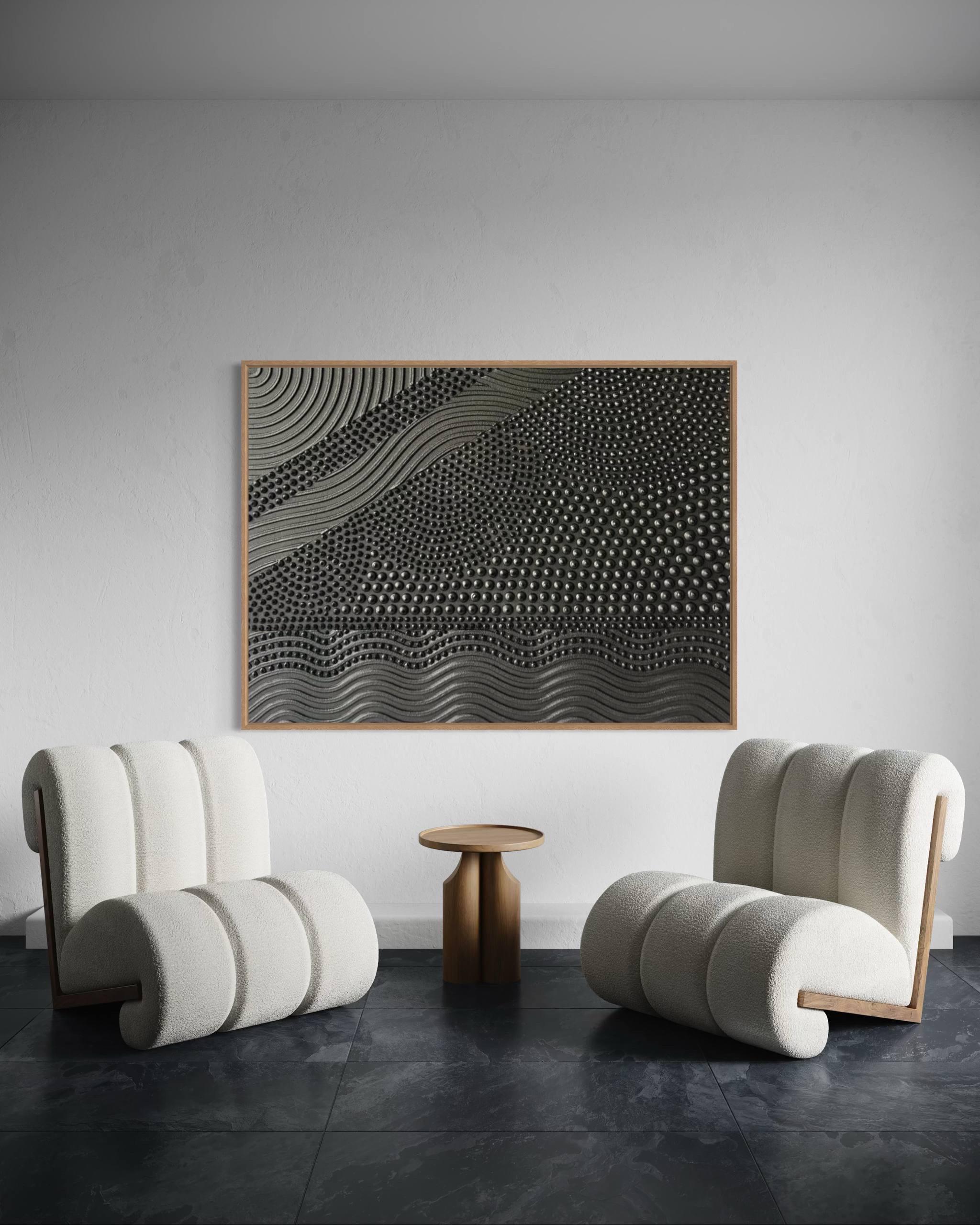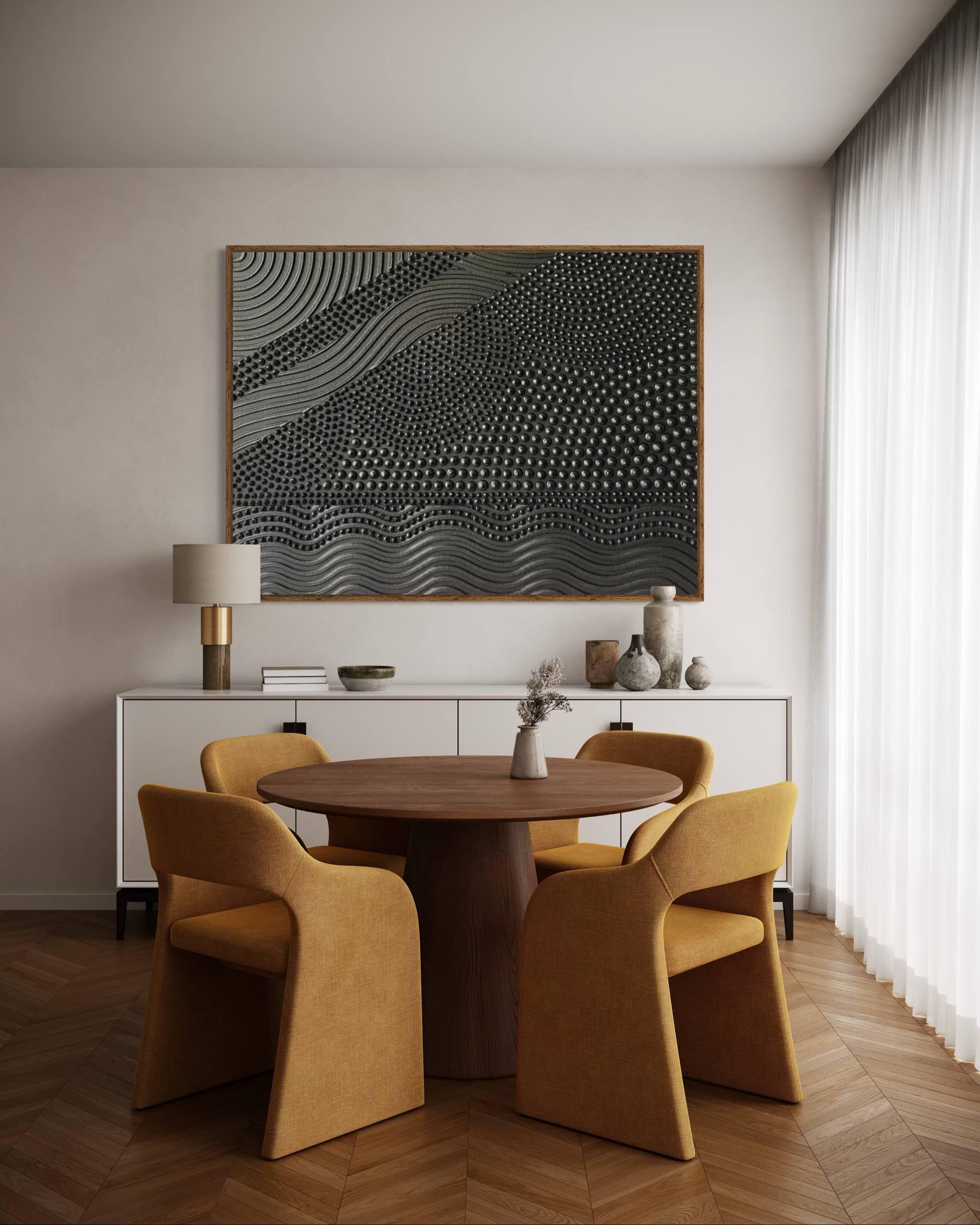 Extra Large 3d textured wall art Black 3D Points & lines painting Oversized Monochrome Abstract Picture Modern Original Canvas entryway art